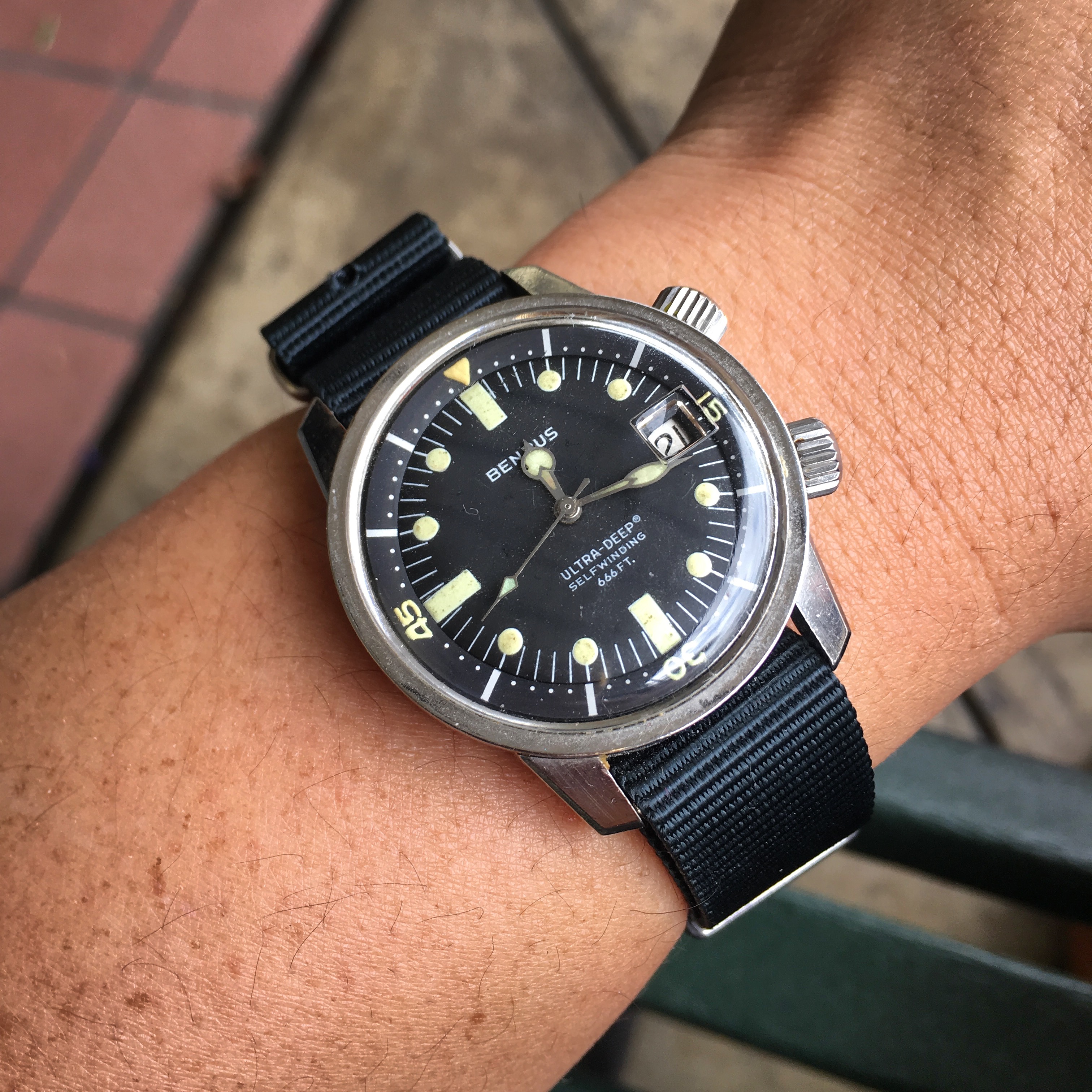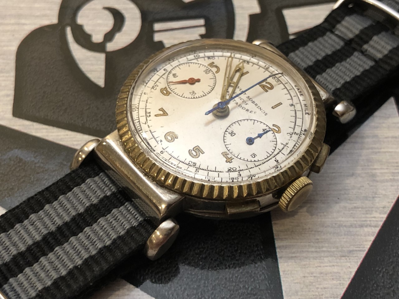 Daydreaming of warmer climes, like Havana, I decided to go with a Cuervo y Sobrinos today.....34mm diameter, 46mm lug-to-lug....powered by a Landeron 51.
