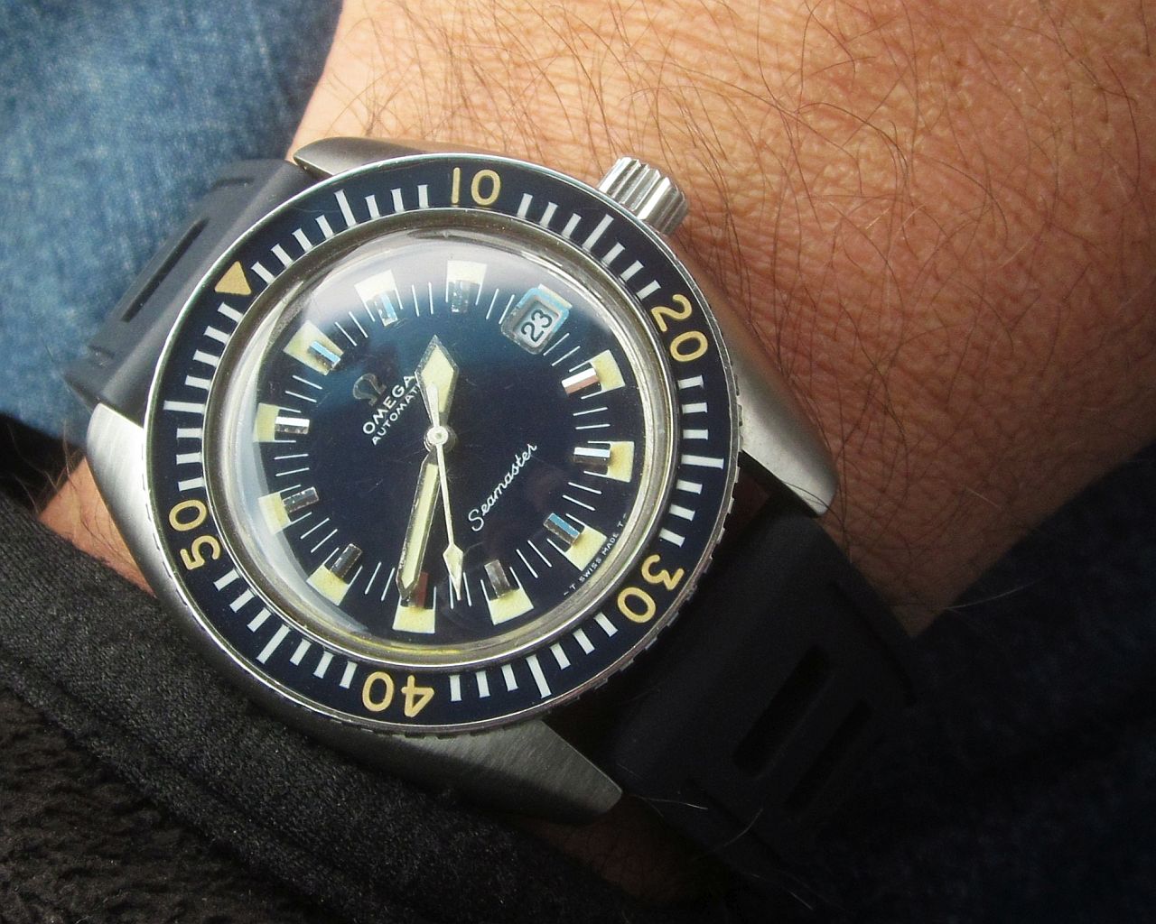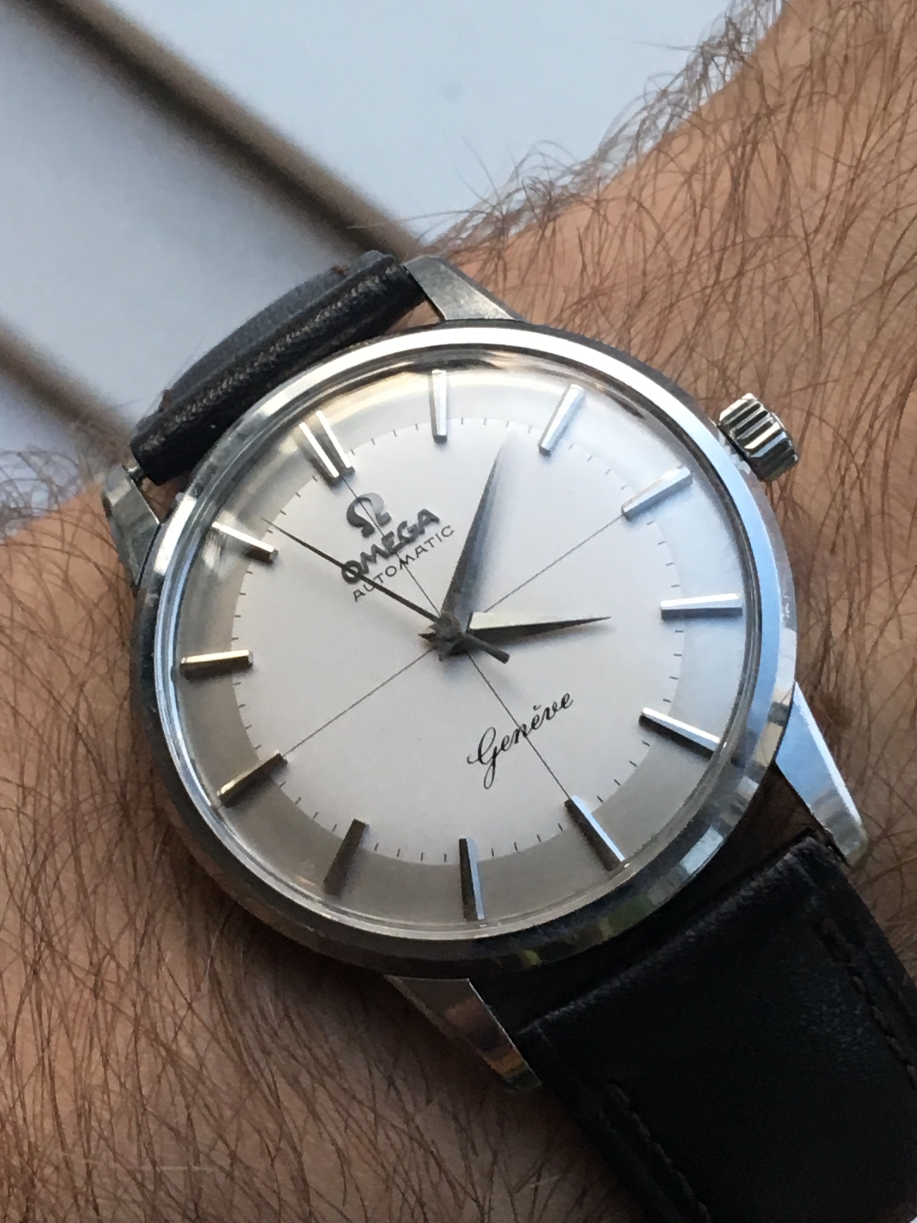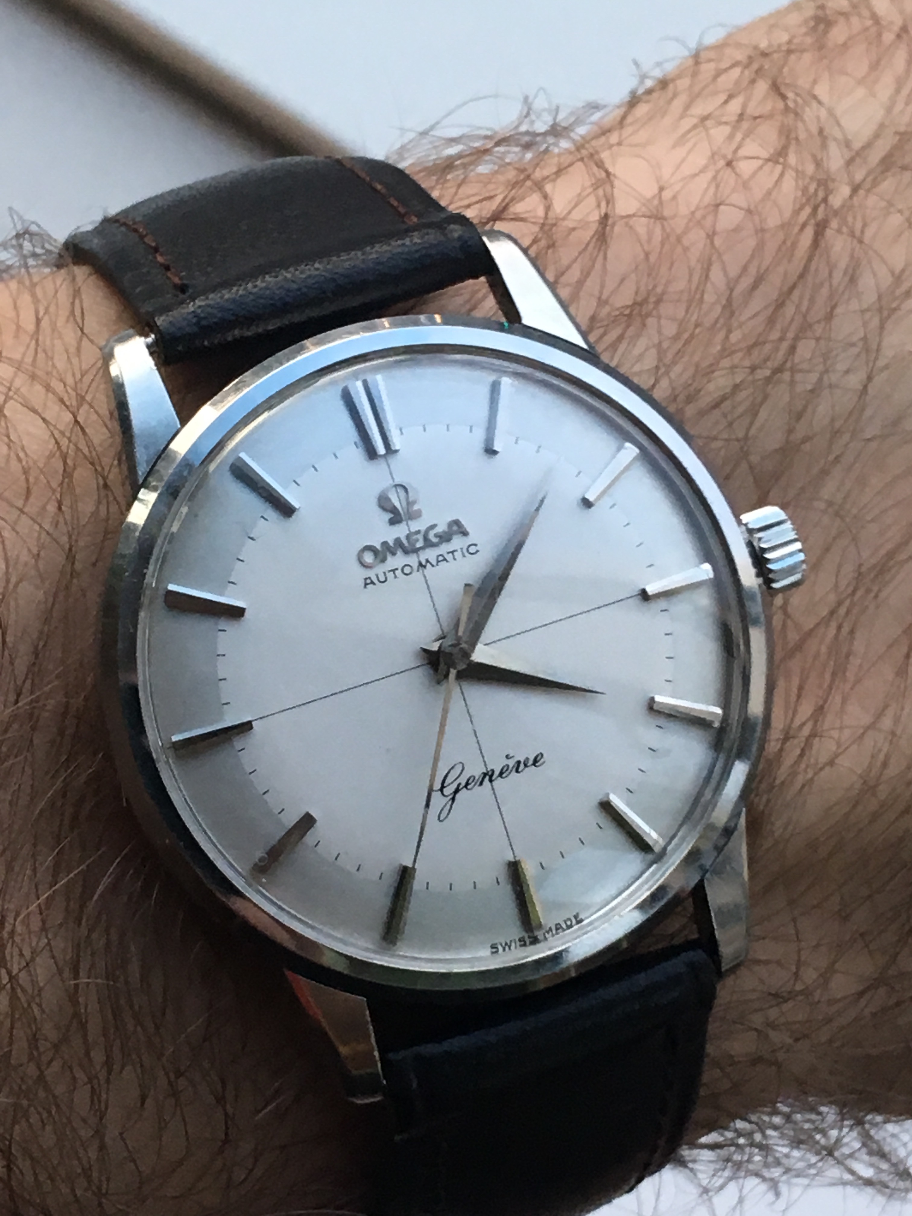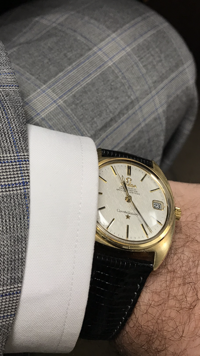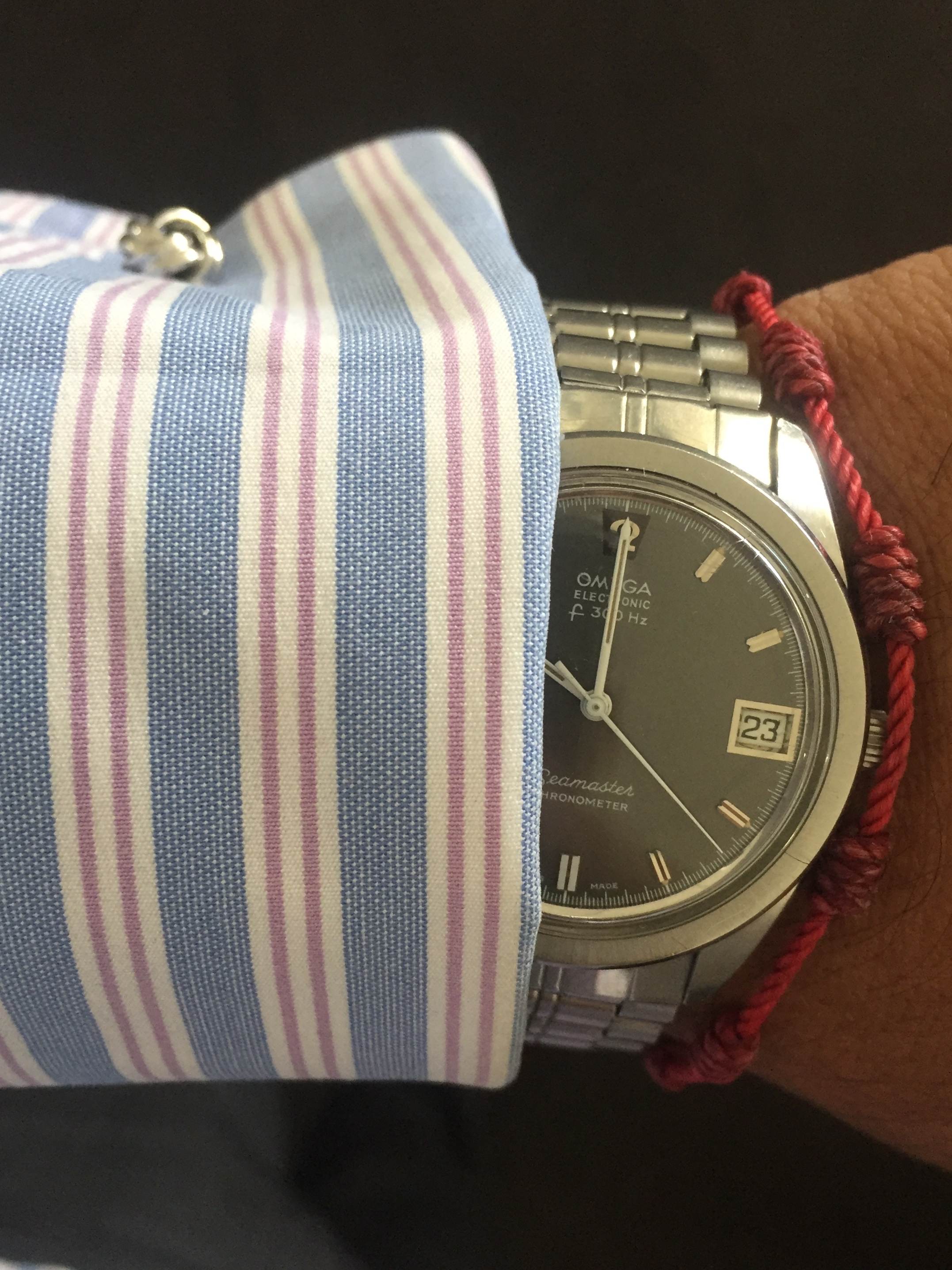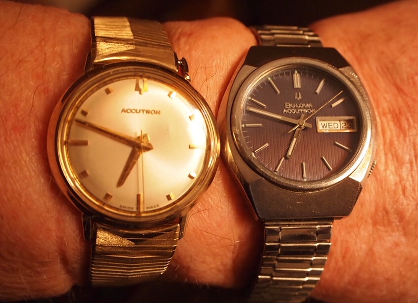 Couldn鈥檛 decide. A repeat for the 54-year old Accutron 214 on the left, salvaged from bits and pieces, major work on the case that was badly damaged. Currently running within 2 seconds per week! The Accutron 218 day/date on the right, from circa 1969, resurrected from a 30-year hibernation. Hardly a fashion statement, but it has most everything one might need. Early morning, light not the greatest.