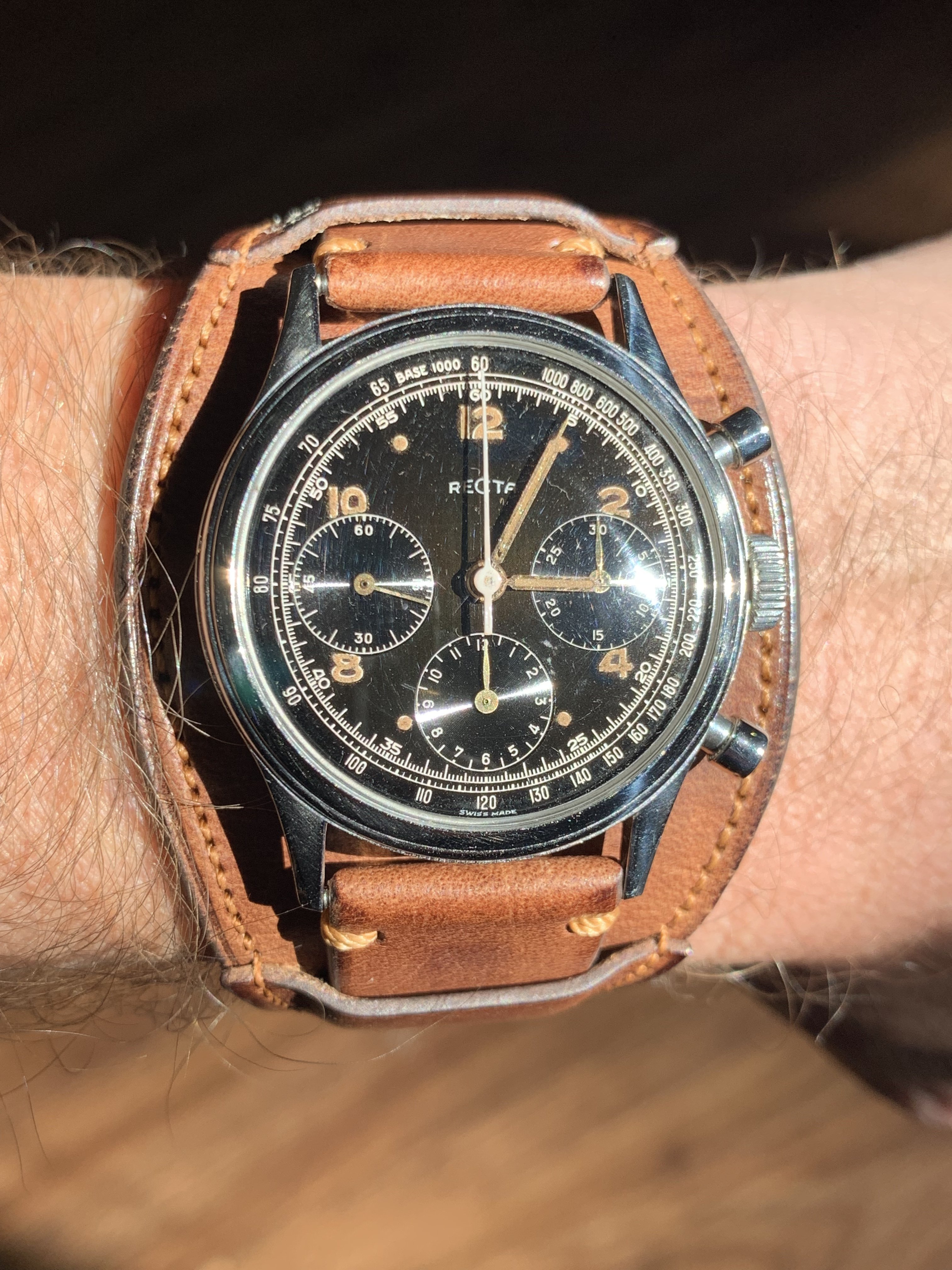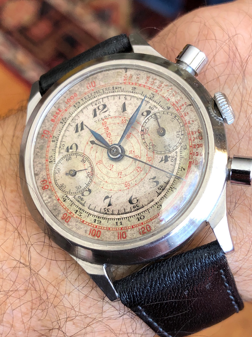 Obscure brand but the dial is just so cool looking. Valjoux 22 in a 38mm Spillman-style case.