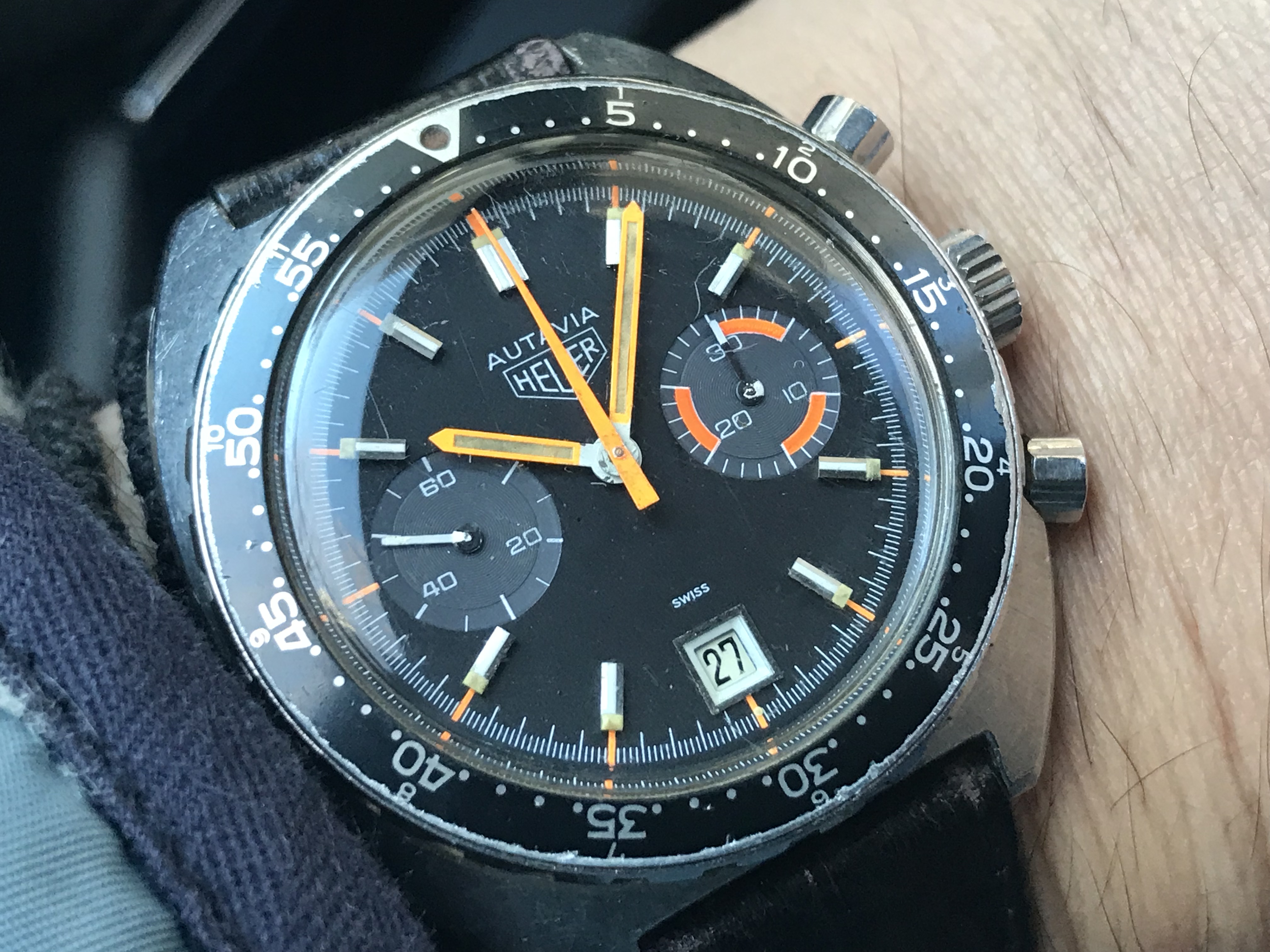 1977 Seiko 6138-8020 - cal. 6138. No collections complete w/out a 6138 or 6139, and while the sweep seconds is not original to this Seiko, I kinda like the splash of color (at least until I find the original! 😉 ).