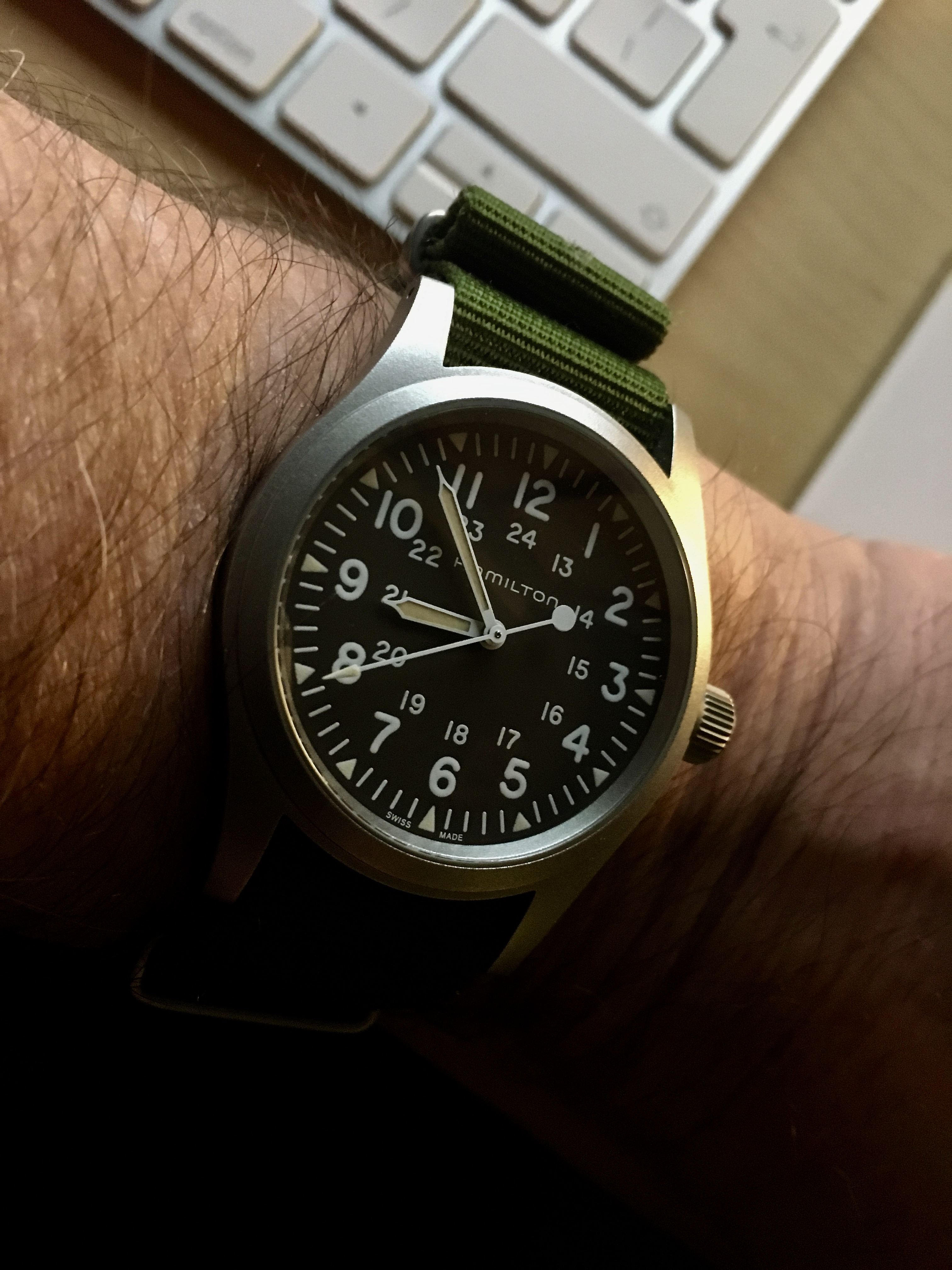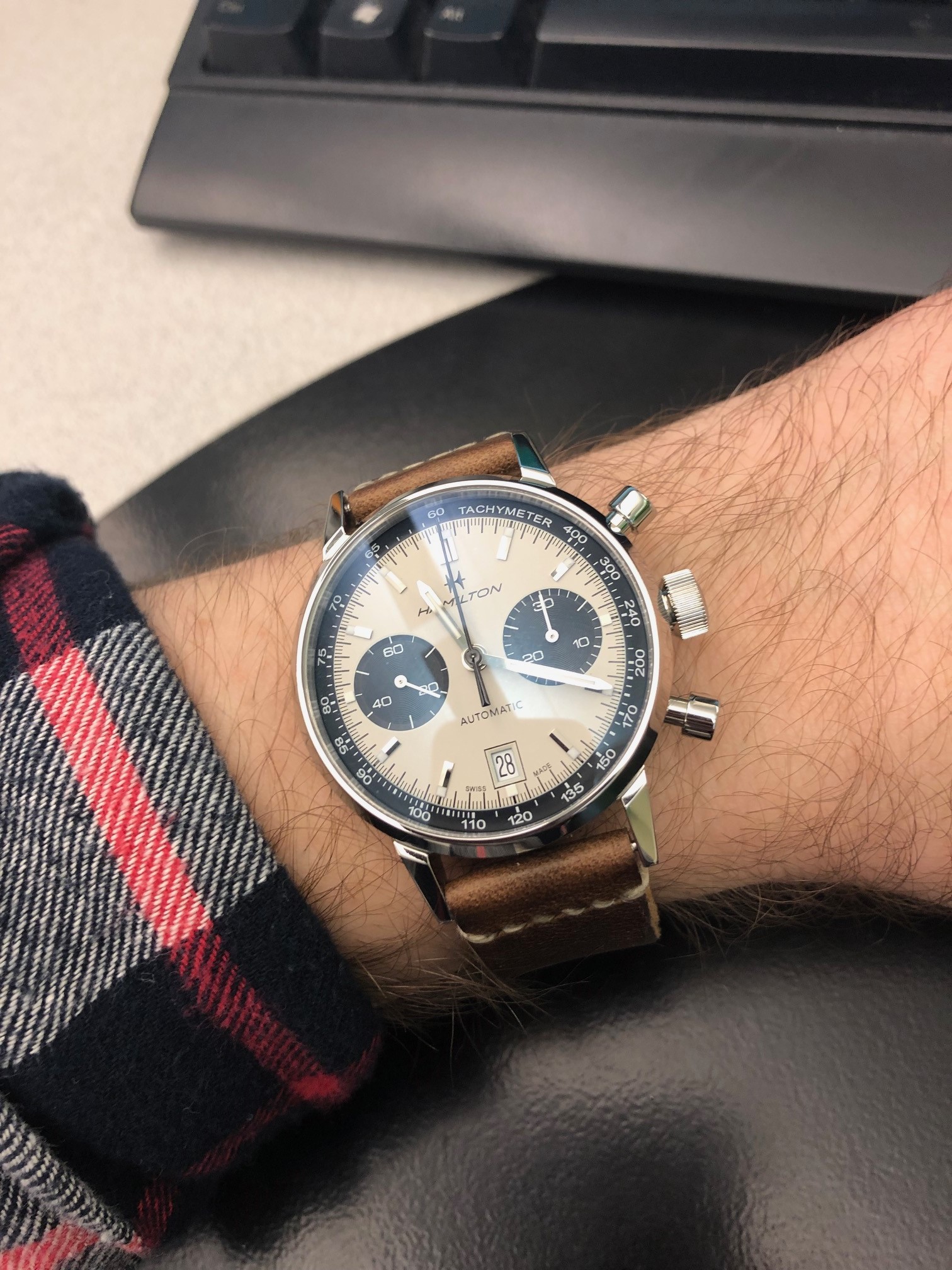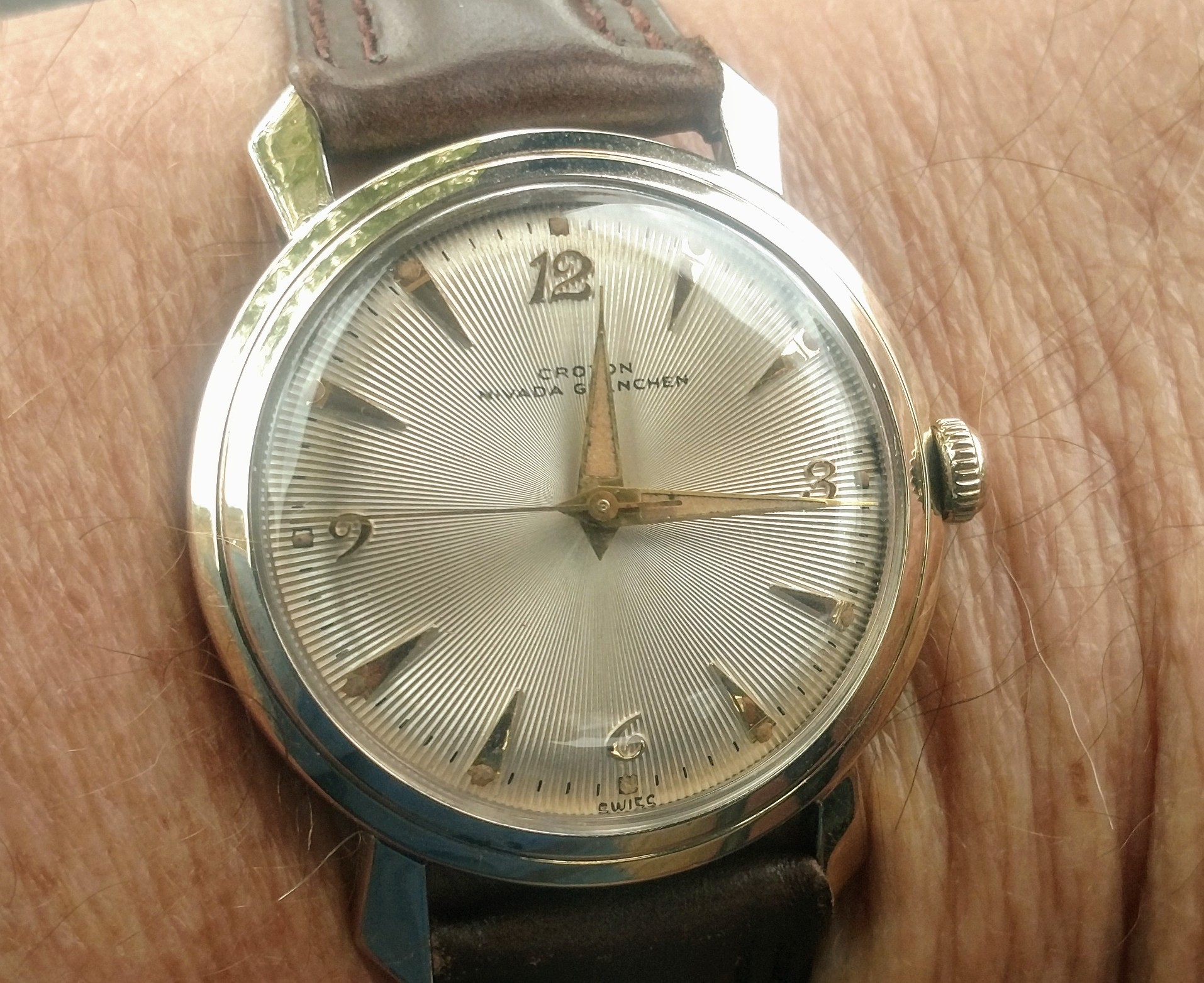 What interesting synchronicity - I don't see too many sunburst dials (not that I've done a lot of looking) but this morning chose my grandfather's 1958-1961 timeframe Hamilton SeaGlo (Hamilton 671/ETA 1080 Swiss movement). Need to run the serial # but at least 2 yrs later than your "K" so looks like Hamilton might have riffed a bit on Bulova's in-house work!