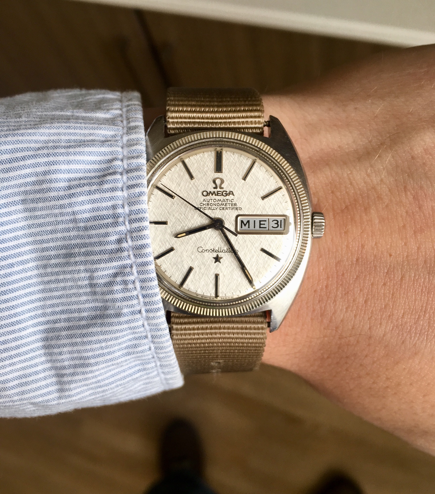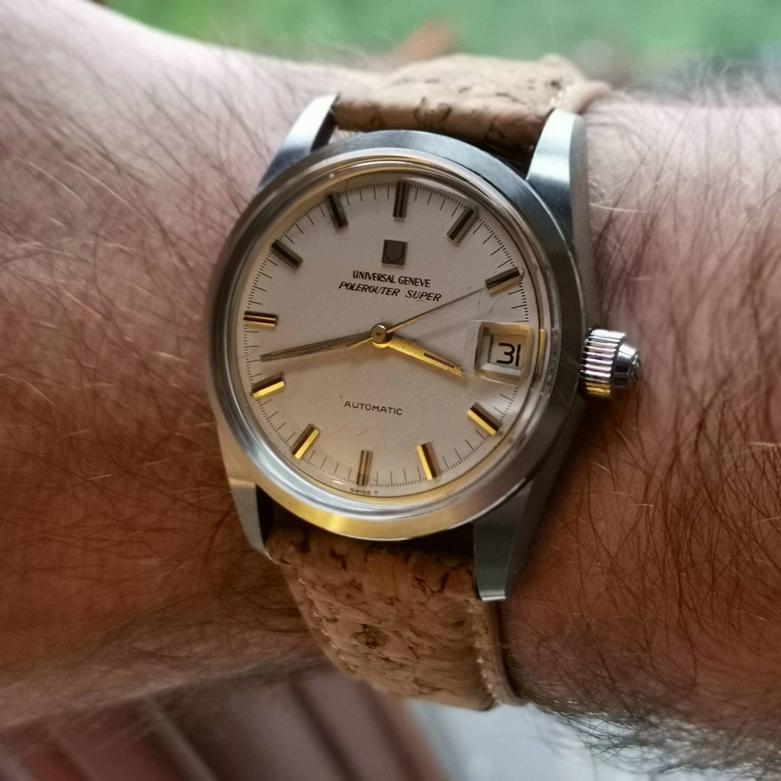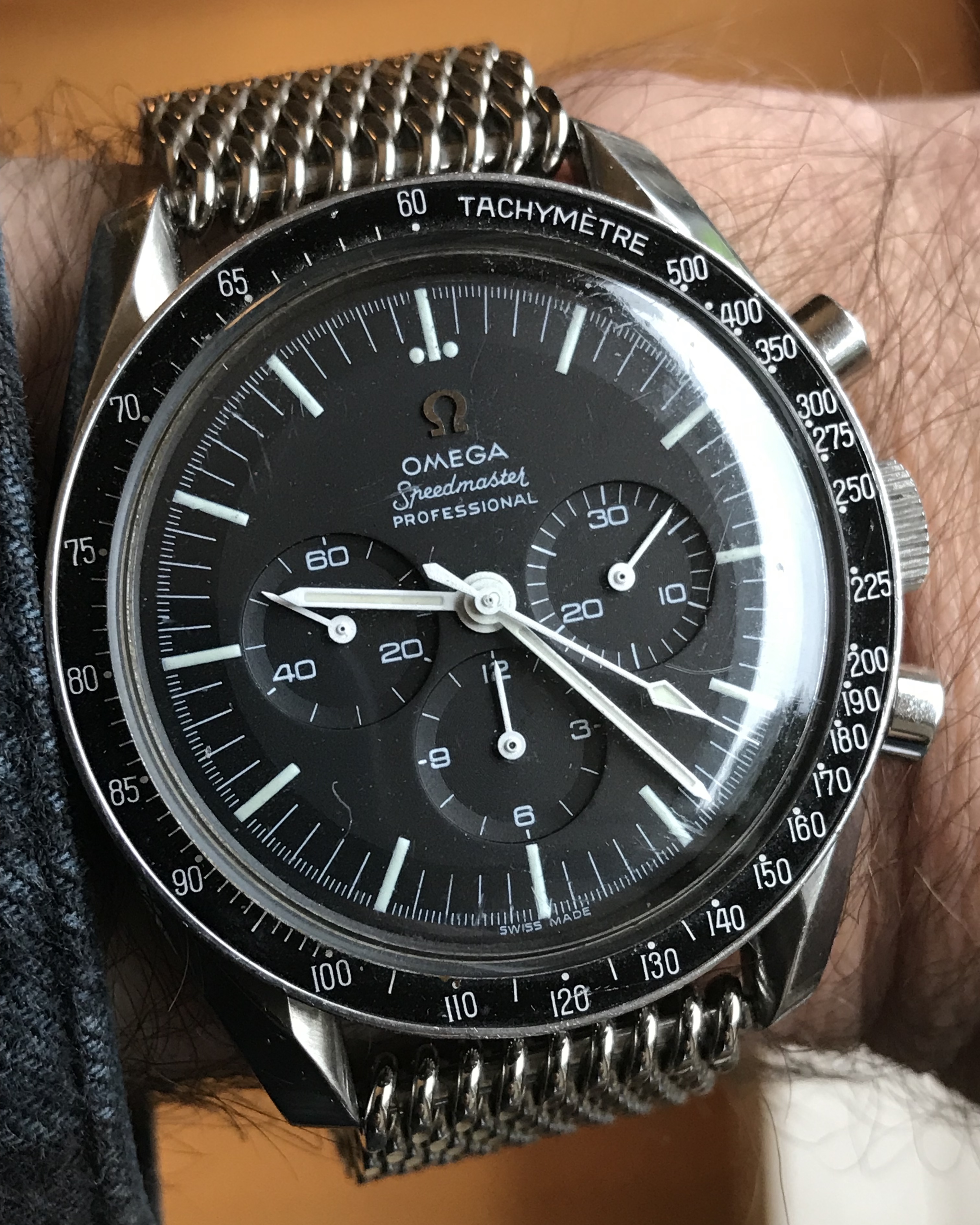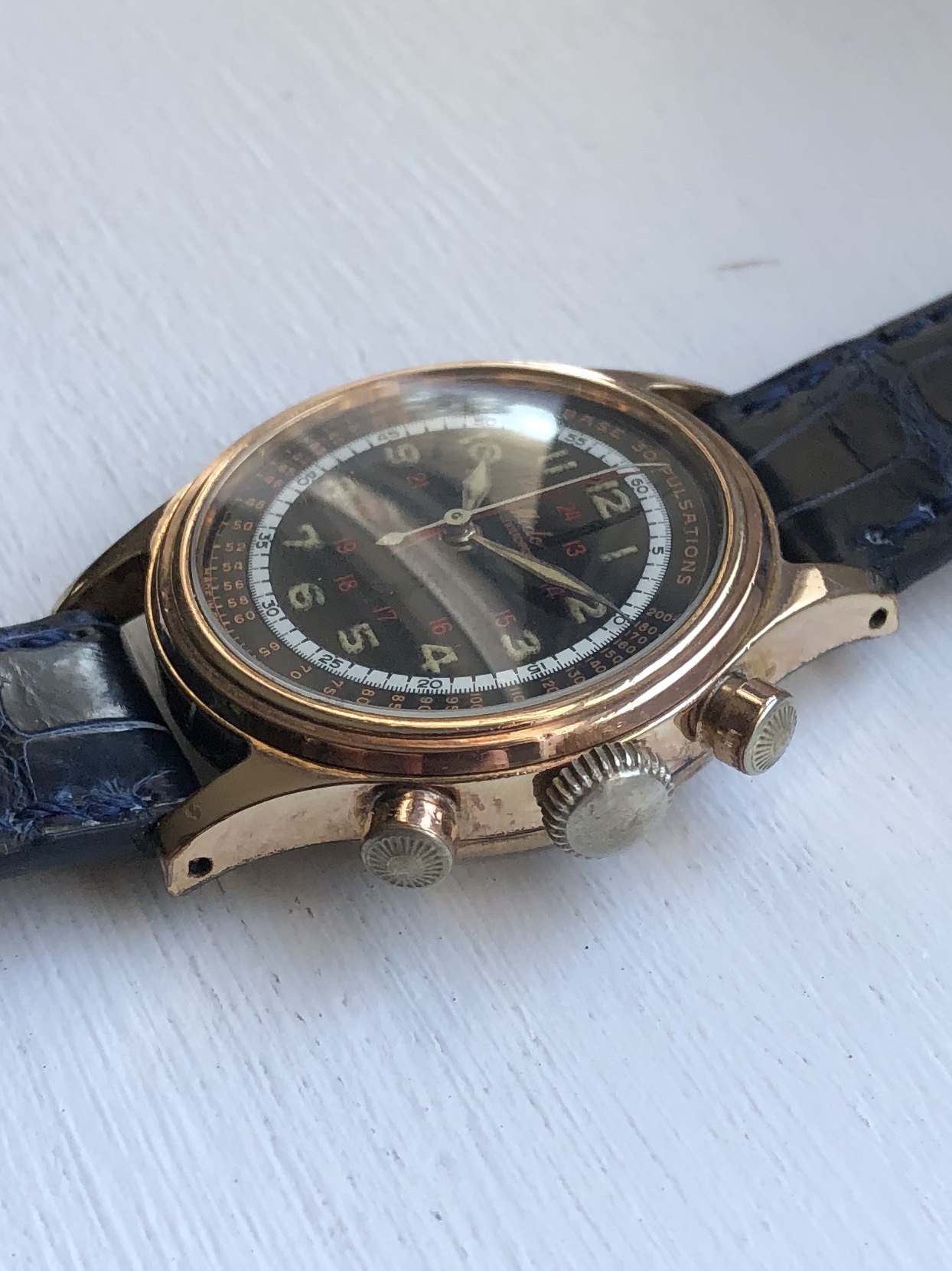 It came to me this way. Beautiful case and pristine bezel but luminova dial and hands and service pushers and crown. Even though I have a 321 Professional tritium dial for it, I’ve decided to leave it the way it is.