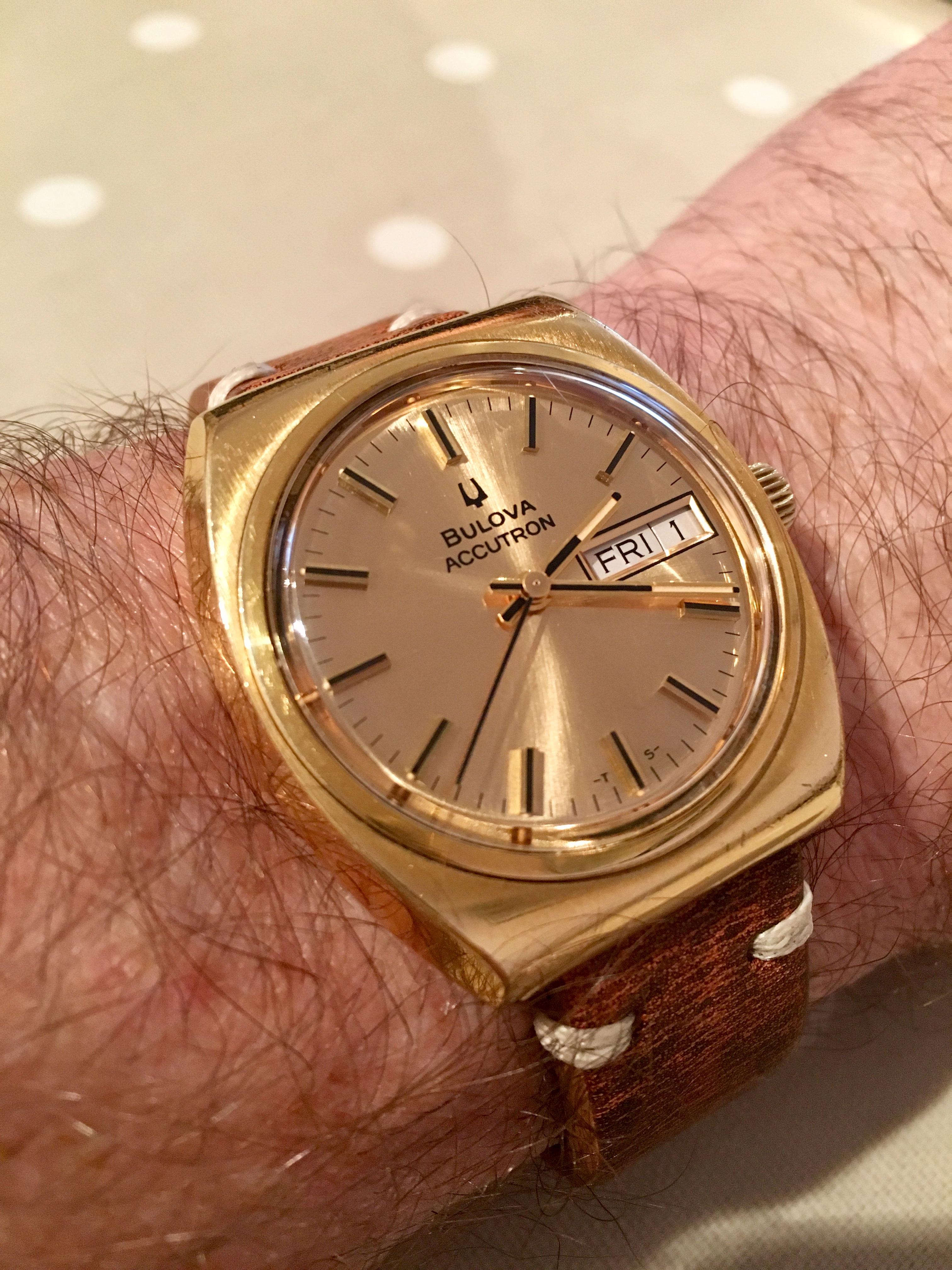 Another Accutron? No apology required! IIRC, I have 24 of them. I have all of them running in my wrist watch carry case, and on a quiet day, even with my compromised hearing, they are audible from the other side of the room. 😀