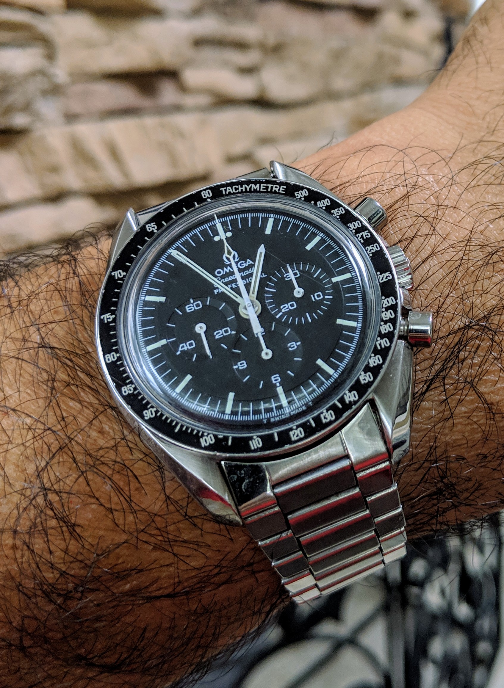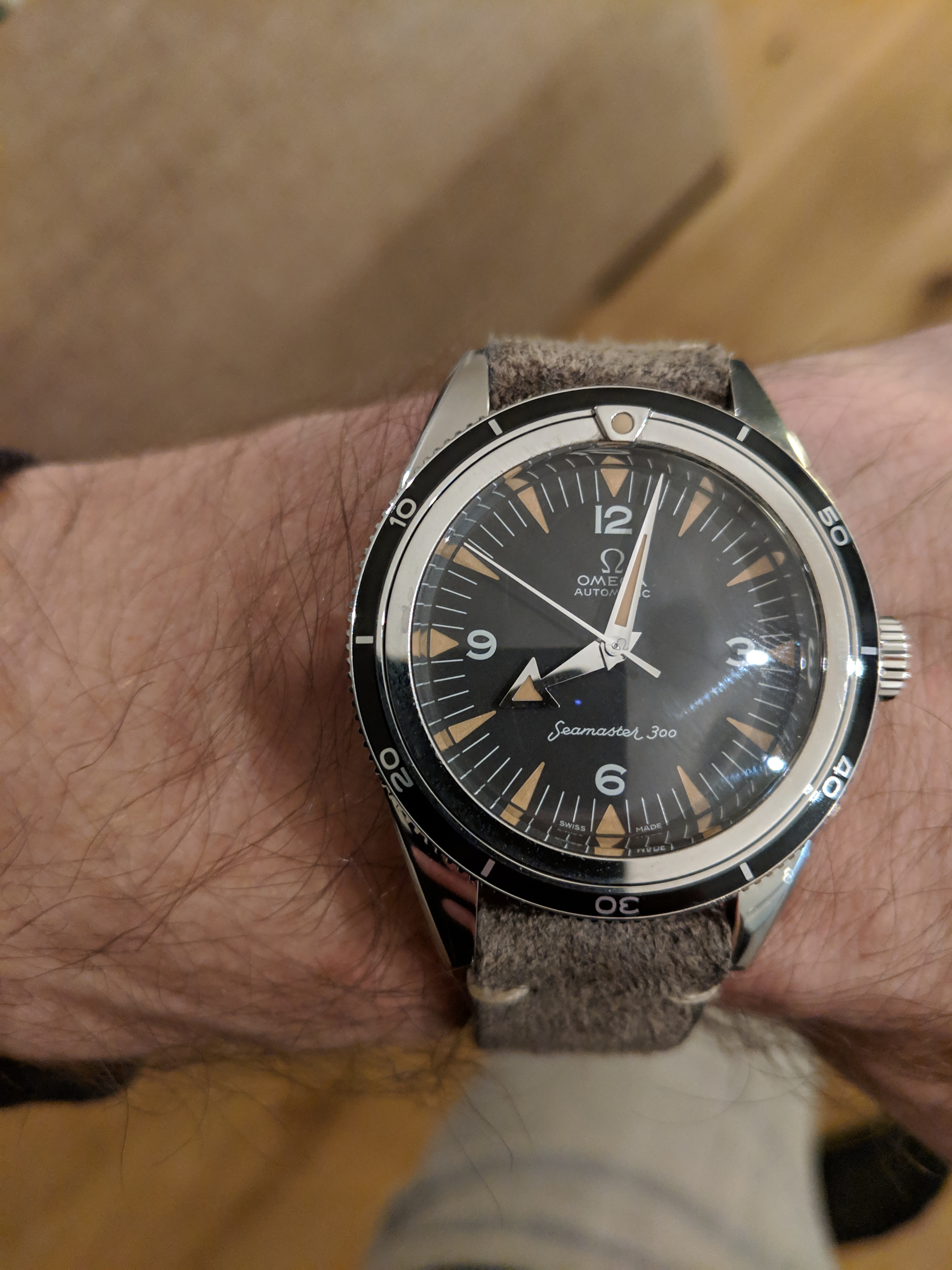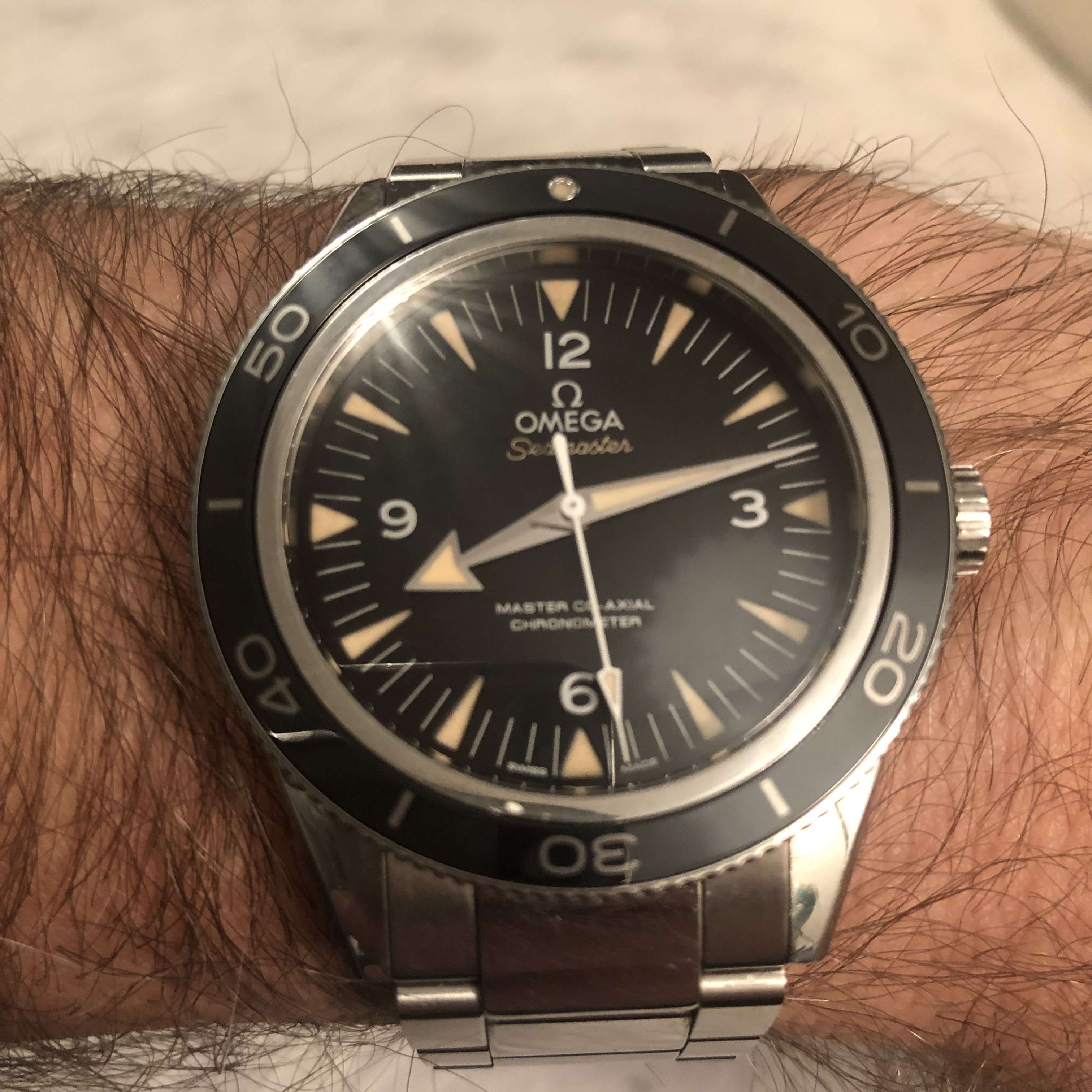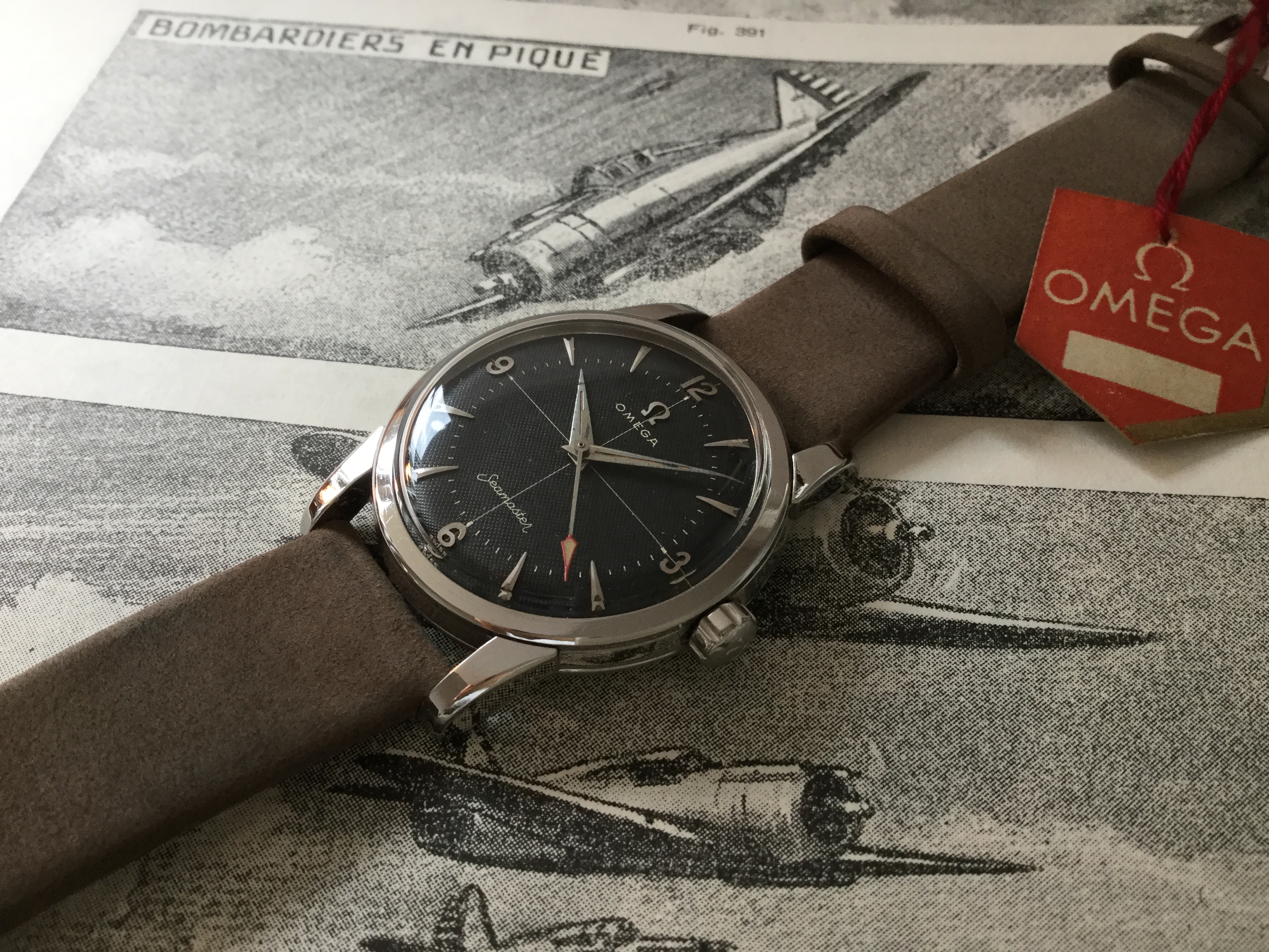 This one surfaced today. Haven’t worn it for a long time. Hardly a grail watch in the eyes of many, but I like it. Early 1950s caliber 352 bumper automatic. The watch you see is not the watch I acquired. It came in a gold filled case that, I am certain, someone had set out to purposely destroy! Beyond salvaging. Dial also sadly deteriorated. Fortunately, the movement had not suffered. I acquired this one via bartering. The previous owner inherited the wreck, and several other watches he wanted fixed. The deal was, I would service three watches, and the basket case Omega became mine. I got into my stash, and found this stainless steel Omega case, and an Omega hour hand, and a better dial. I serviced the watch, fabricated a “dog’s leg” case clamp for it, fitted this dial, and set it up with the steel case. It is an excellent performer, and sweat equity is partly why I like it.