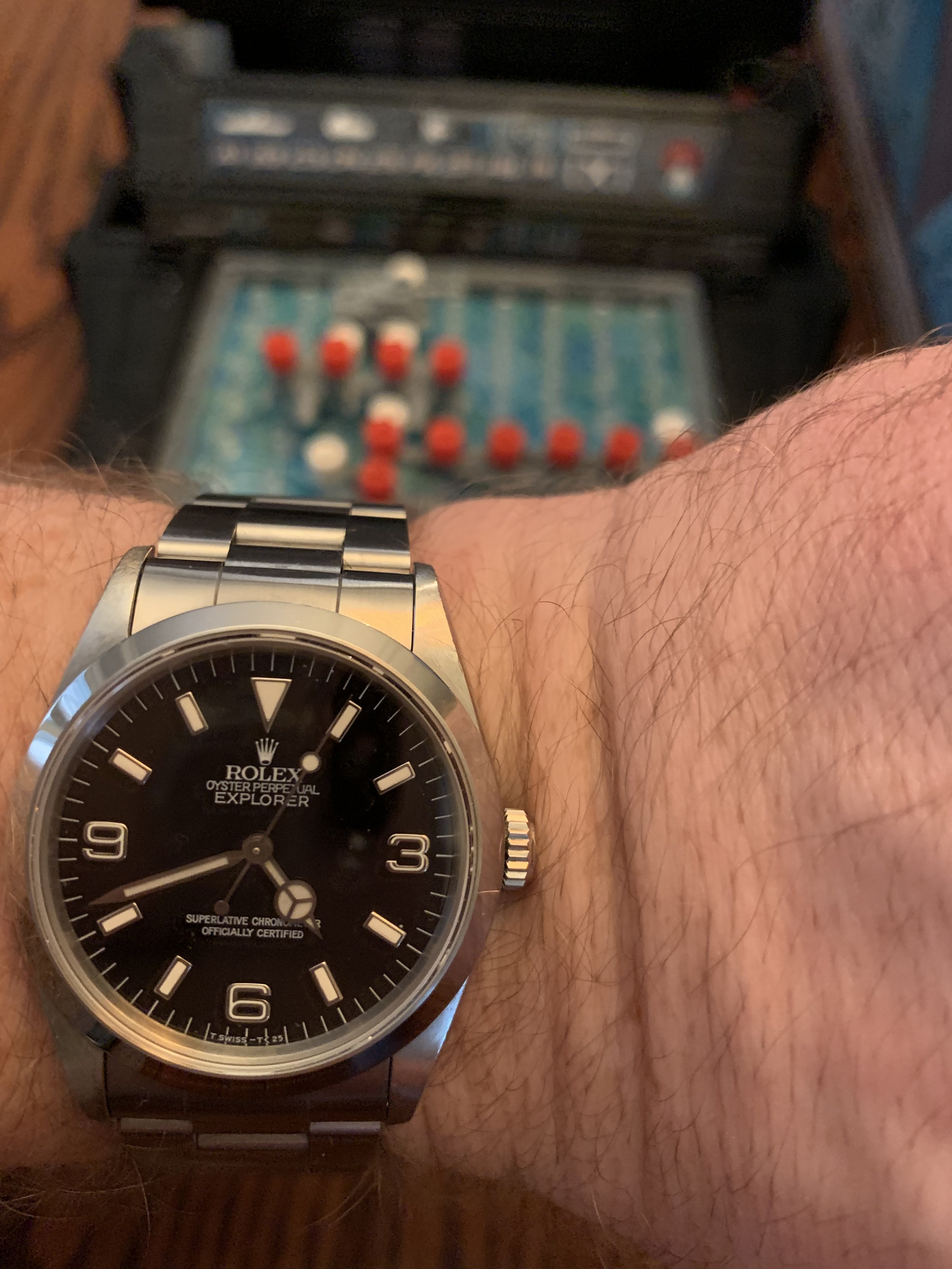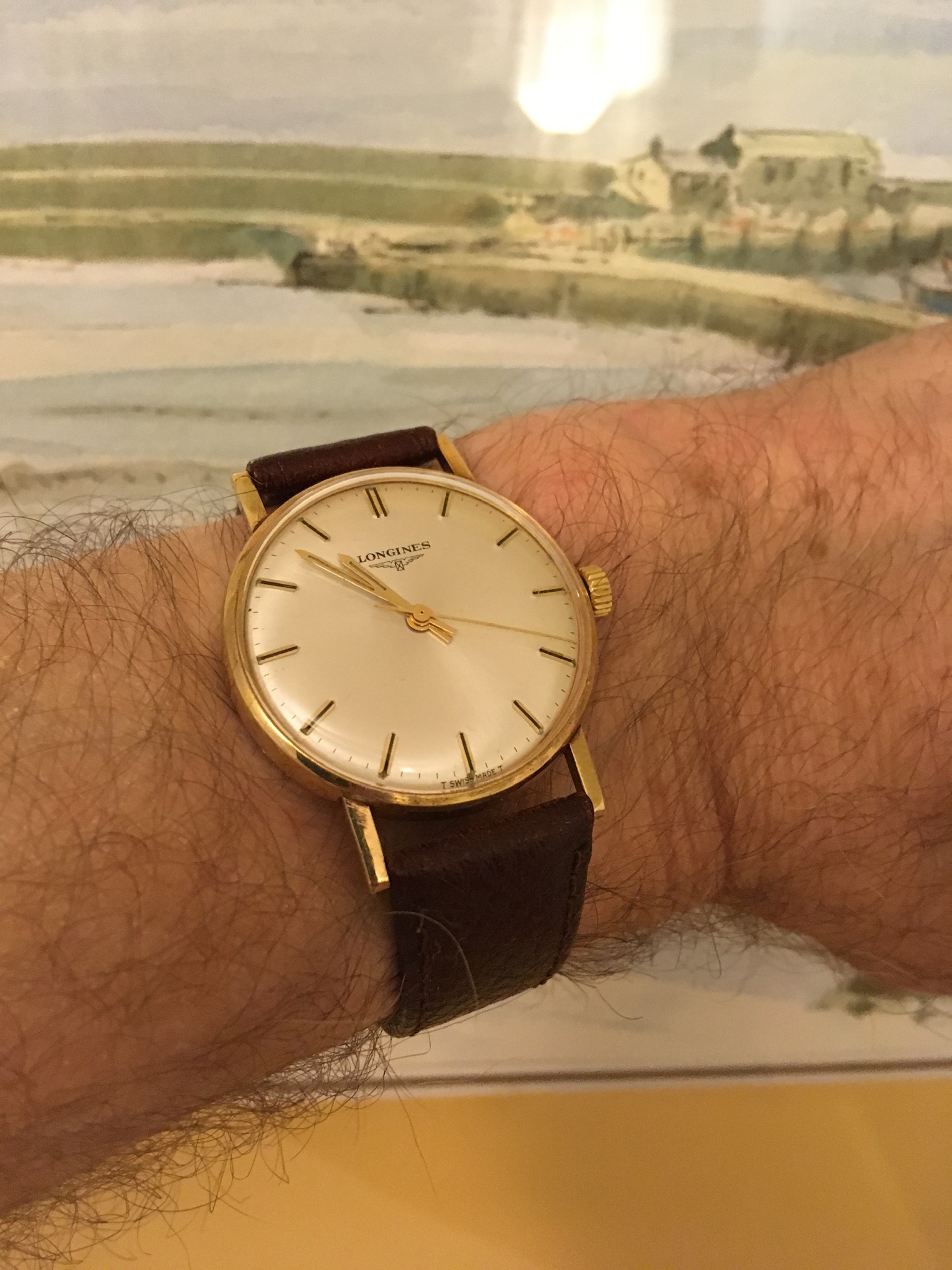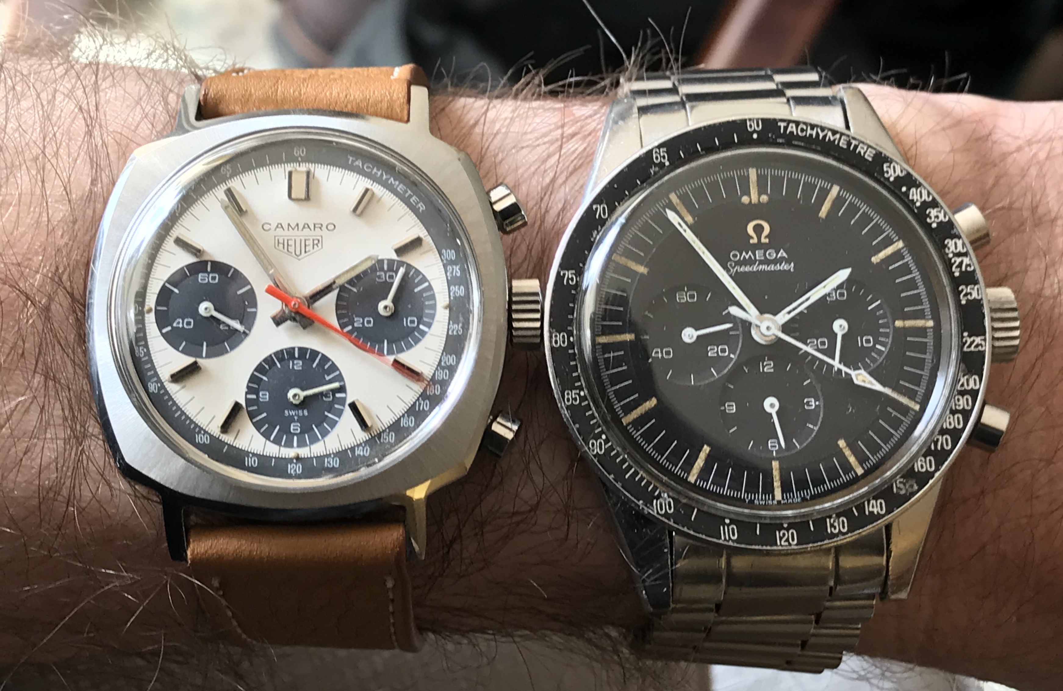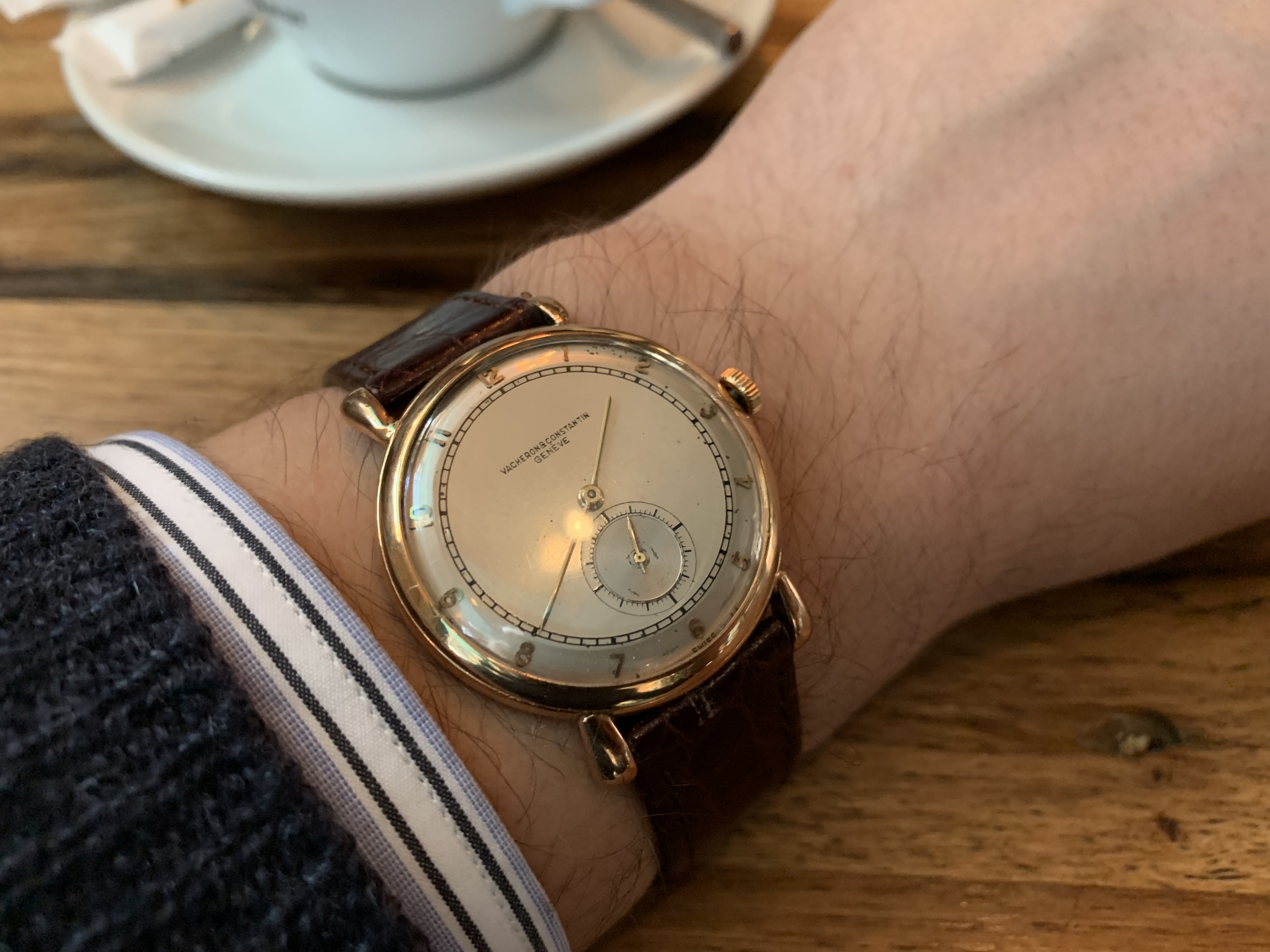 This one surfaced today. Haven’t worn it for a long time. Hardly a grail watch in the eyes of many, but I like it. Early 1950s caliber 352 bumper automatic. The watch you see is not the watch I acquired. It came in a gold filled case that, I am certain, someone had set out to purposely destroy! Beyond salvaging. Dial also sadly deteriorated. Fortunately, the movement had not suffered. I acquired this one via bartering. The previous owner inherited the wreck, and several other watches he wanted fixed. The deal was, I would service three watches, and the basket case Omega became mine. I got into my stash, and found this stainless steel Omega case, and an Omega hour hand, and a better dial. I serviced the watch, fabricated a “dog’s leg” case clamp for it, fitted this dial, and set it up with the steel case. It is an excellent performer, and sweat equity is partly why I like it.