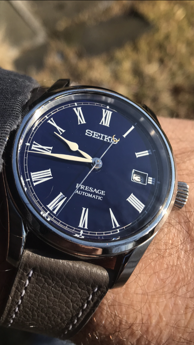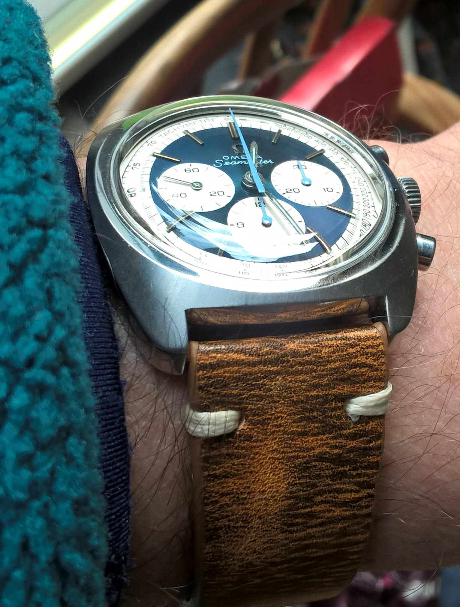 Posts 300 Likes 1,187 paulw ·Feb 3, 2019 Three days after getting it back and on its third strap - so far like this one the best, with its contrasting colour & vintage looks. Paul