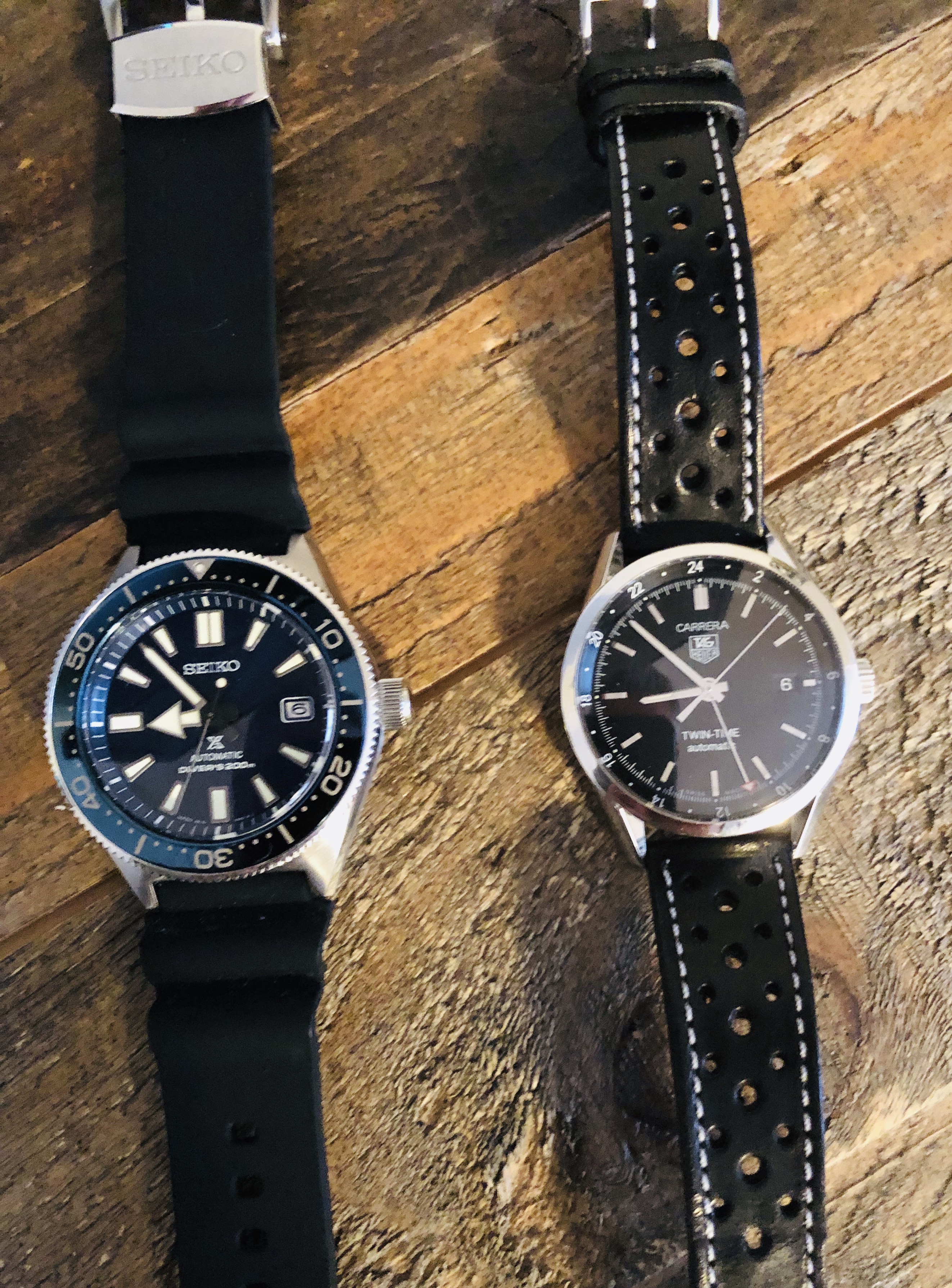 Posts 618 Likes 11,030 cgaites ·Feb 6, 2019 These two for me today. Wore the Seiko to swim this AM, and then changed to the Tag for work. It’s a good life 😀