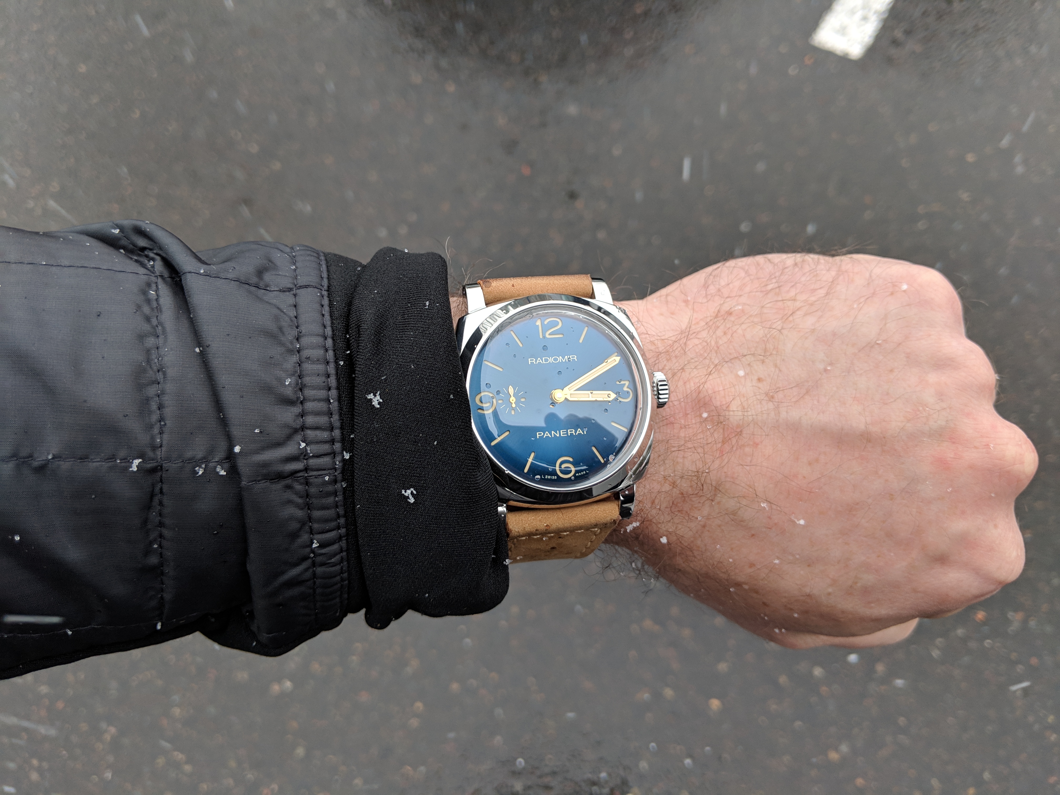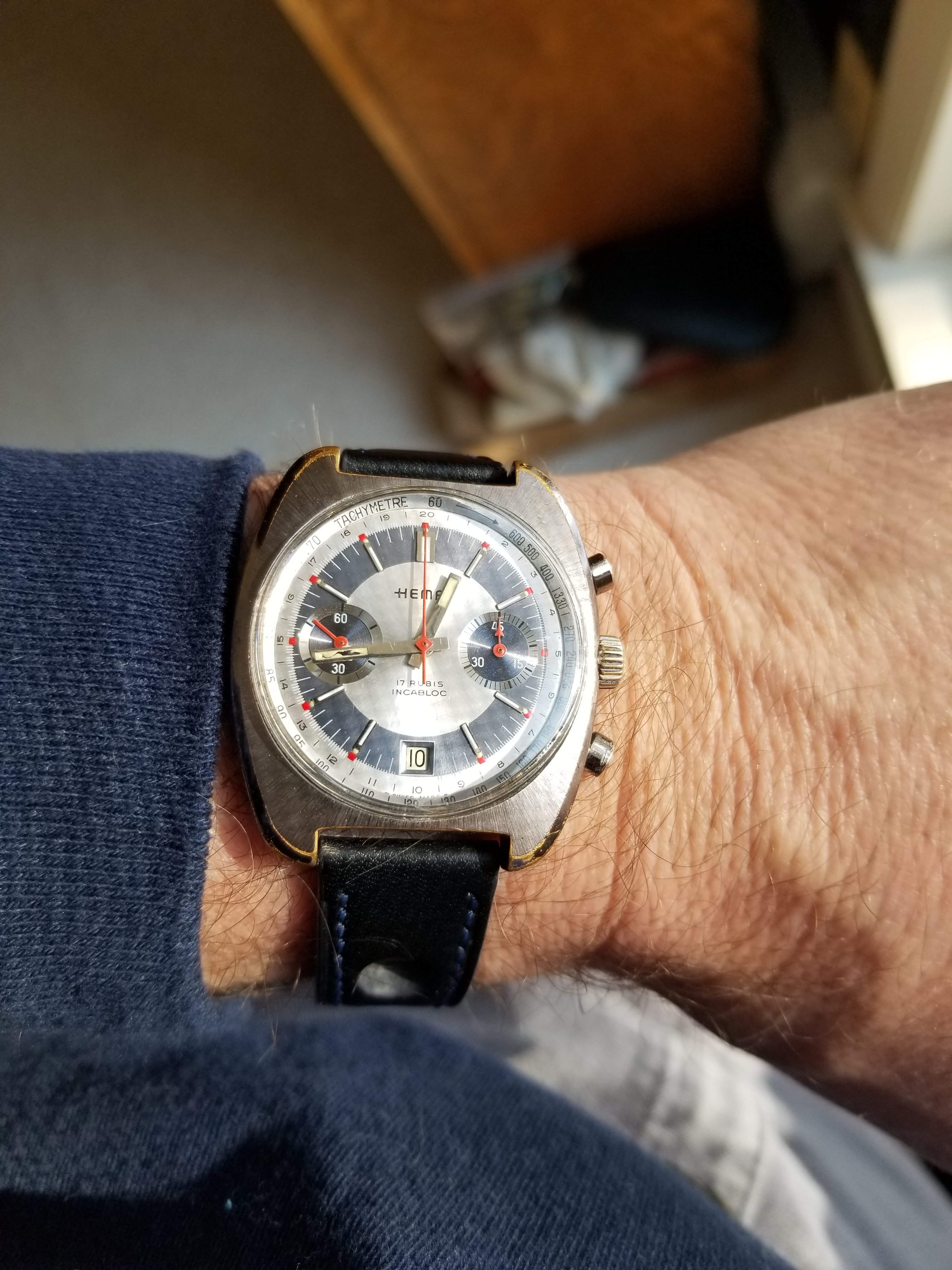 It's a blue and gray sort of day and.......always the fashionista. ;-) Although, I am wearing this less and less now that I have the Panda and reverse Panda dialed watches as well.