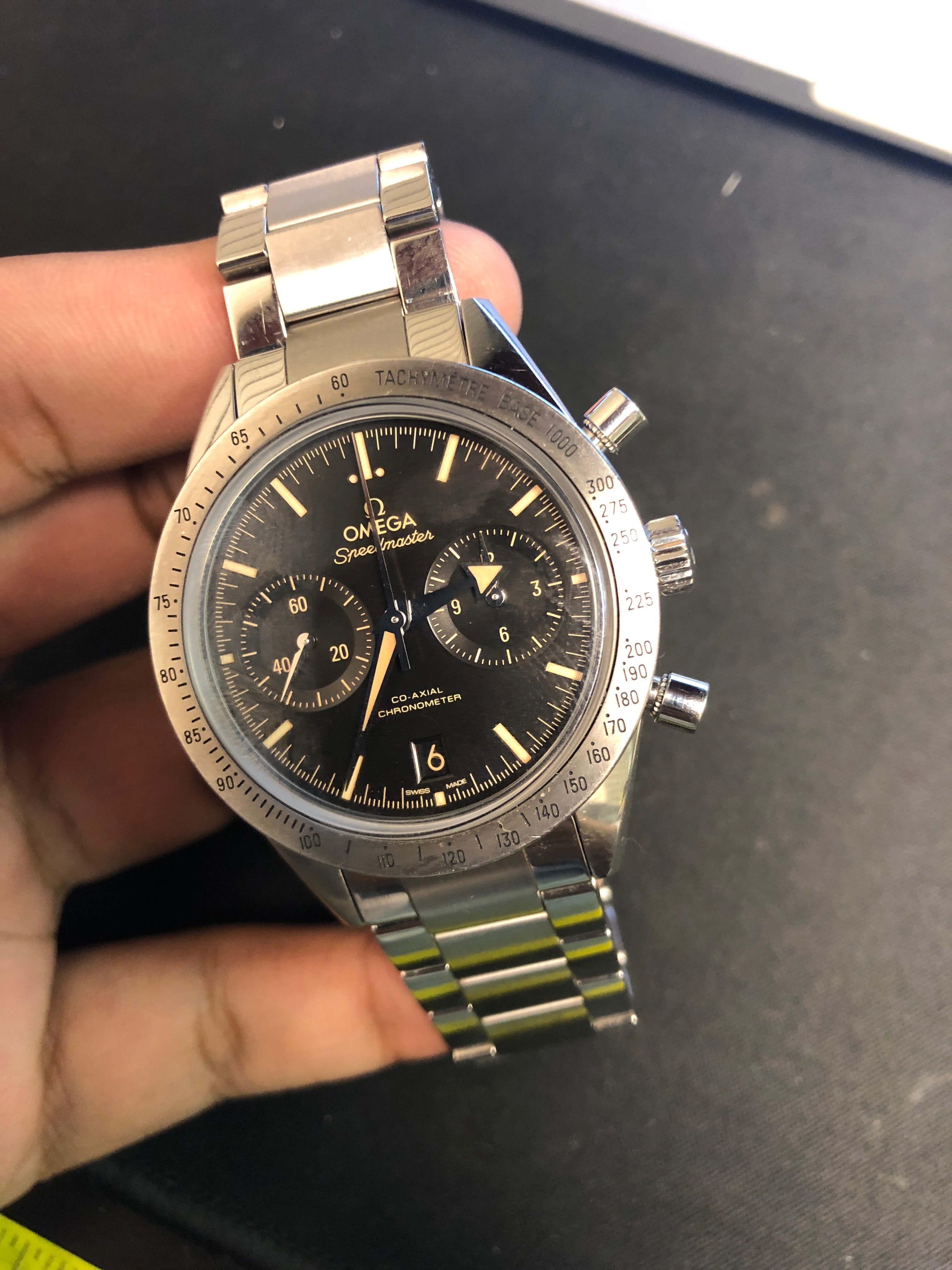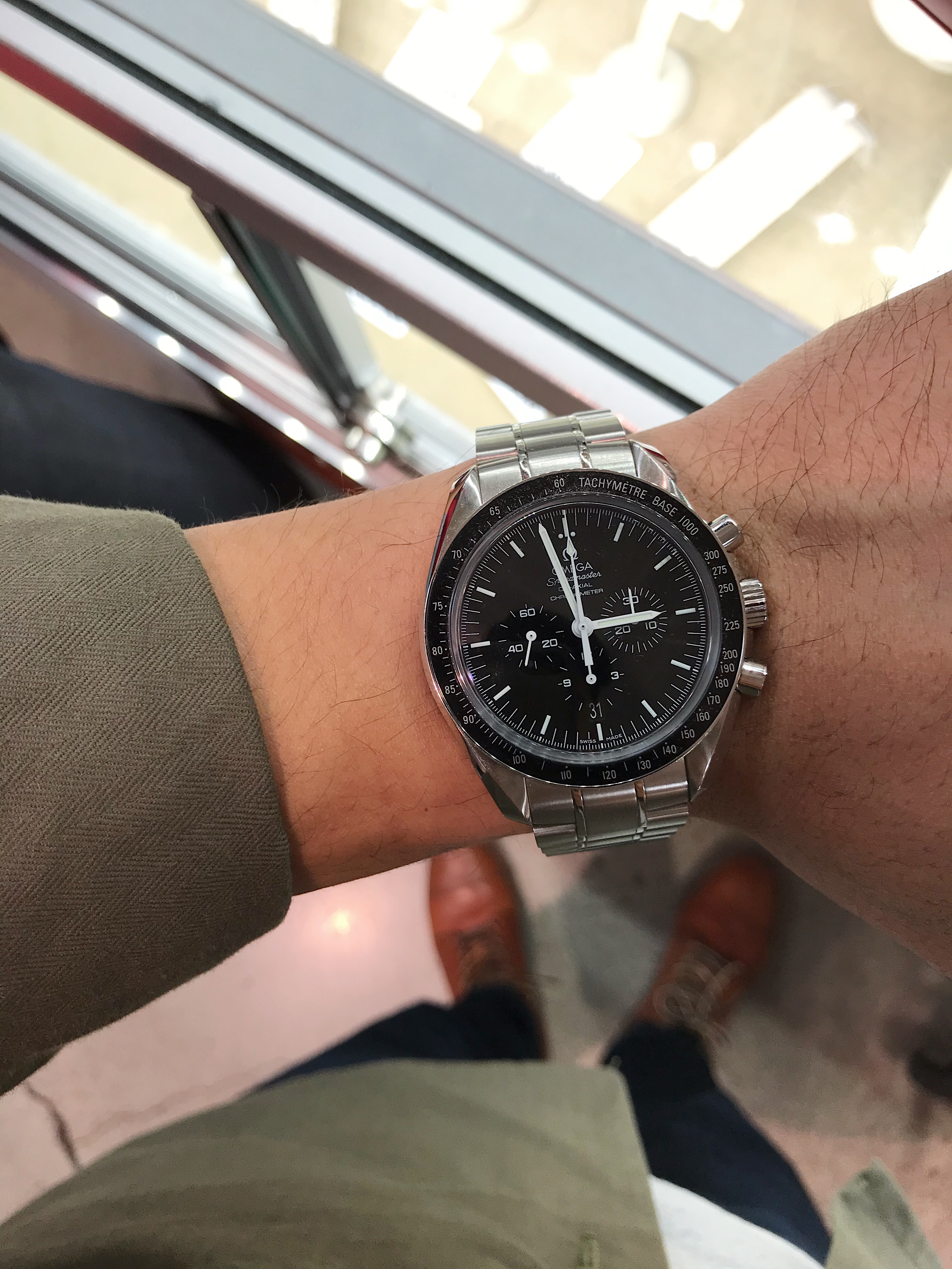 Posts 847 Likes 8,408 Ssunnylee24 ·Feb 11, 2019 Speedmaster co axial at Costco. 44.25mm but wears very well on my 7” wrist.