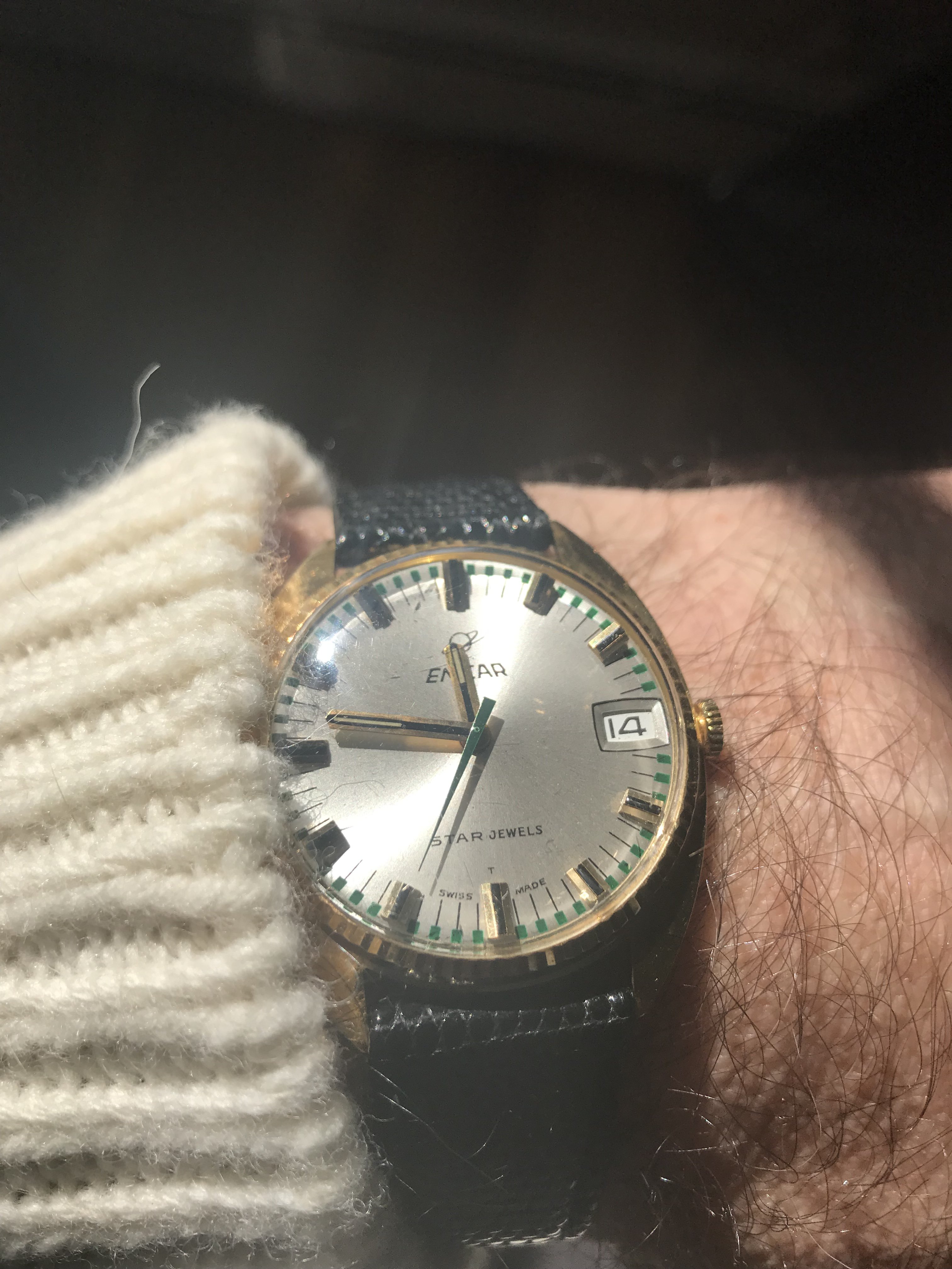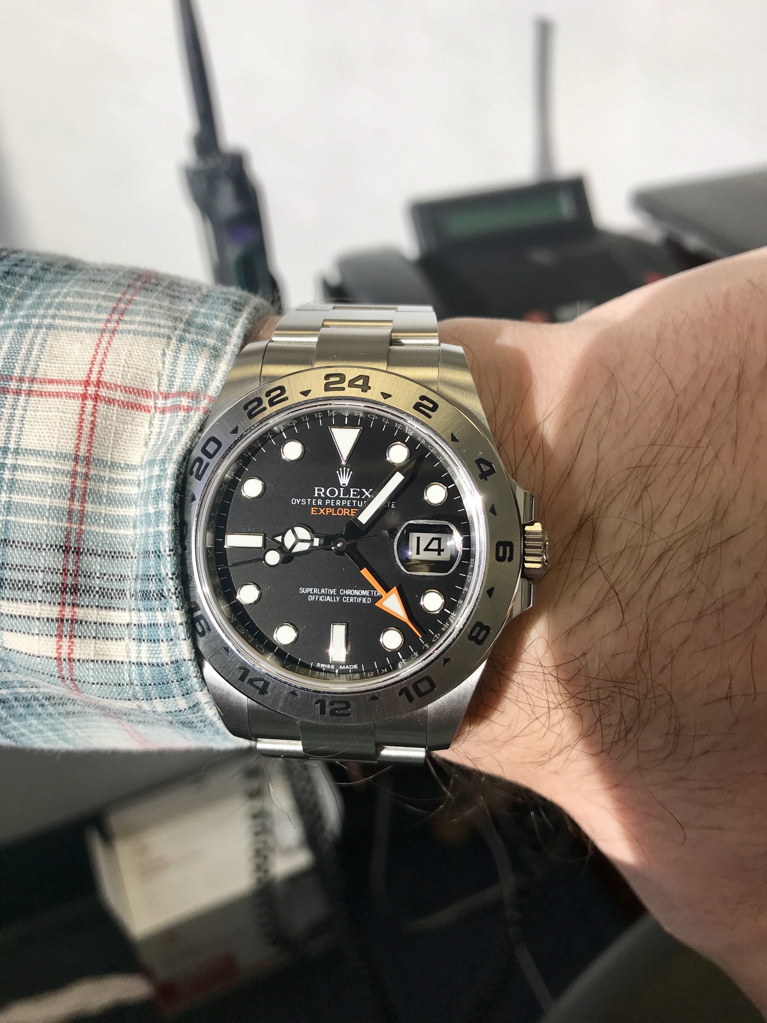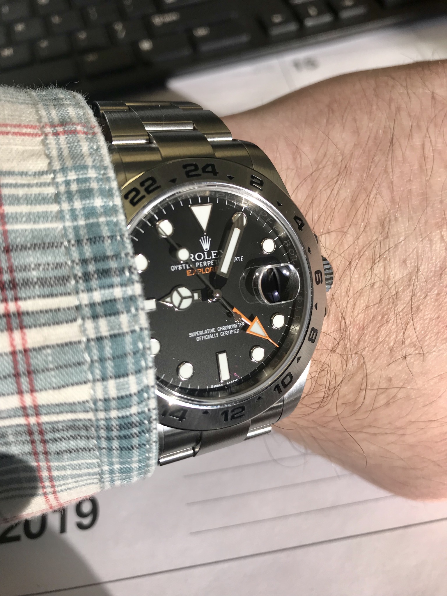 Posts 13,583 Likes 53,161 Larry S ·Feb 14, 2019·Color Commentator for the Hyperbole. Yes it’s been polished. Yes it has a service crown. Yes the quick set no longer works. Yes I paid way way to much for it from a bricks and mortar dealer(Noob Tax), but that silvery dial, the onyx markers and overall wrist presence make it a keeper.