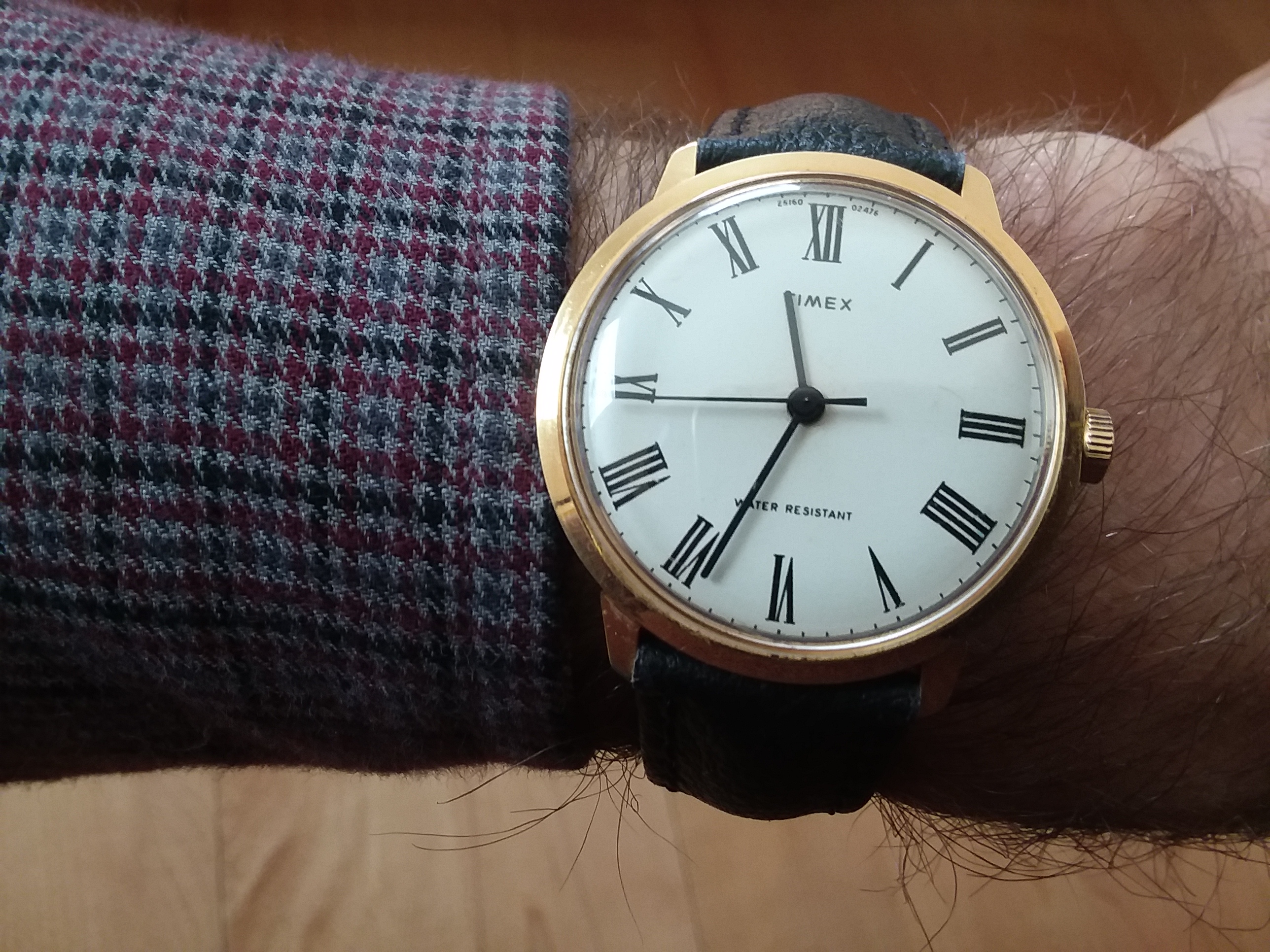 I might have you beat. Early 70s Timex, $10 at a junk shop. It is a watch I never have to worry about, and surprisingly it keeps good time. Been running continuously for a month and still accurate to the minute.