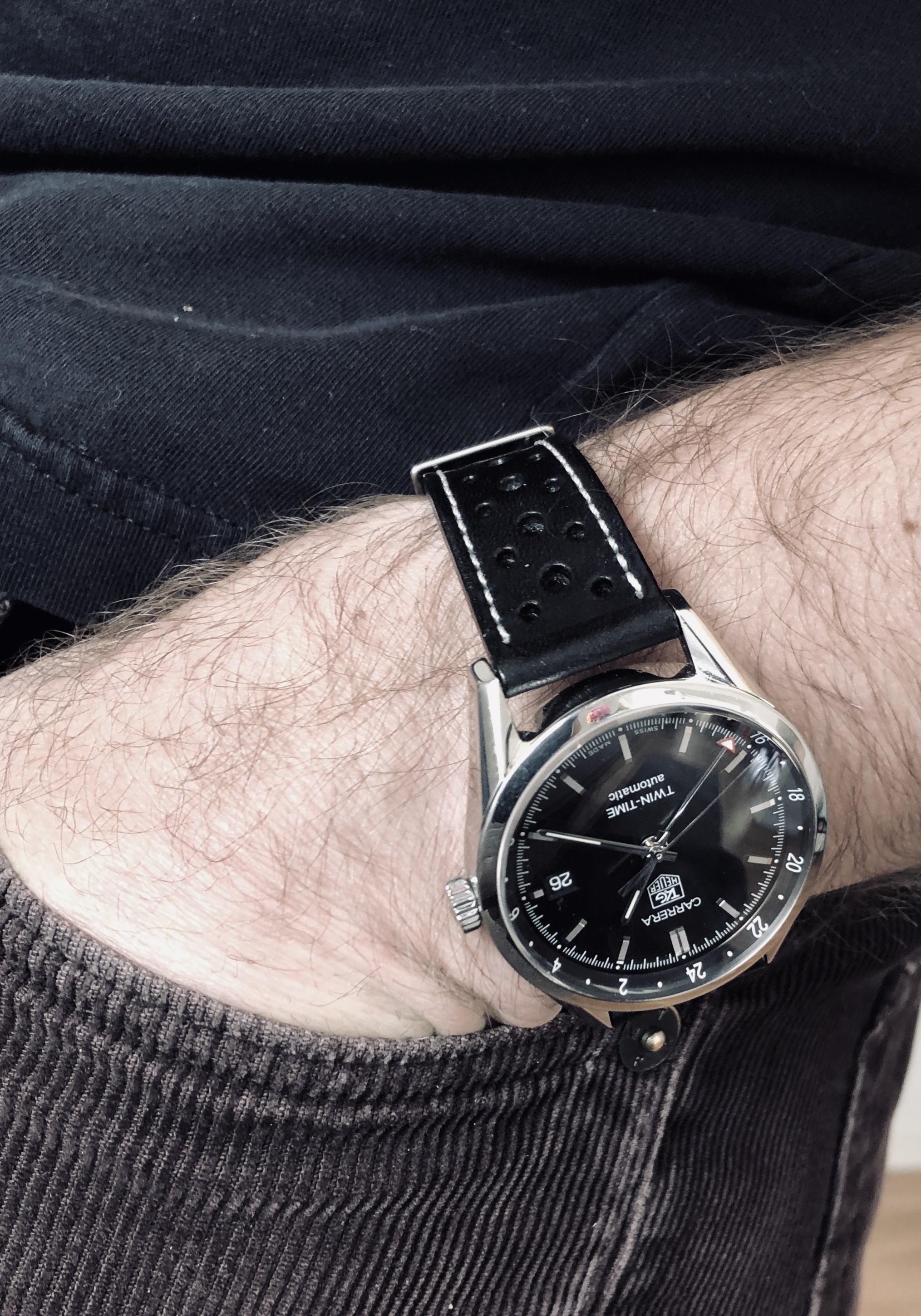 Posts 618 Likes 11,030 cgaites ·Feb 26, 2019 First Tuesday in a while without a Speedy. Unfortunately I’m on the road today and my collection is at home except for this Tag Carrera GMT. Been trying to figure out how to take one of these “hand in the pocket” wrist shots with my iPhone. Not sure I’ve entirely succeeded here...