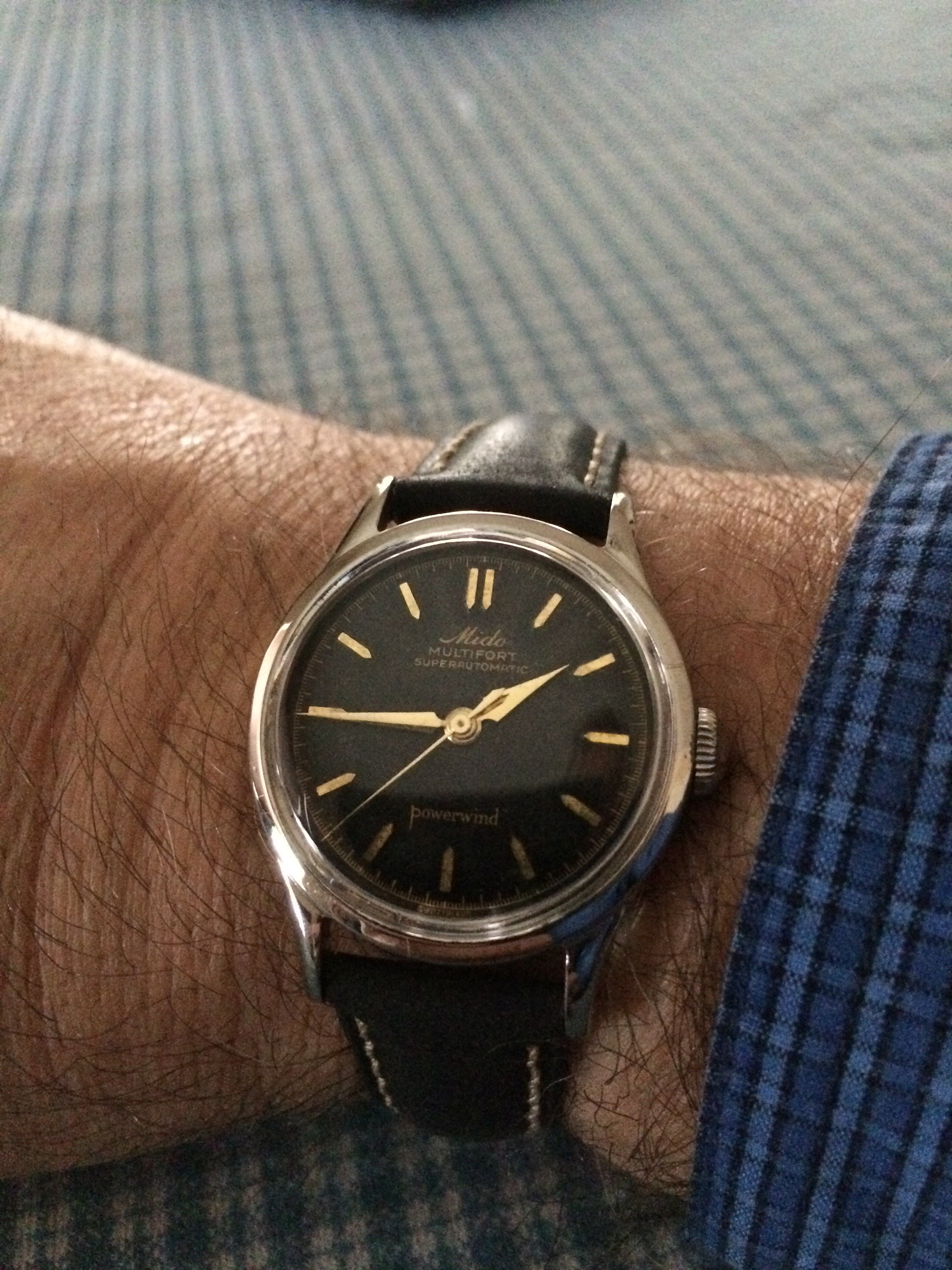 Arrived via FedEx today. Auction purchase. Battleworn but working. Strap fitted and on wrist. Job done. I seem to be moving towards smaller watches...