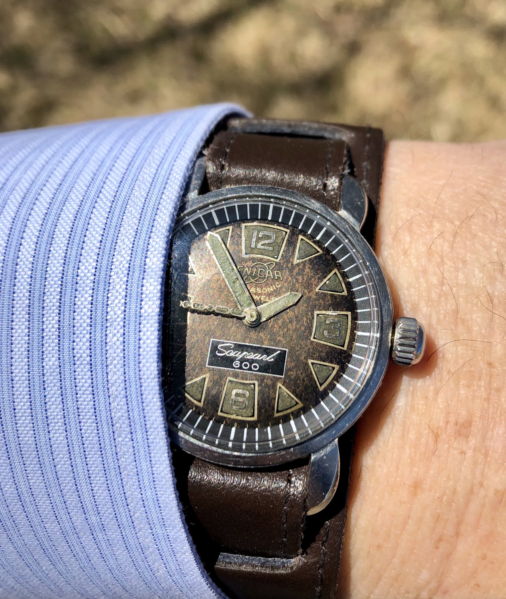 Dear comrades and fellow (time) travelers, today I am keeping time with a Soviet-made Poljot 23 jewel "Classic" chronograph powered by Poljot's 3133 calibre. The Poljot 3133 is based off of the Valjoux 7734 calibre. Poljot purchased the equipment used to make the 7734 calibre when Valjoux/ETA discontinued production of the movement in the 1970s. Poljot made a number of modifications to the movement, including: increasing the number of jewels from seventeen to twenty-three (all chronograph gears run in jewels); inclusion of an in-house designed anti-shock system; and reducing the diameter of the balance. As a result, the Poljot 3133 beats at 3Hz (21,600vph), compared to the Valjoux 7734's 2.5Hz (18,000vph). The Soviet-made Poljot claimed a power reserve of 42 hours, which was not propaganda. The Poljot 23 "Classic" measures 38mm in diameter w/o crown and 44mm lug to lug. Its domed crystal makes it very difficult to photograph, as it reflects light like crazy. Poljot manufactured these chronographs at the First State Watch Factory, in Moscow. As an historic side note, the First State Watch Factory was established by the Soviet government in 1931 after it purchased the Dueber-Hampden Watch Co., of Canton, Ohio, the previous year. Dueber-Hampden's equipment, parts-on-hand, and work-in-progress was packed into twenty-eight boxcars, and shipped to Moscow. Twenty Dueber-Hampden employees signed one year contracts and moved to Moscow to train the Soviets in watchmaking...and, thus, the modern Soviet watch industry was created...or so I am told. In any event, this is a rugged chronograph that keeps very accurate time.
