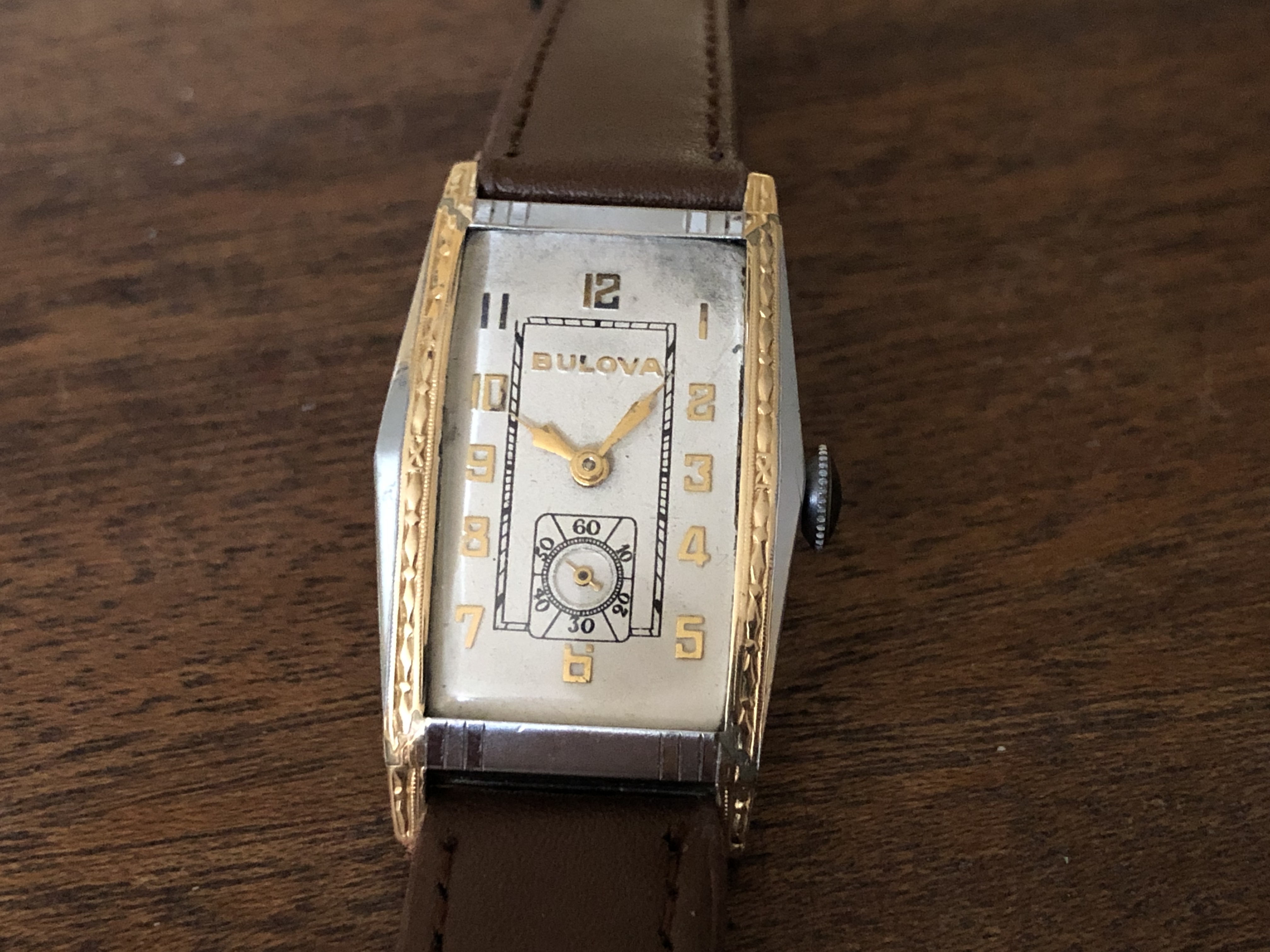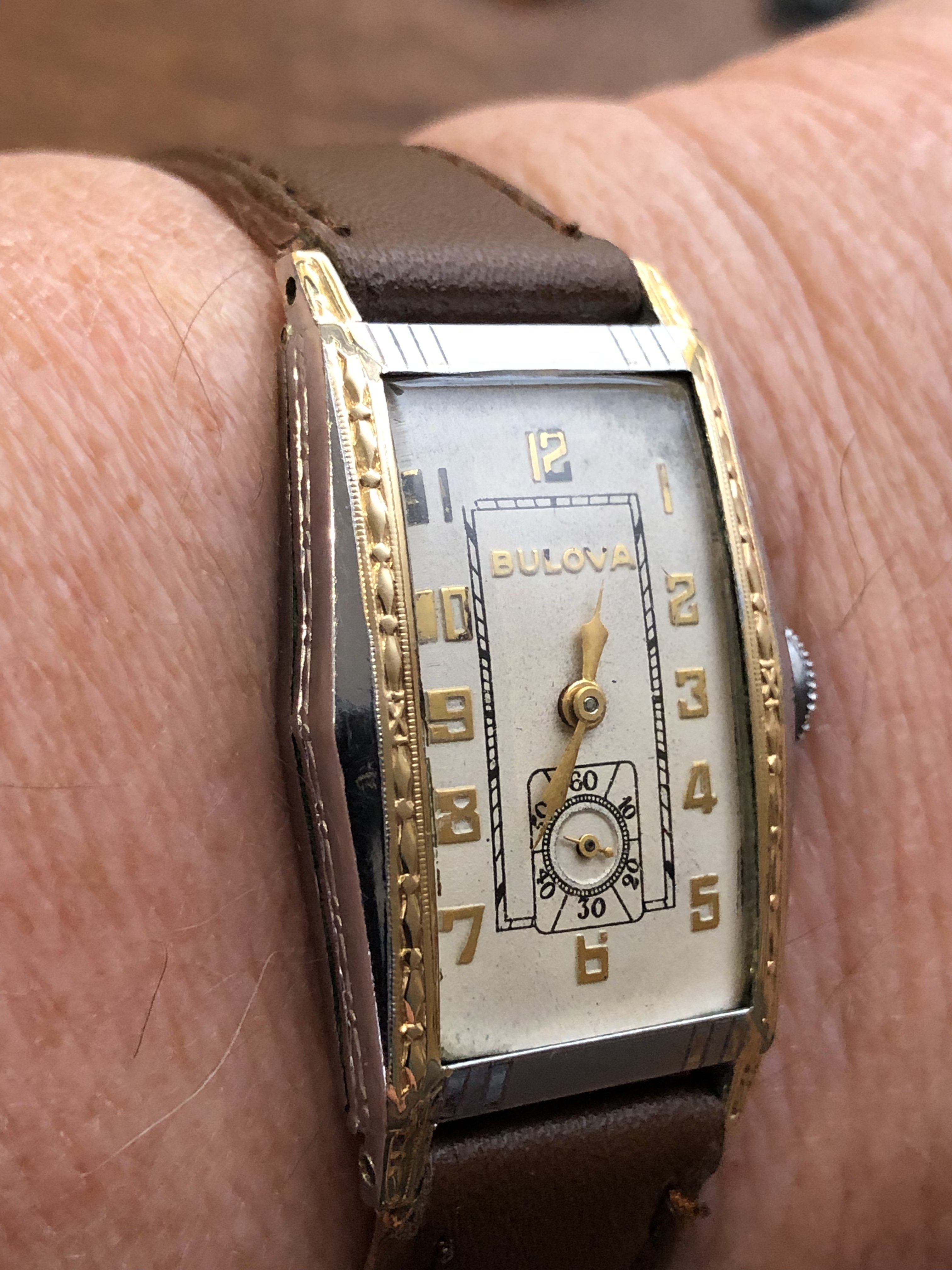 Posts 1,957 Likes 25,748 allwoundup ·Apr 2, 2019 1931 Bulova “Prentice”, powered by a Swiss seventeen jewel 9AF movement...a relatively modern 40mm lug-to-lug, but still a bit small on my wrist, I’m afraid.