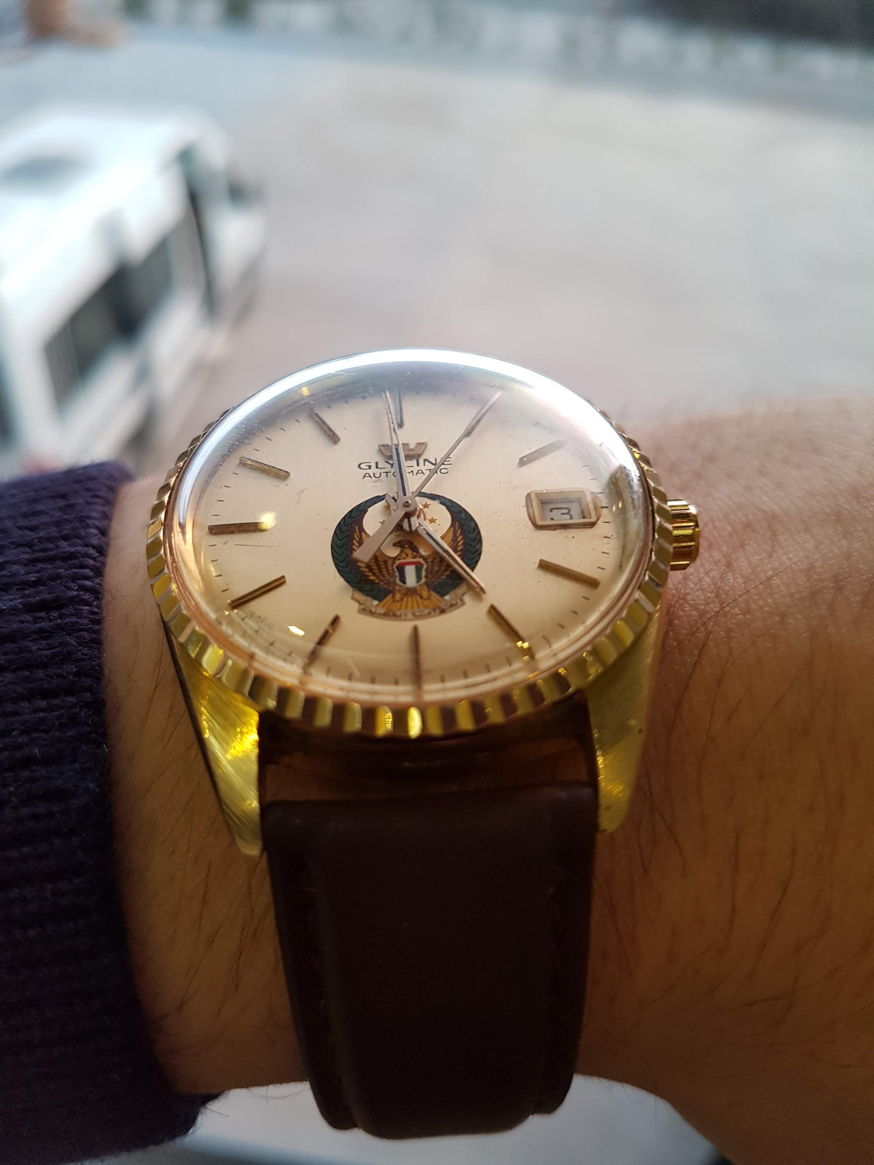 Posts 25 Likes 154 grinny ·Apr 3, 2019 First WRUW post! It's a DJ "inspired" Glycine with a UAE Armed Forces crest on the dial. I also have the original bracelet but, it's too much yellow for me😀 Edited: Apr 3, 2019