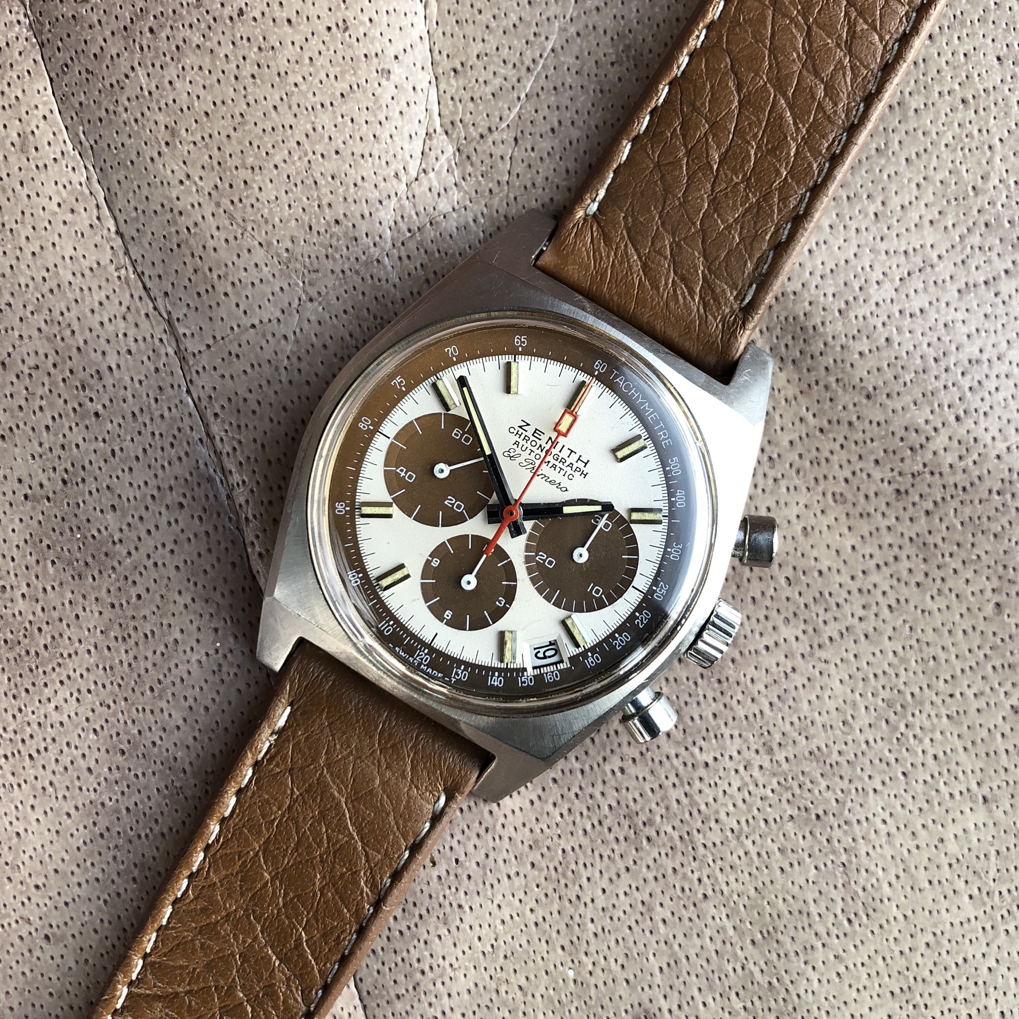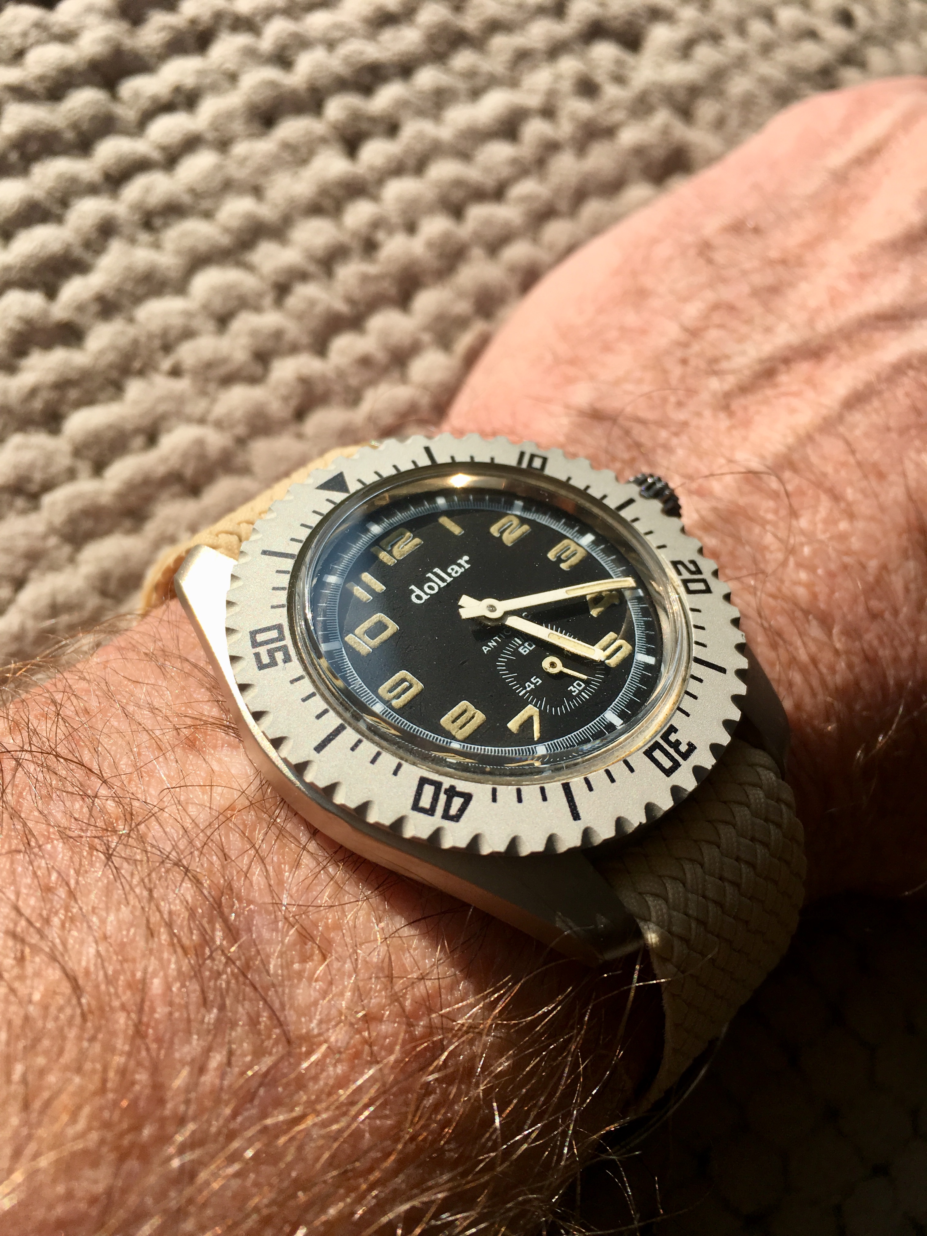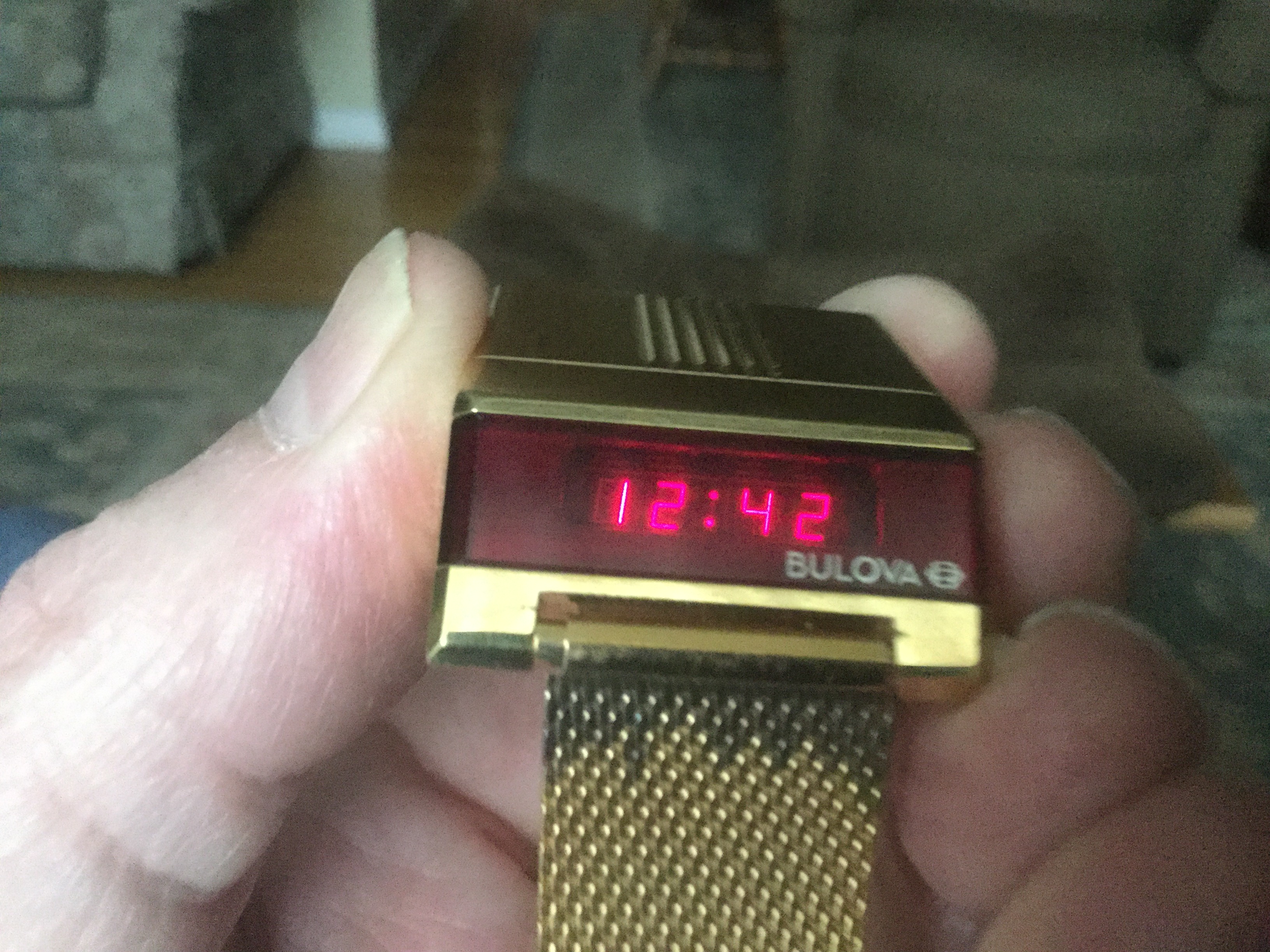 It’s a cold, wet, miserable day today. Time for a little “light” reading. My 1976 Bulova “Computron”. Haven’t had batteries in this for probably 5 years. But meeting with some collector brethren this week end, and I wanted it running. Cells usually only good for 6 to 8 weeks. This model was intended as a “driver’s” watch I suspect. Hence the read out on the edge of the watch. It features hours, minutes, seconds, month, and date.