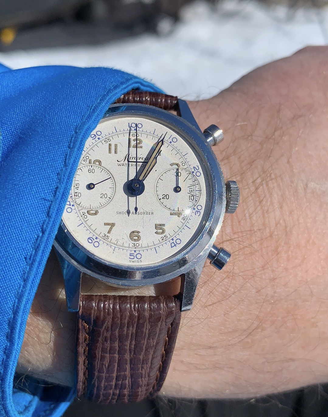 Posts 4,440 Likes 18,259 Northernman ·Apr 13, 2019·Lemaniac Last chance for some proper skiing this season. Minerva ref 1335. In house cal 13-20CH. Cheers and HAGWE! Edited: Apr 13, 2019
