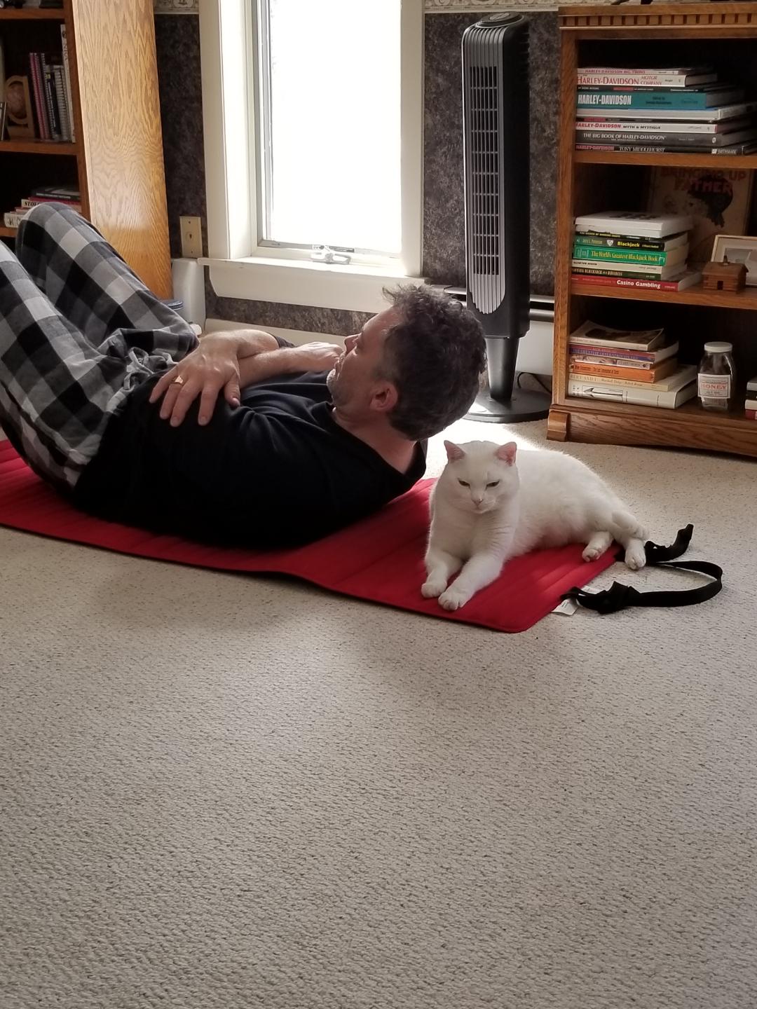 And here is the real McKinley, helping me do my crunches. He says he can hold the position as long as I can .