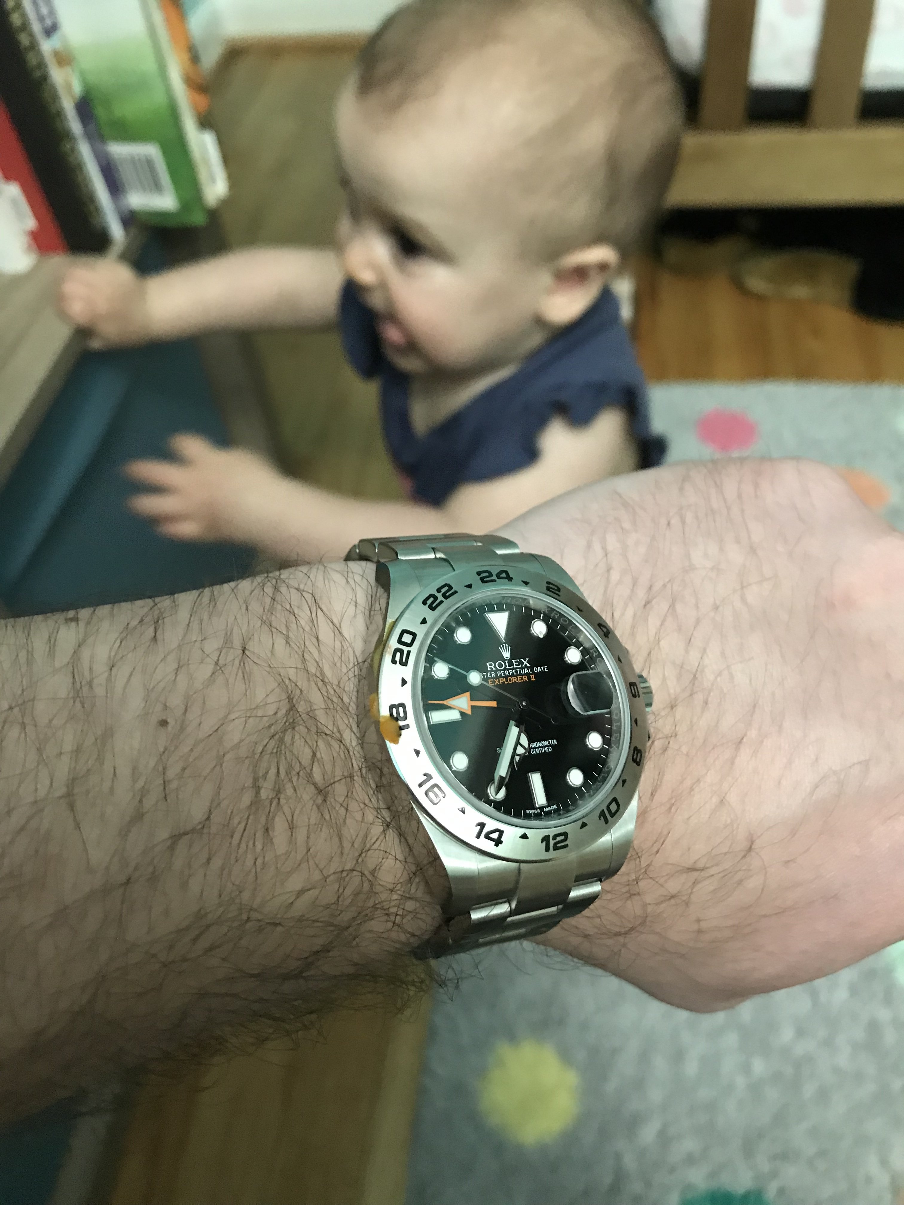 Posts 942 Likes 15,375 Mmike1357 路Apr 14, 2019 Update, now an explorer II with sweet potato bezel markers... it ended up between her eyes!
