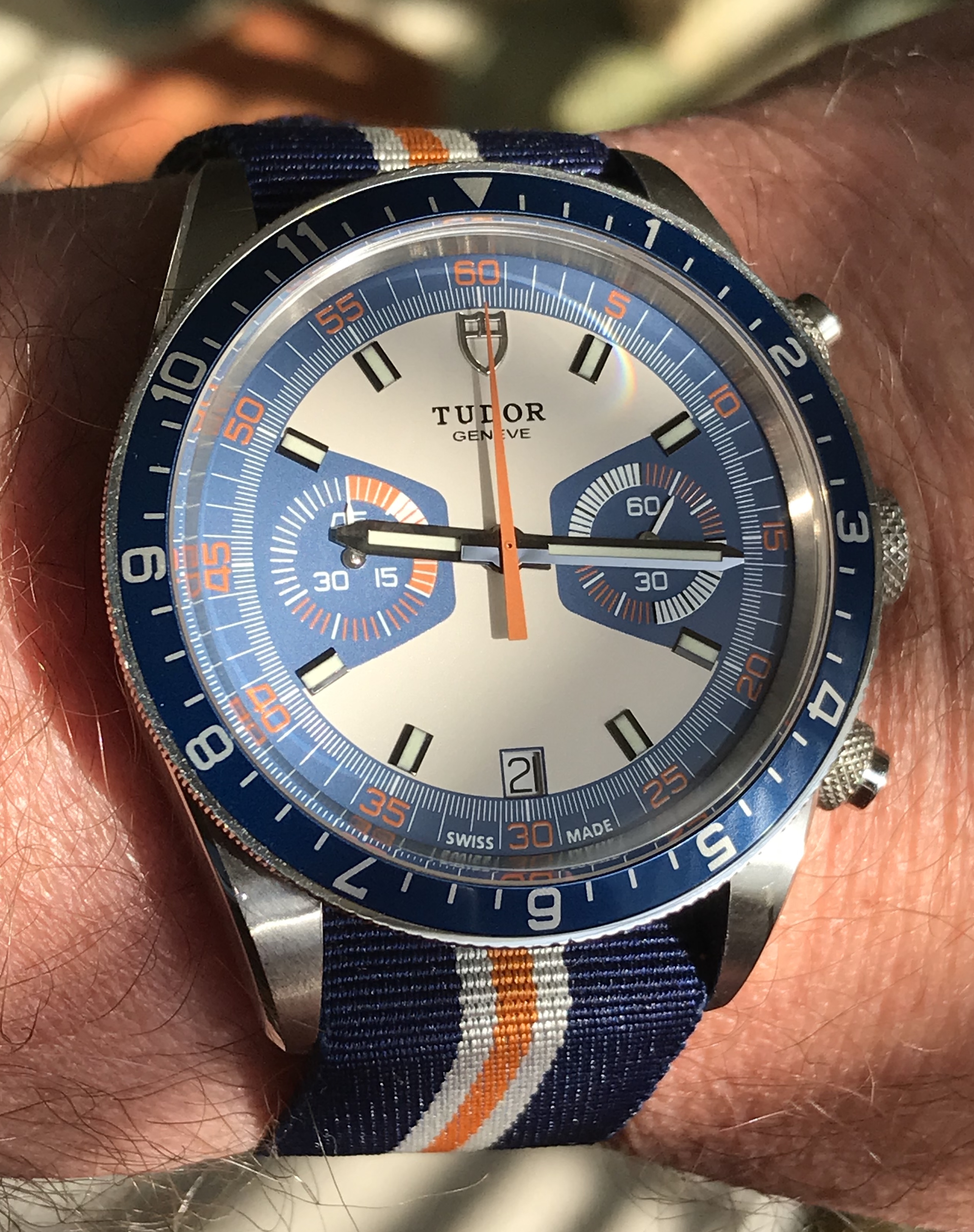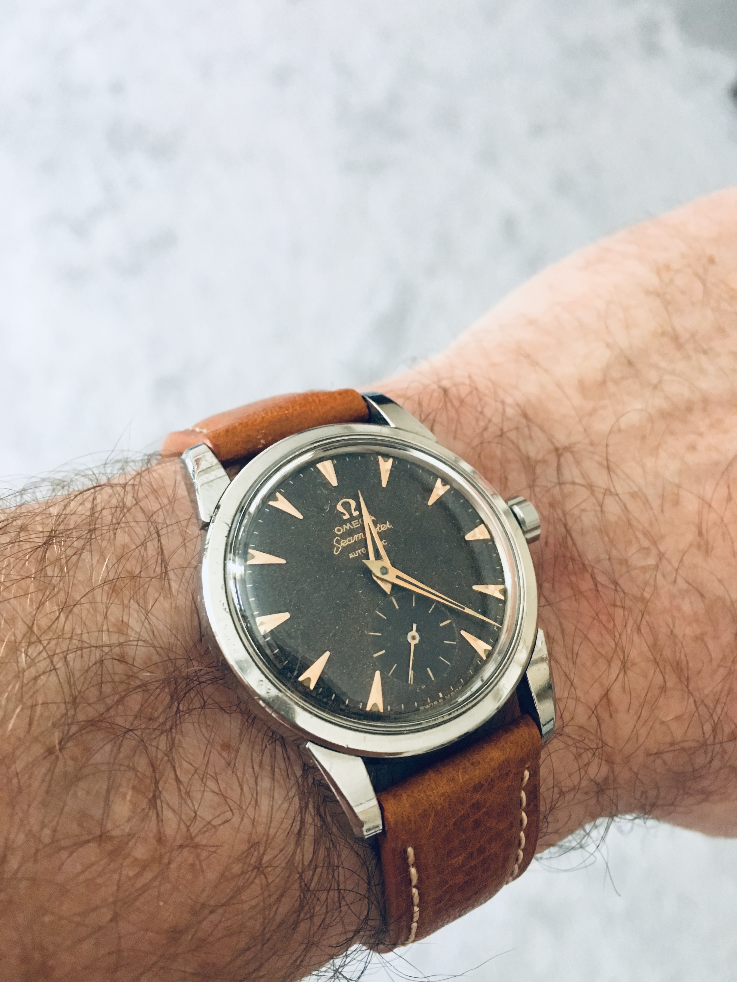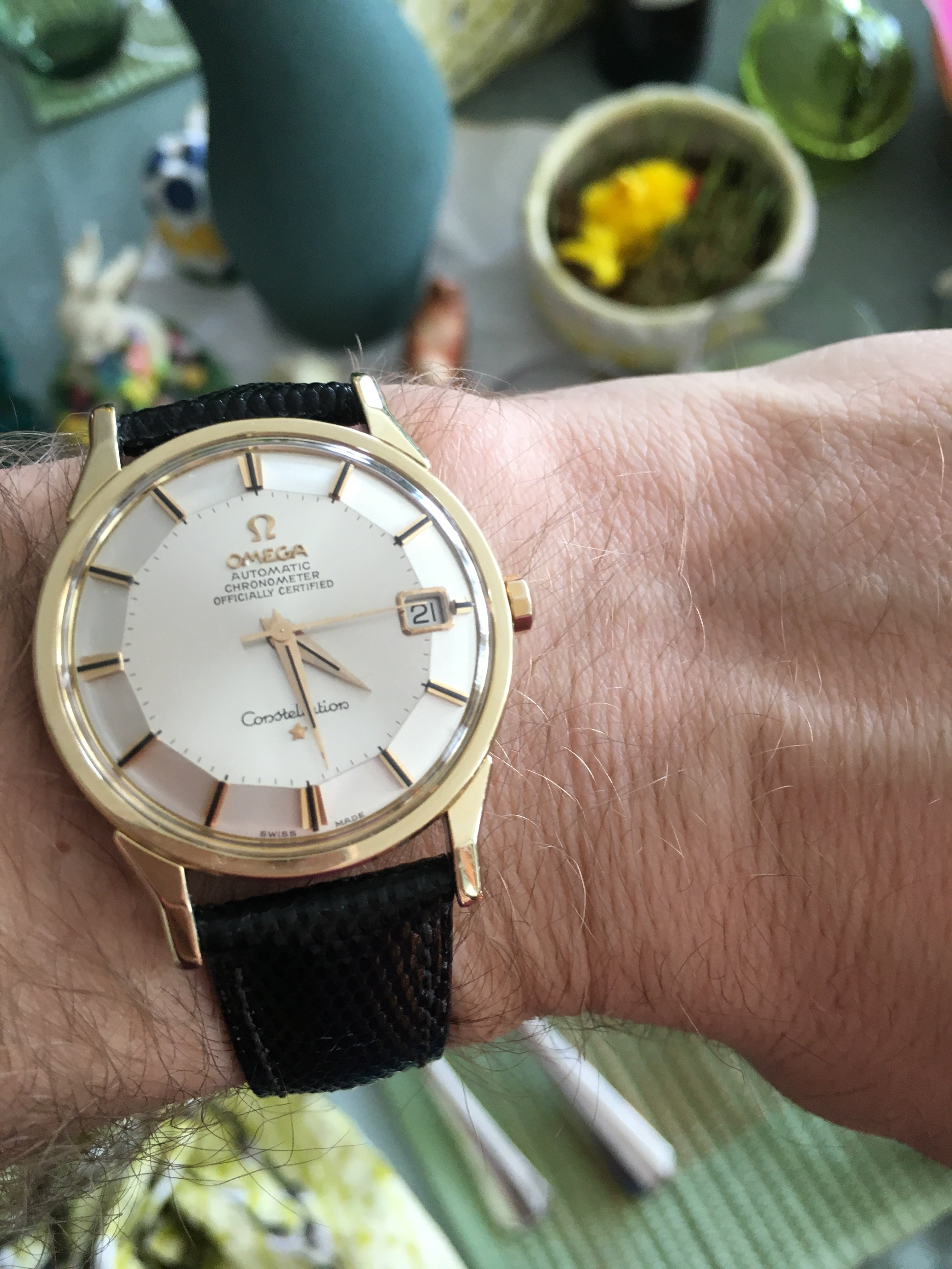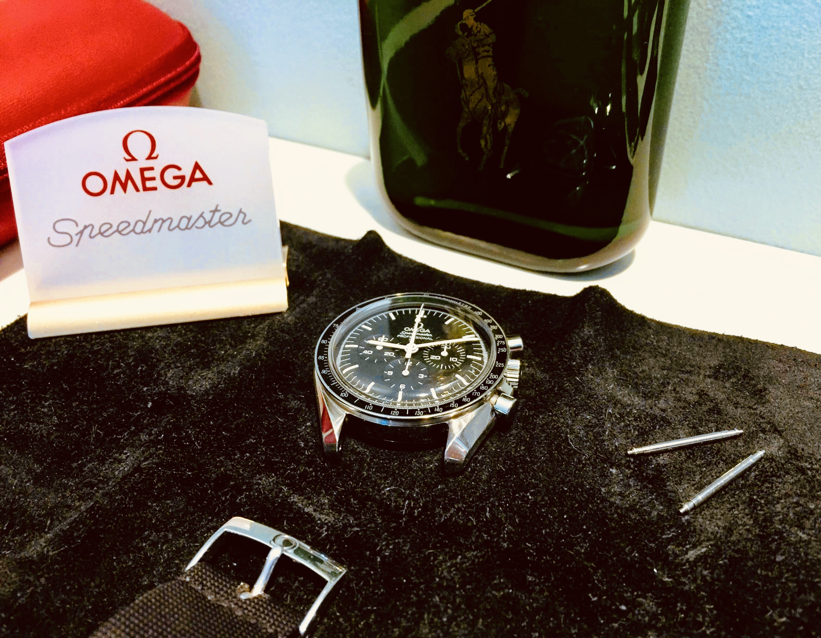 Modern Speedy Gonzales Moonwatch for usher duty at Church today...currently in the process of switching over to the original black leather band prior to Church.