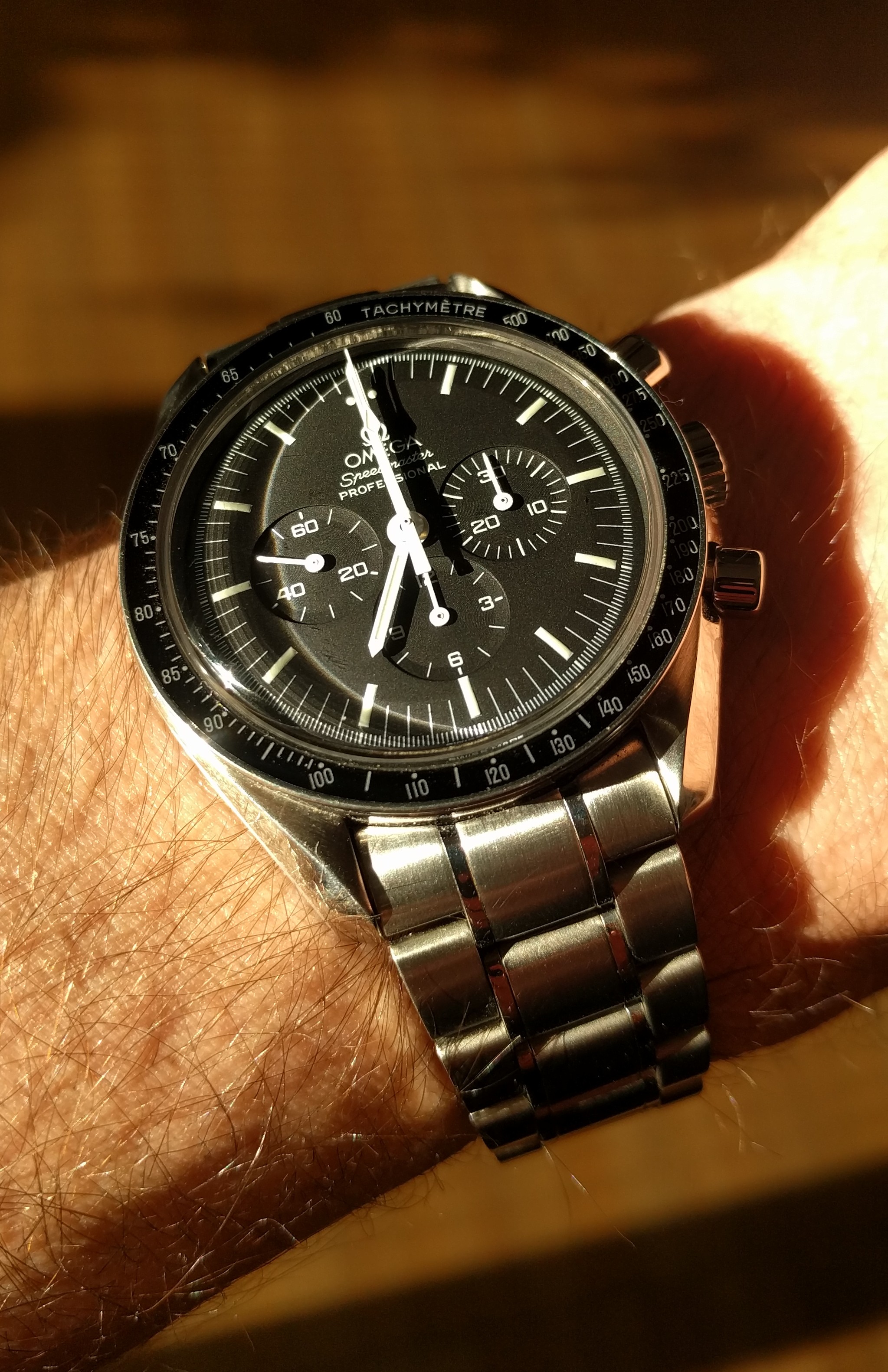 It’s my 55th birthday today...so I’m wearing my grail watch [a modern Speedy Gonzales Moonwatch on an Omega Barenia leather NATO]...and if I want to, I’ll go to Dunkin’ Donuts, Hooters and Waffle House. 👍
