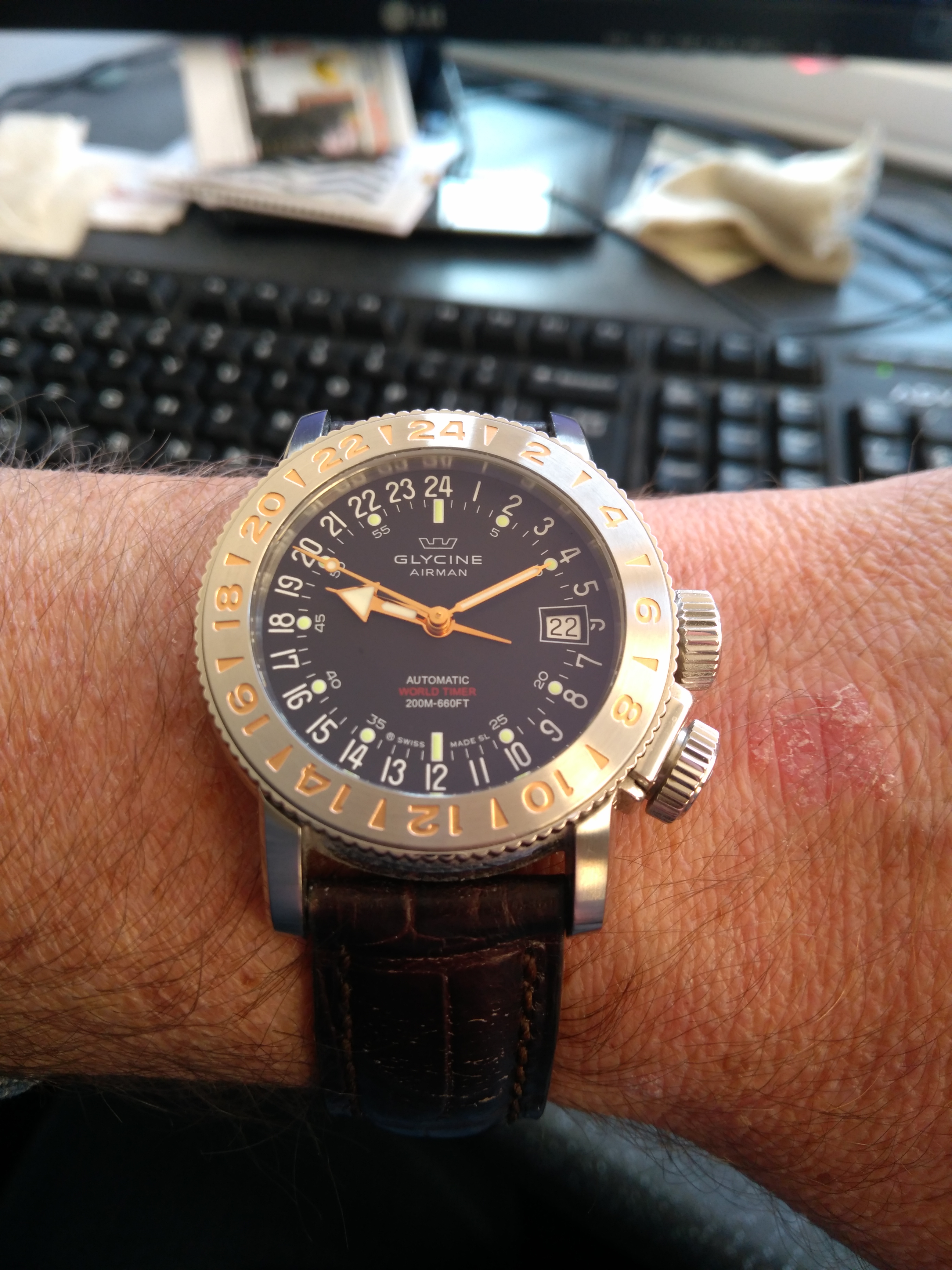 Every so often I'm drawn back to this. If anyone wants a practical, no nonsense (as in 2 timezone, 4 hand GMTs) dual-time watch, I'd pretty much recommend a Glycine. In my case, the Airman 18 is the one I chose 😀