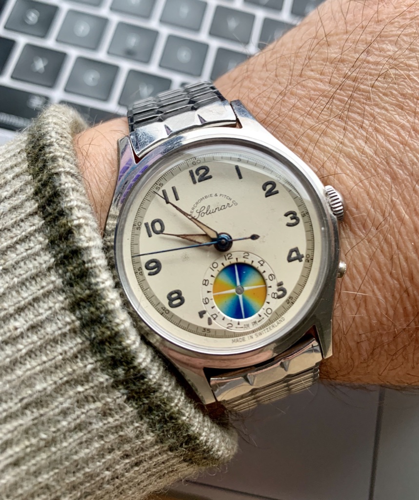 Wearing the "new to my collection" Abercrombie & Fitch Solunar today. Maybe I will go fishing! Guess I will have to figure out how to set and read the Solunar subdial if I do.