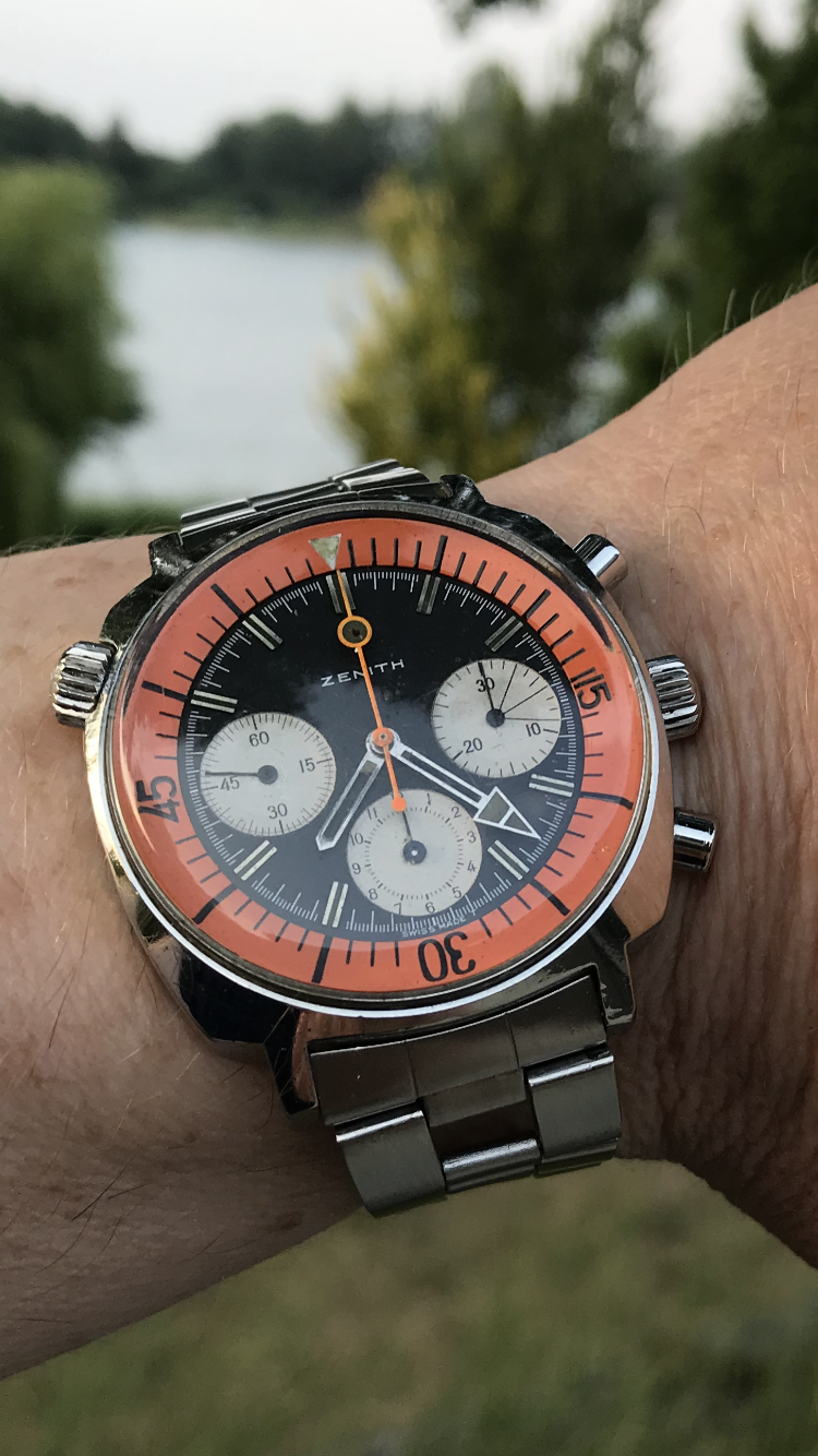 Posts 1,441 Likes 11,971 chronoboy64 ·Apr 22, 2019 Today with the Zenith A3736 orange bezel in all original condition