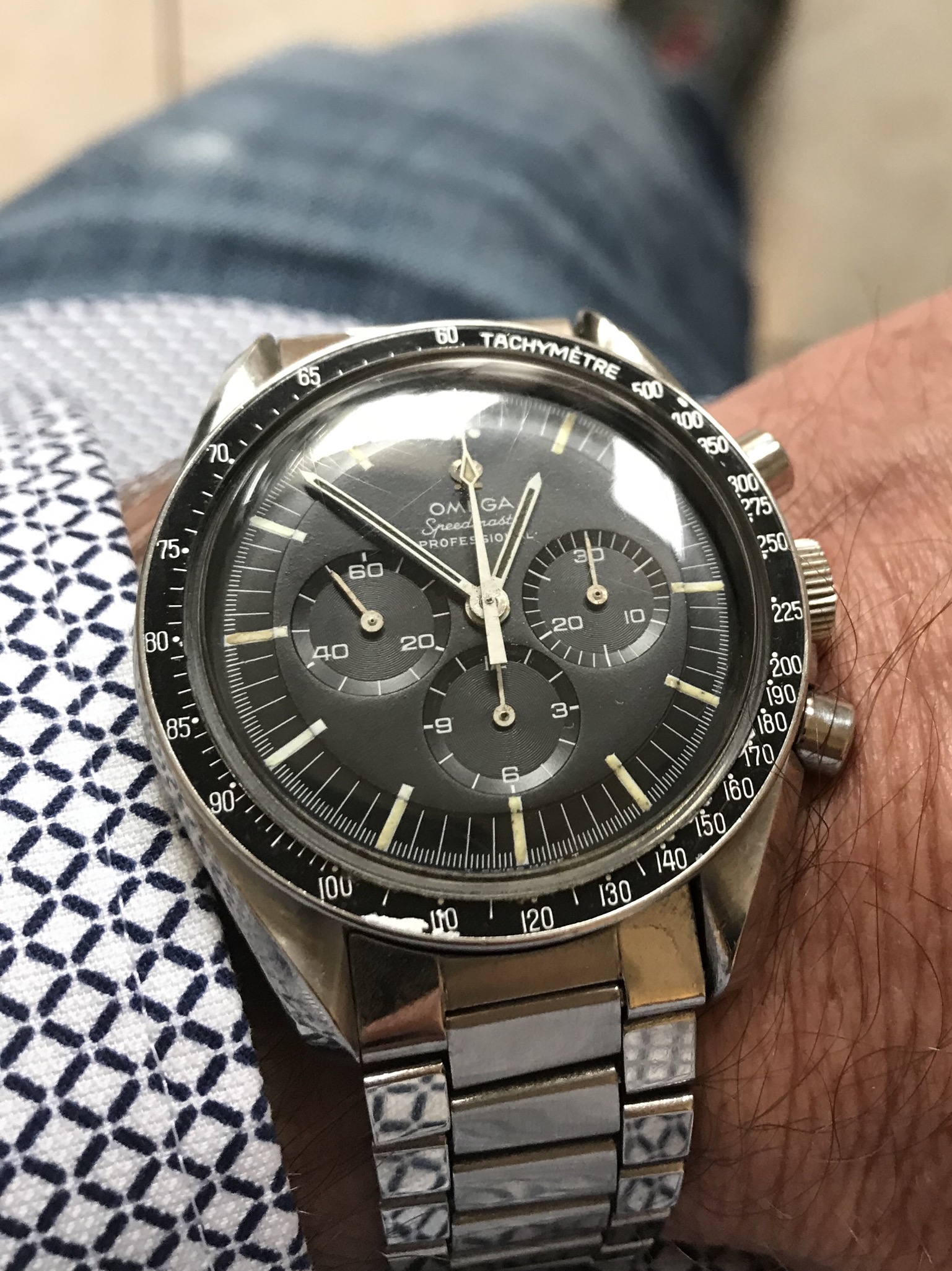 Got a 1171 bracelet with shortened 173 endlinks to 18mm. I think I will cut them more to fit 633 endlinks to wear it with my SM300. While thinking about how to cut, I had the idea to mount it to my Constellation. So here it is. I think it's a little strong for such a petite watch, but not bad anyway. So today is Connie day: