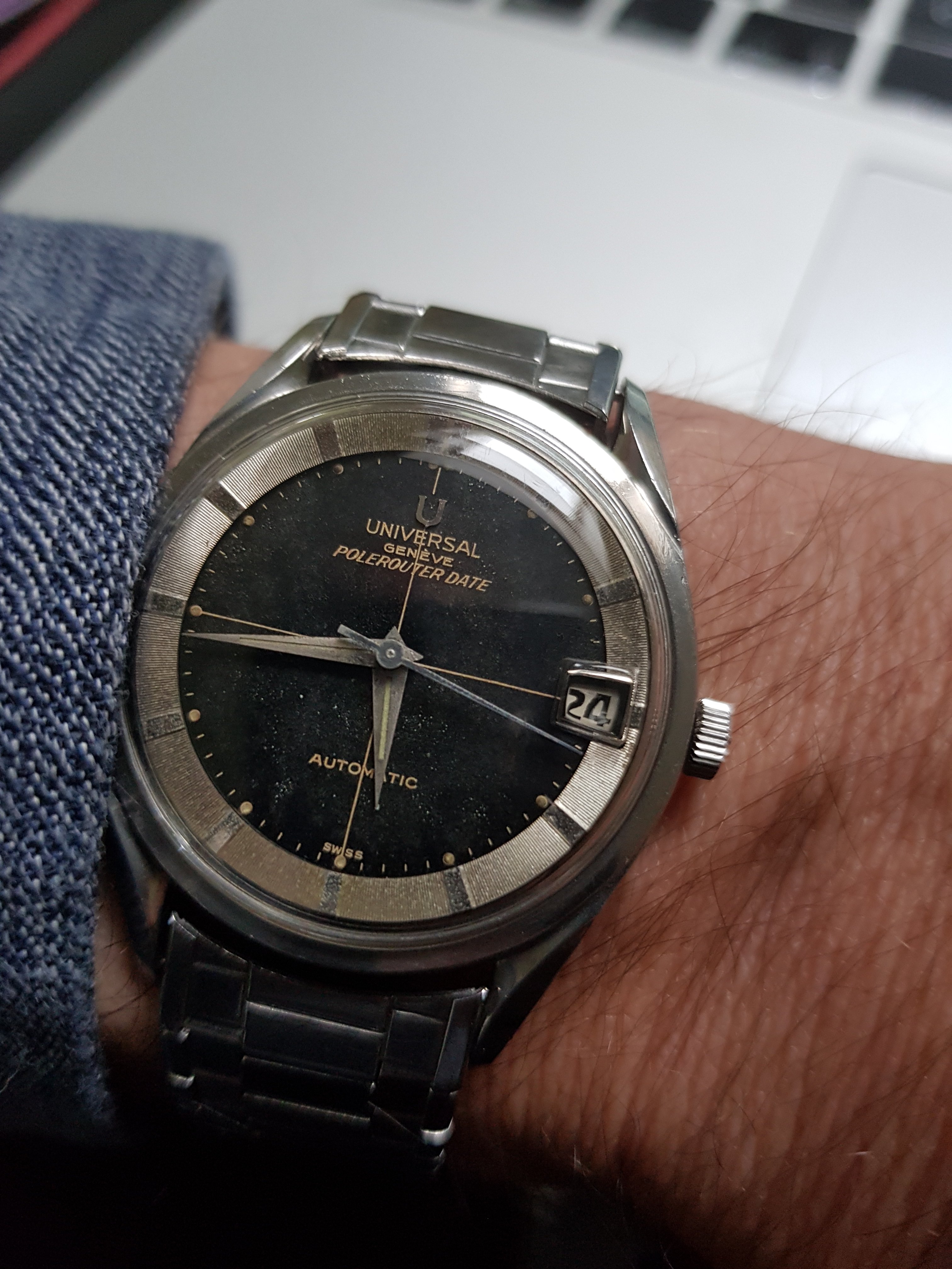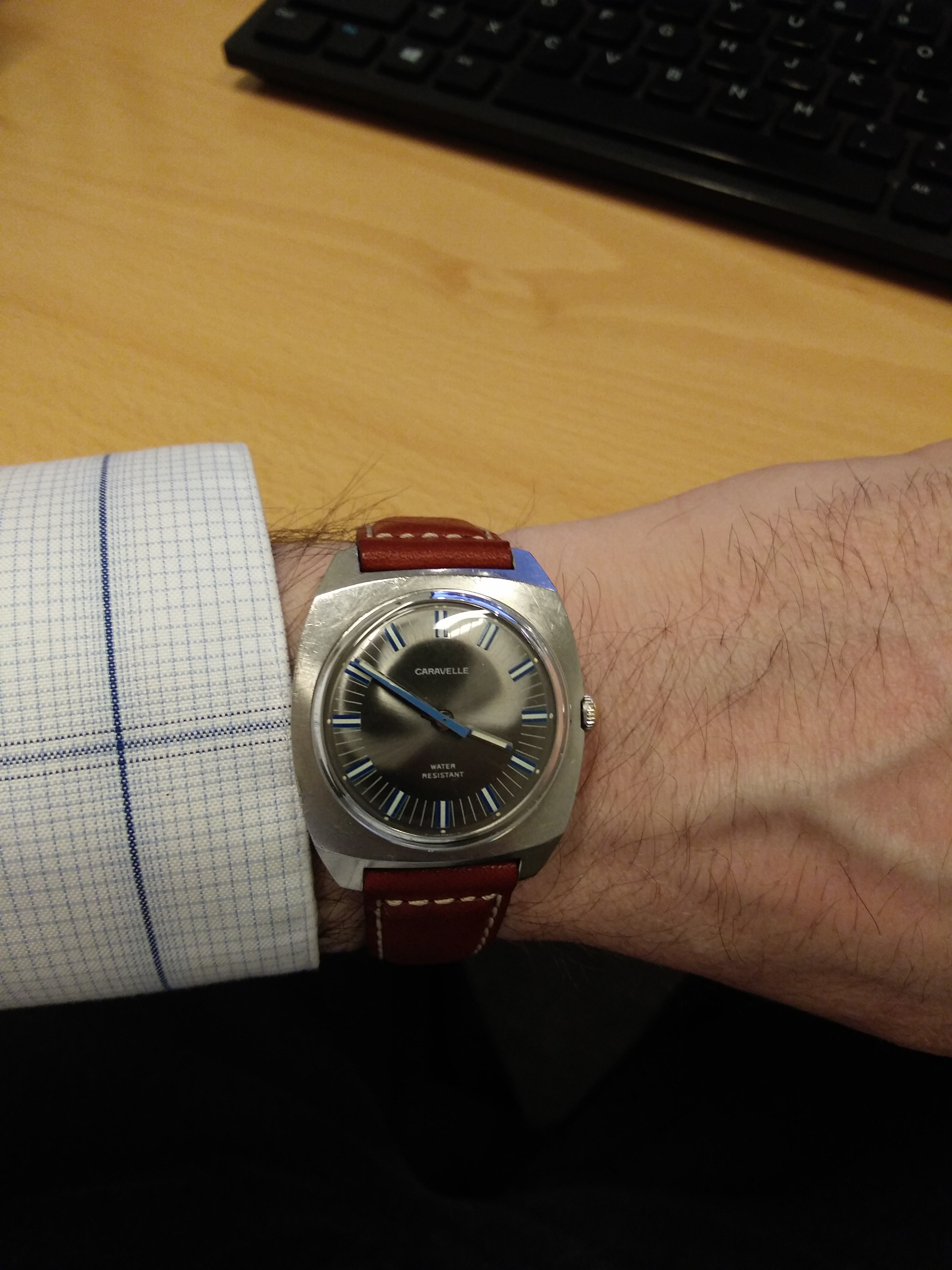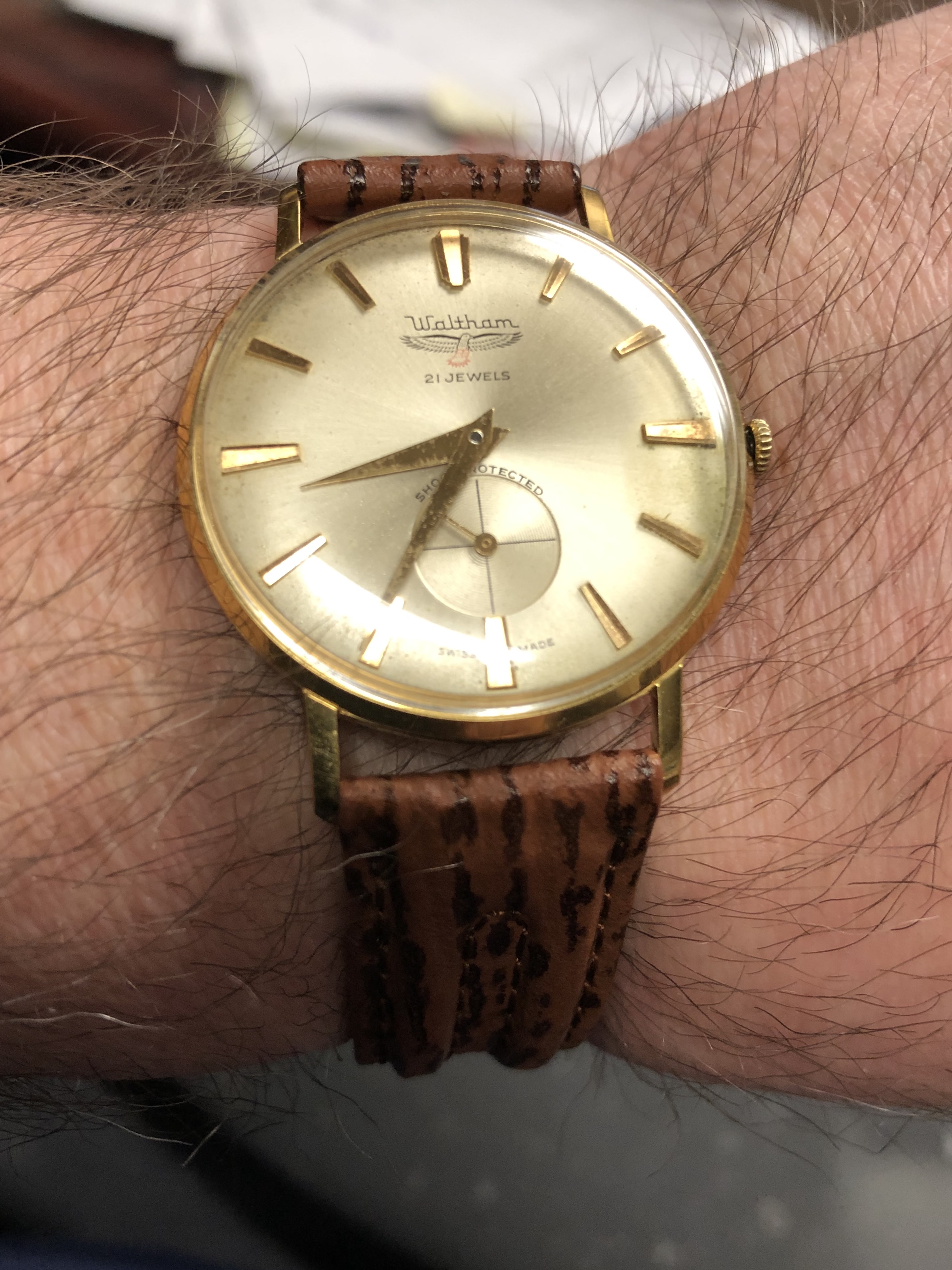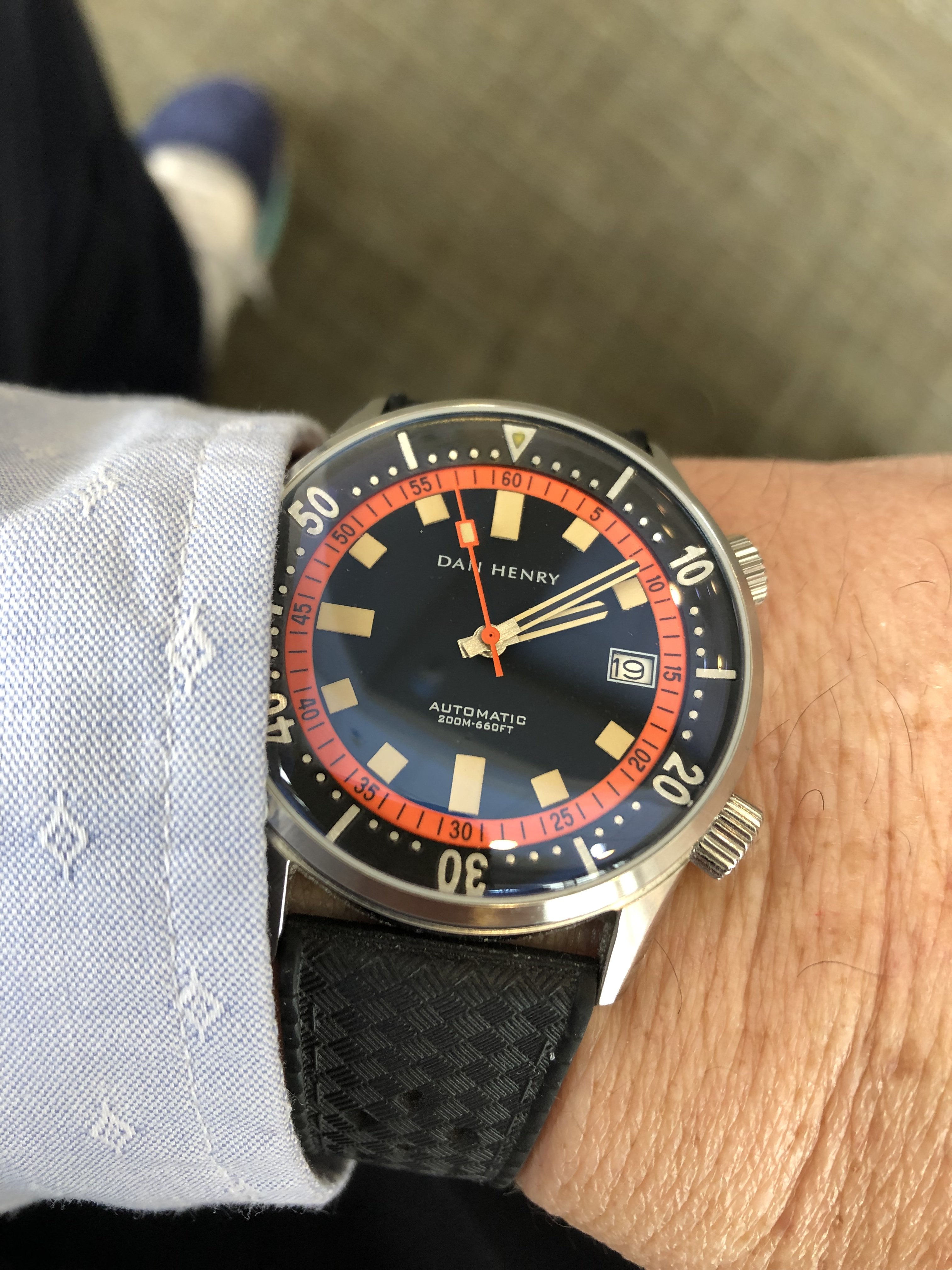Posts 1,957 Likes 25,748 allwoundup ·Apr 24, 2019 Going with this mid-1950s Helbros self-winding today....a kindred spirit to other two-tone sector dial watches of the period like the Hamilton "Rodney".