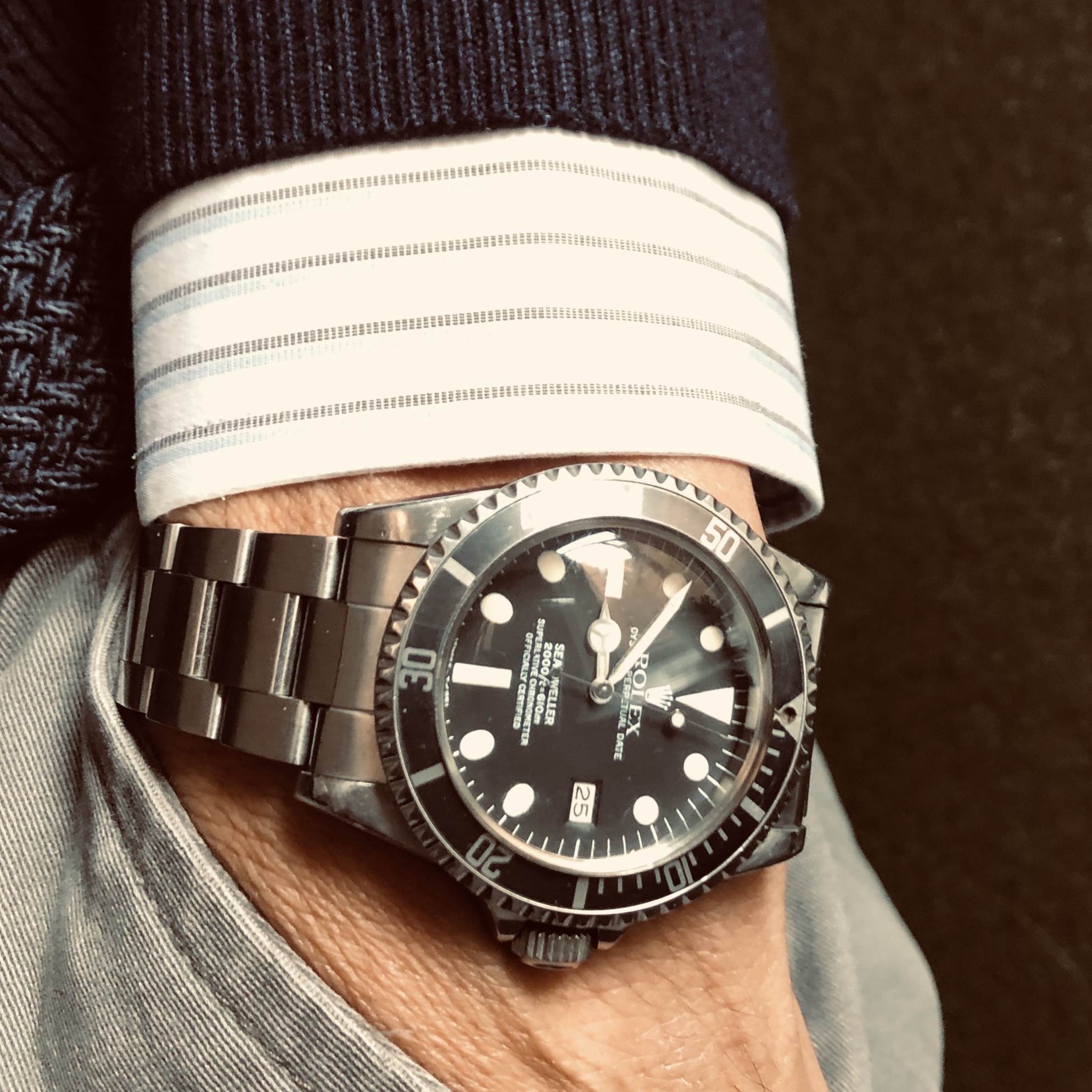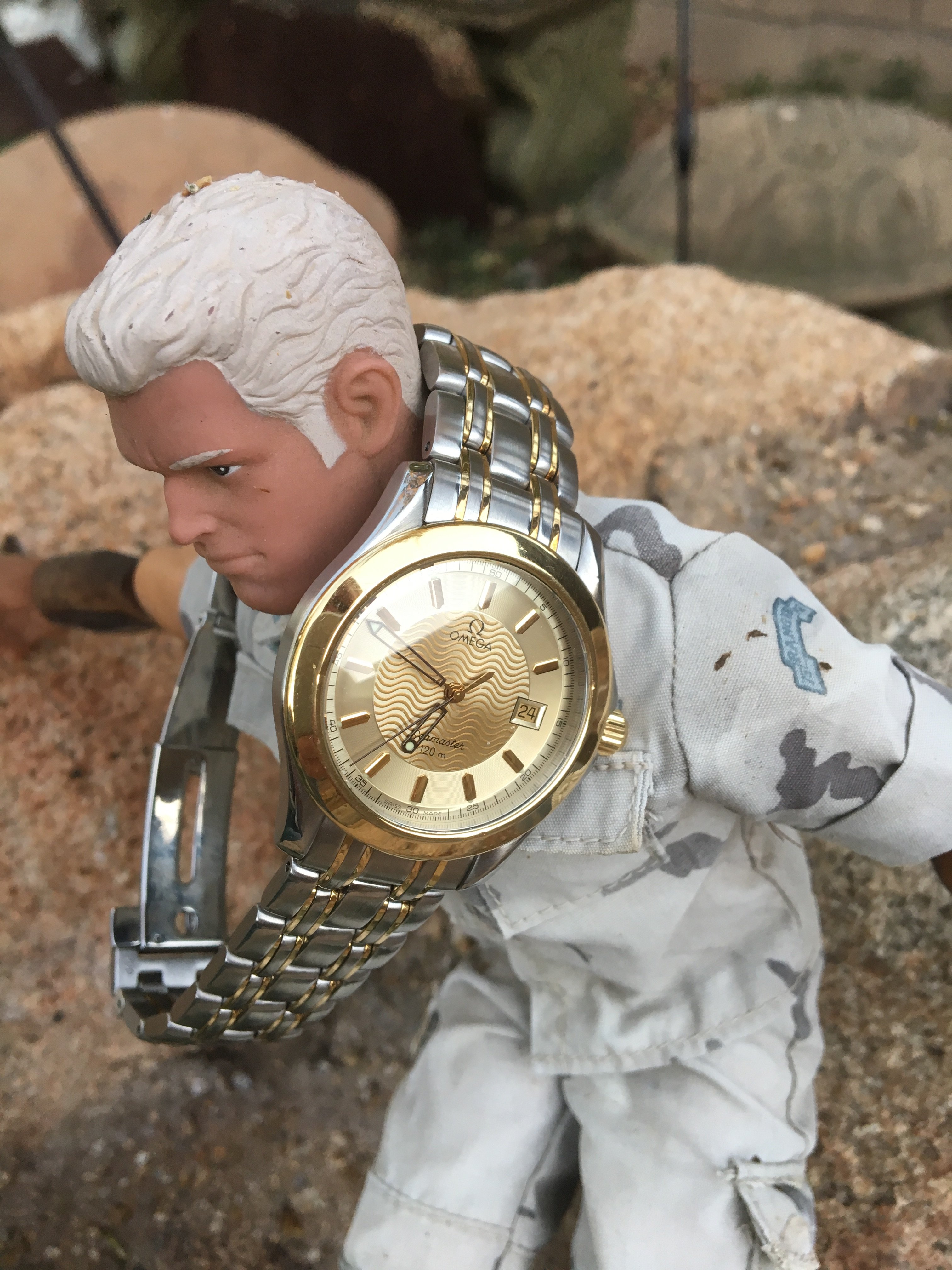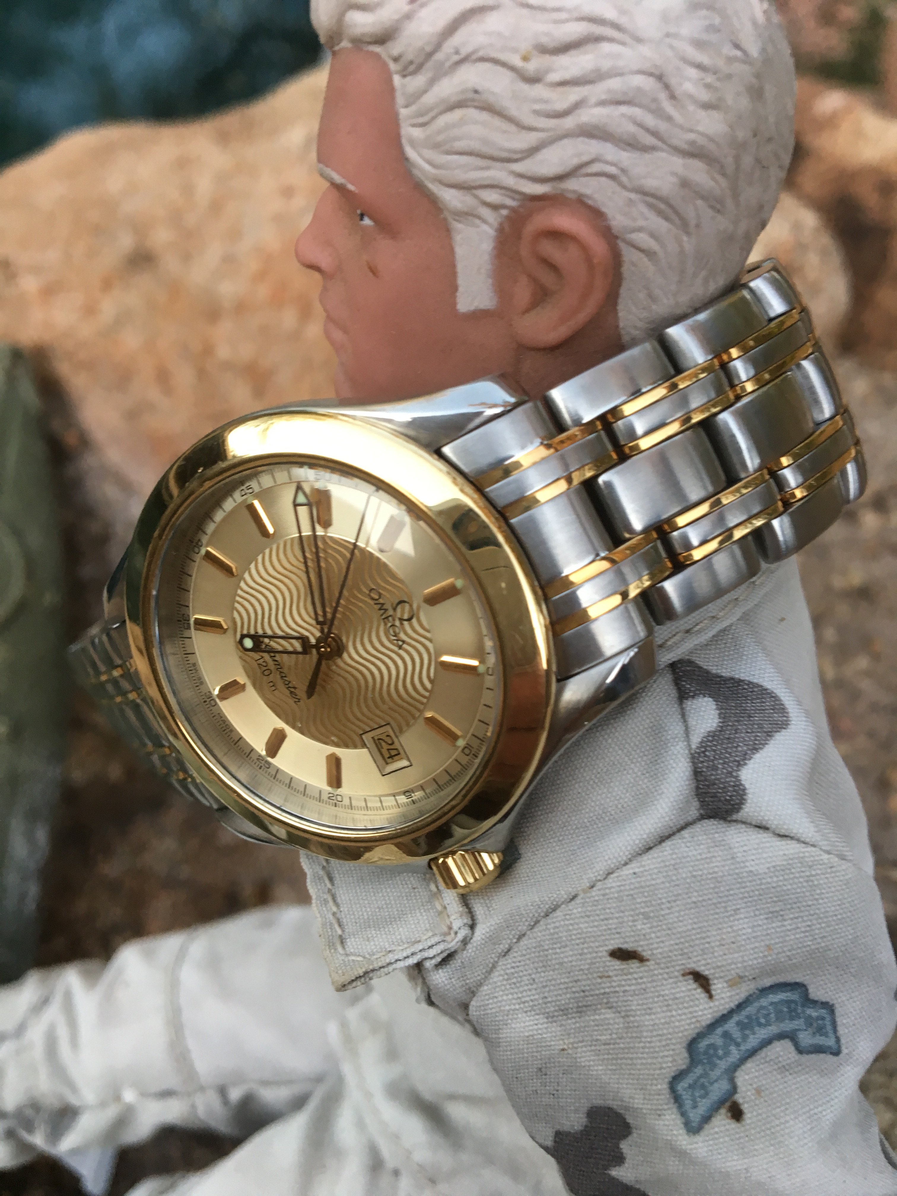Thought I should give Joe some FaceTime with the Quartz Seamaster. Joe is a qualified frogman. Did some bracelet adjustment adding a link. The 1501/823 does have a nice feel.