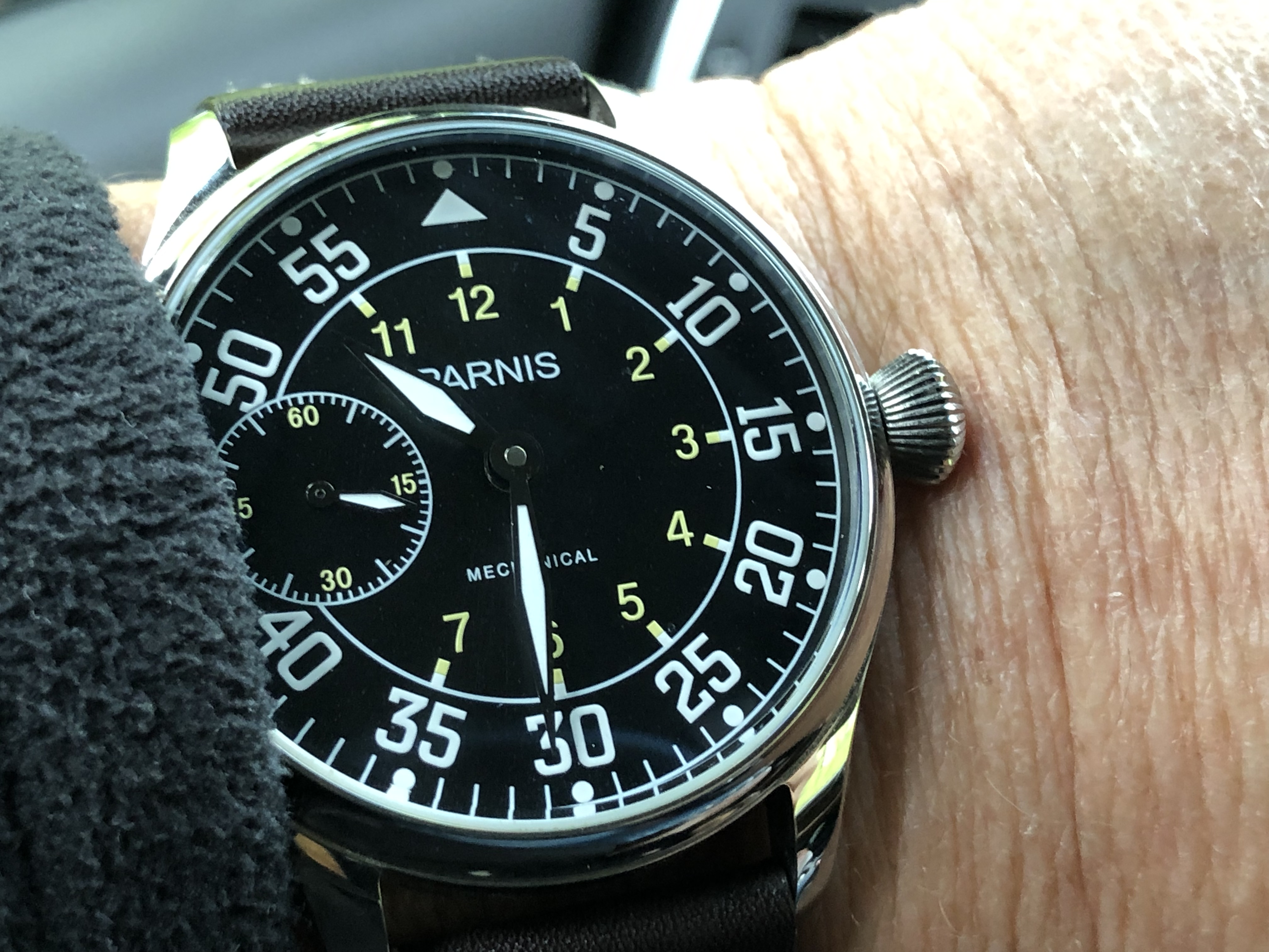Posts 1,957 Likes 25,748 allwoundup ·May 1, 2019 knock around Parnis aviator with ETA mechanical movement today....as I spend my morning providing roadside service to my teenage son who seems to have run over a box of nails.