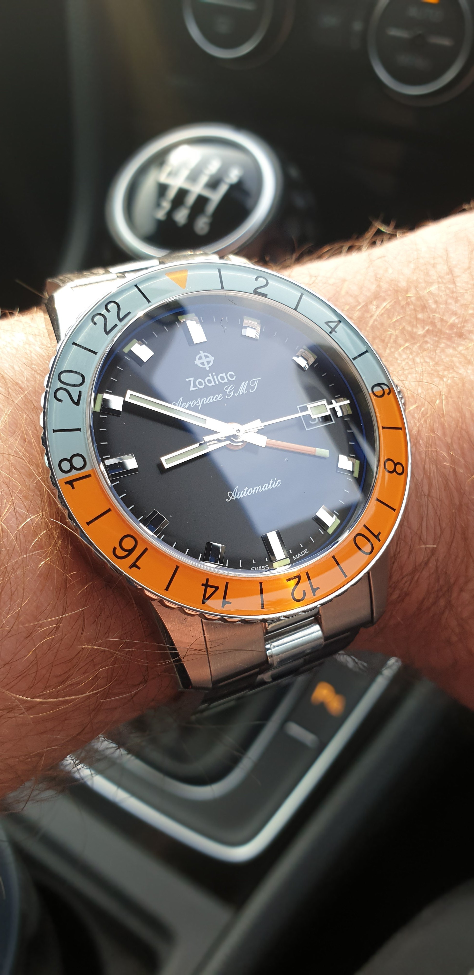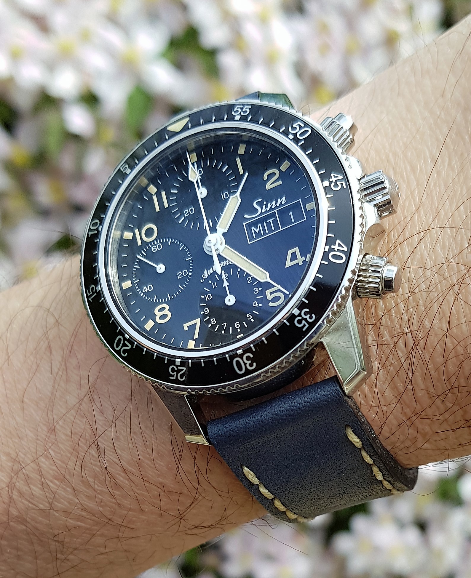 knock around Parnis aviator with ETA mechanical movement today....as I spend my morning providing roadside service to my teenage son who seems to have run over a box of nails.