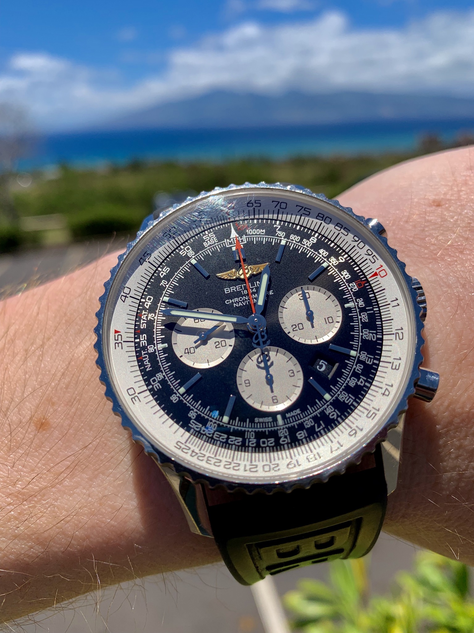 Posts 264 Likes 418 Timmert ·May 5, 2019 Last day of vacation at Maui, Hawaii. The Navitimer could obviously come along!
