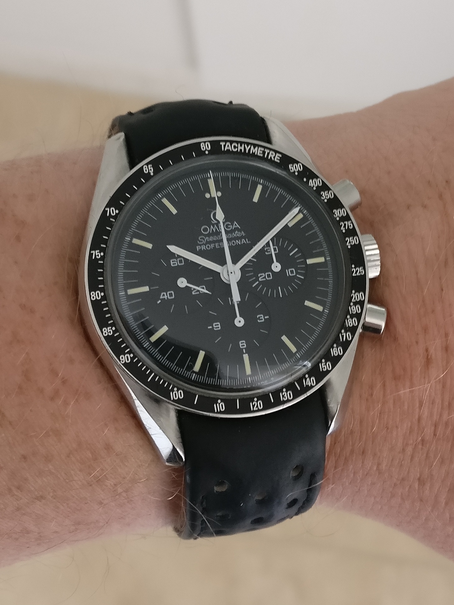 Fixed lug vintage strap in a delicate grey, kindly provided by an esteemed and cherished fellow OF member. 👍