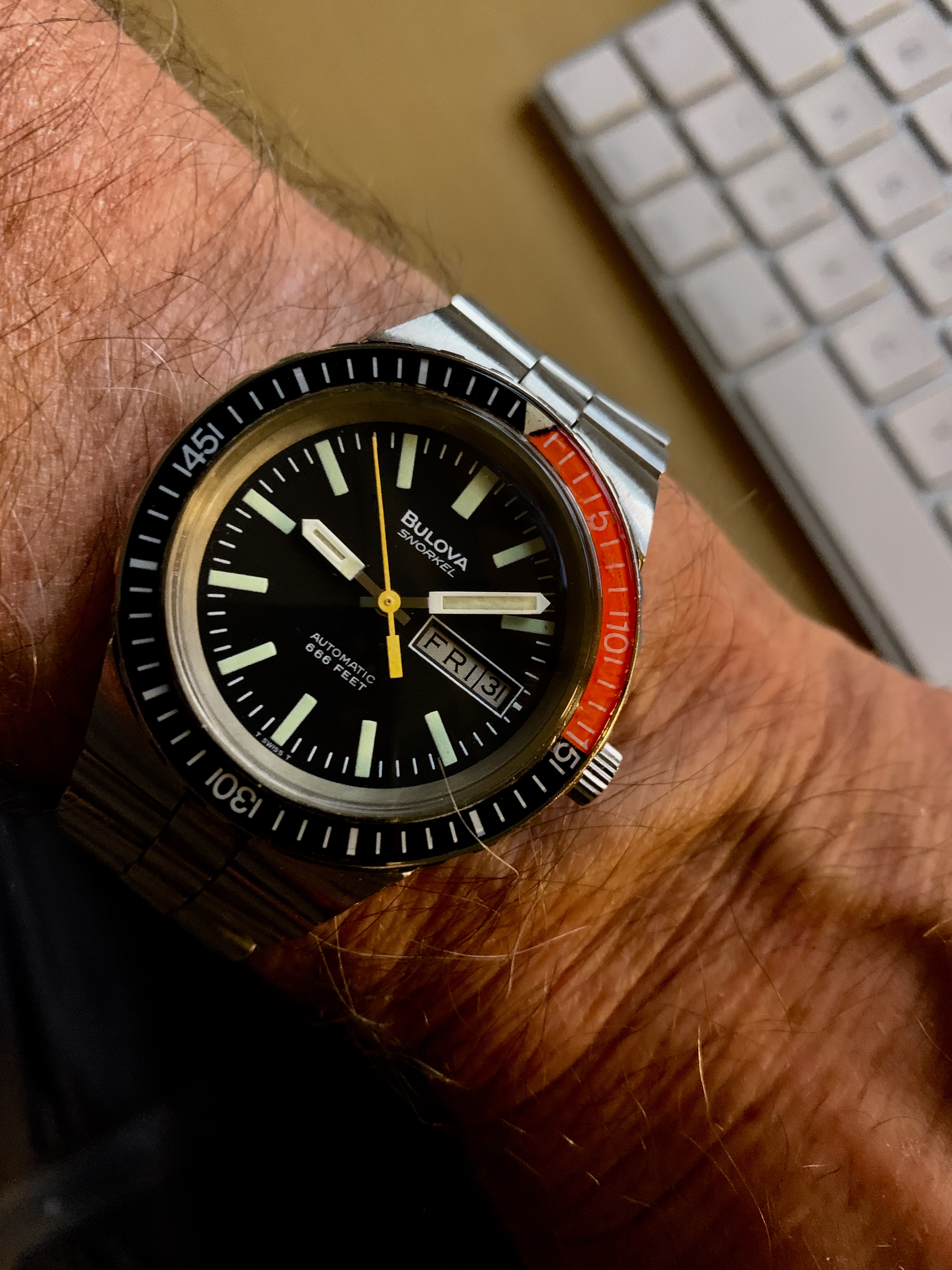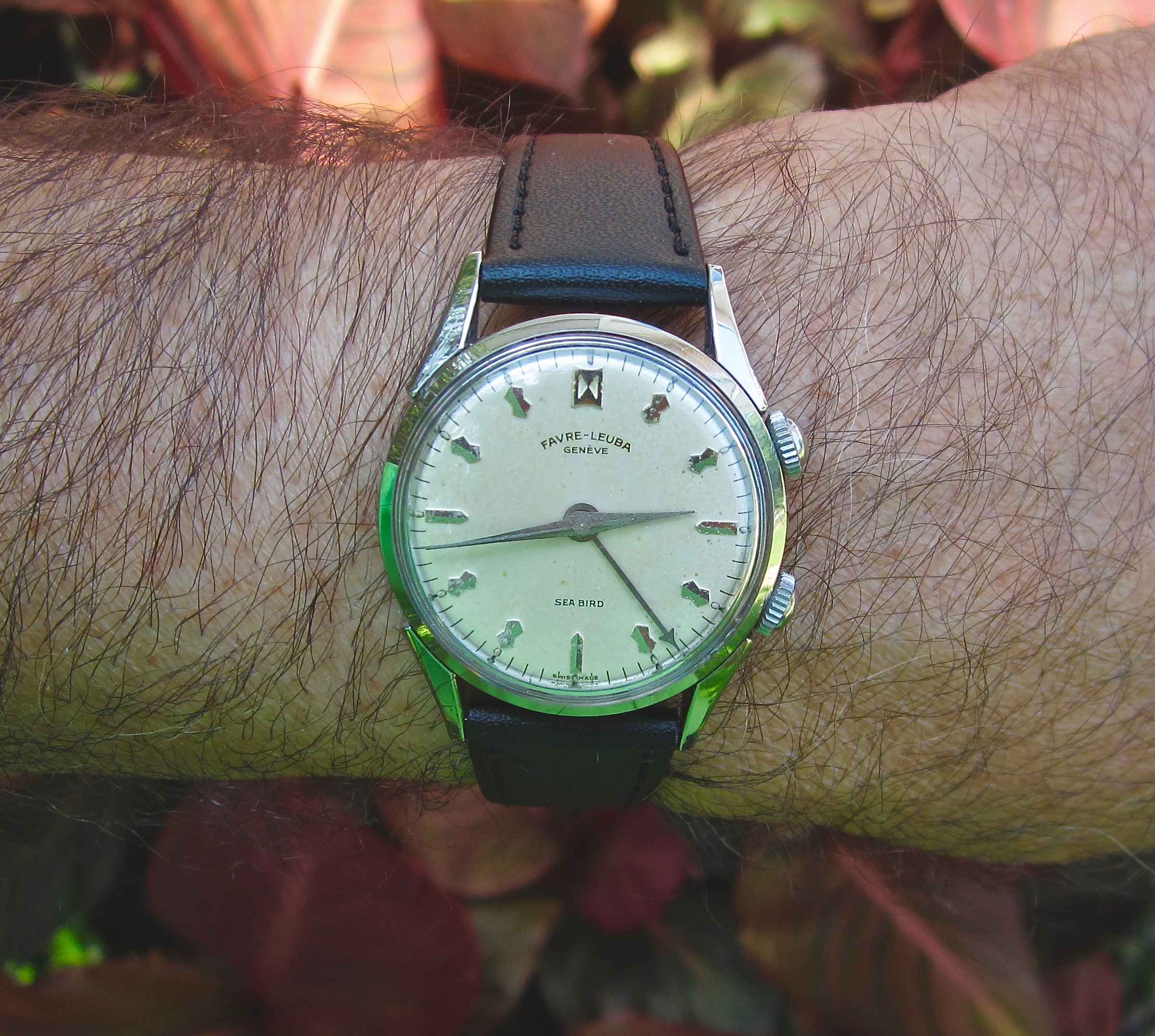 Posts 6,686 Likes 52,569 noelekal ·May 31, 2019·Home For Wayward Watches It's "alarming." Giving the Favre Leuba Sea Bird an airing today. It's just back from a service and a much needed crystal.