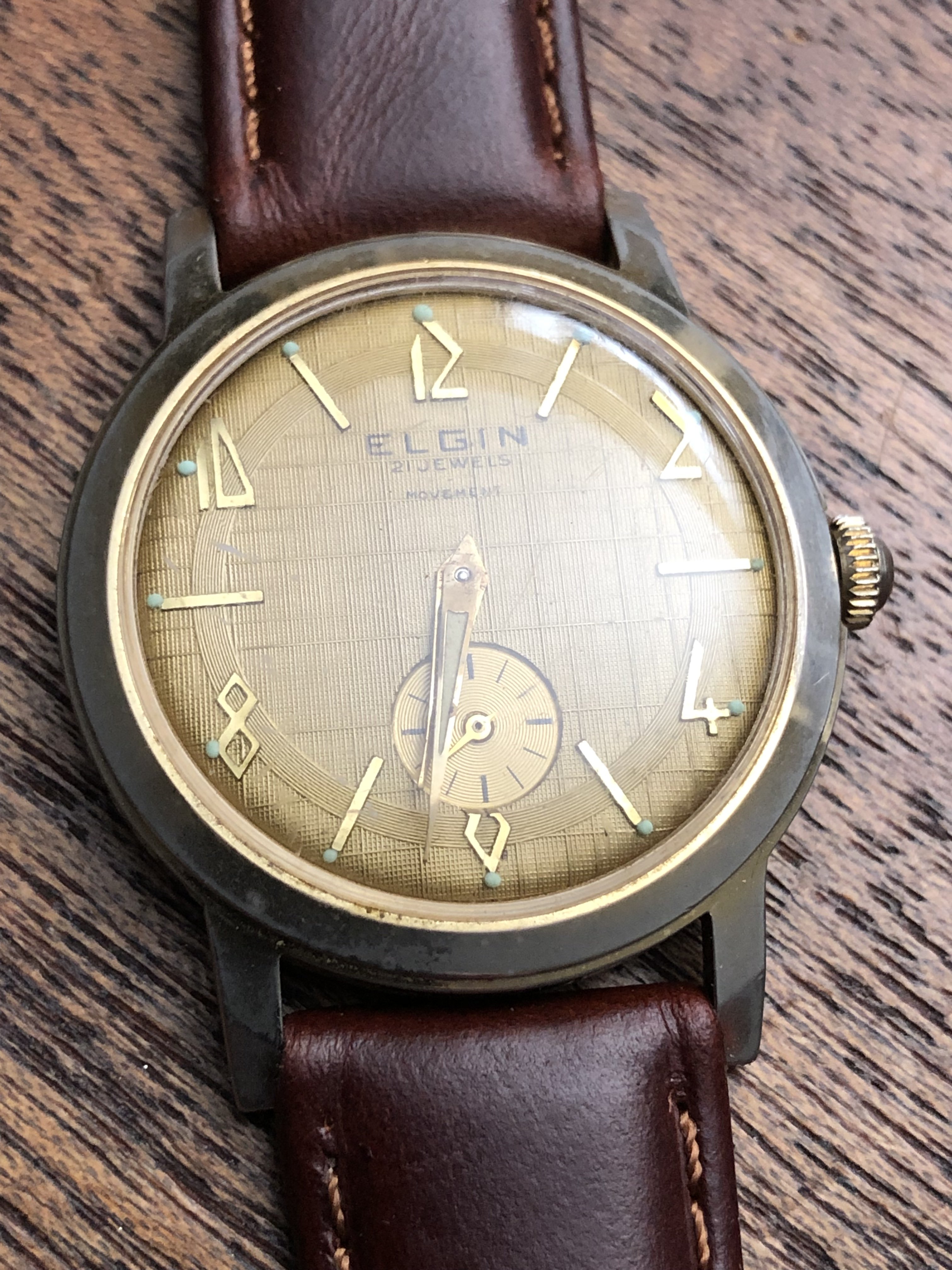 Posts 347 Likes 2,455 CameronD ·Jun 1, 2019 allwoundup Elgin “Aqua Explorer” today....it’s all about the dial. Those numbers are unique. Like them very much.
