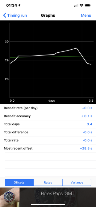 In the end it averaged out to +/- 0.0 sec/day over the past 3.4 days.