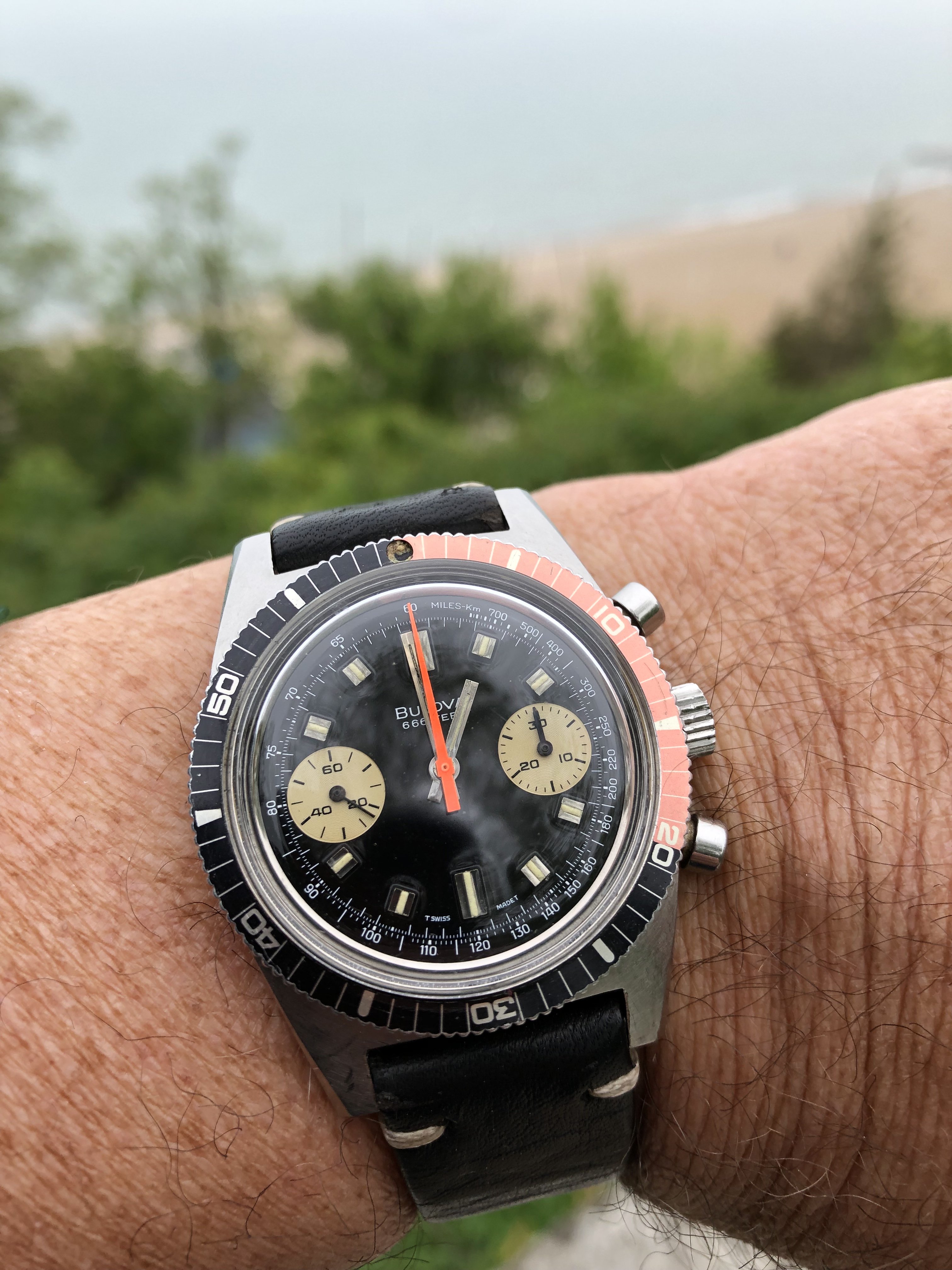 Posts 13,715 Likes 53,536 Larry S ·Jun 6, 2019·Color Commentator for the Hyperbole. Gear drop at the beach, 56 degrees and foggy. My coke 666 chrono has been in the wrist since Tuesday. It’s just perfect.