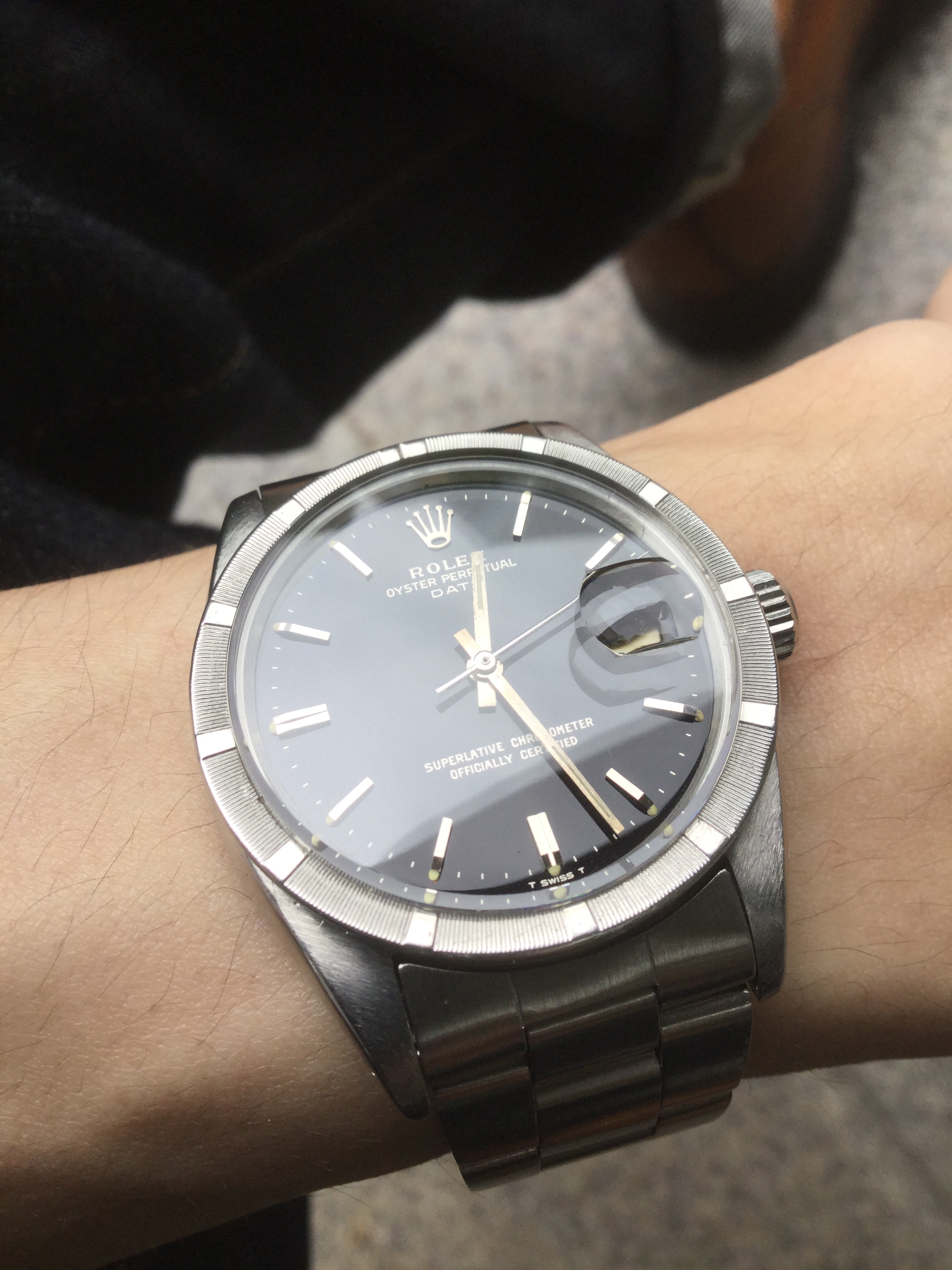 Posts 1,134 Likes 1,690 ext1 路Jun 10, 2019 Didn't really care for Rolex date models...till I saw this guy. Fast forward... now on my wrist. Very interesting how the gilt glossy dial plays with the light!