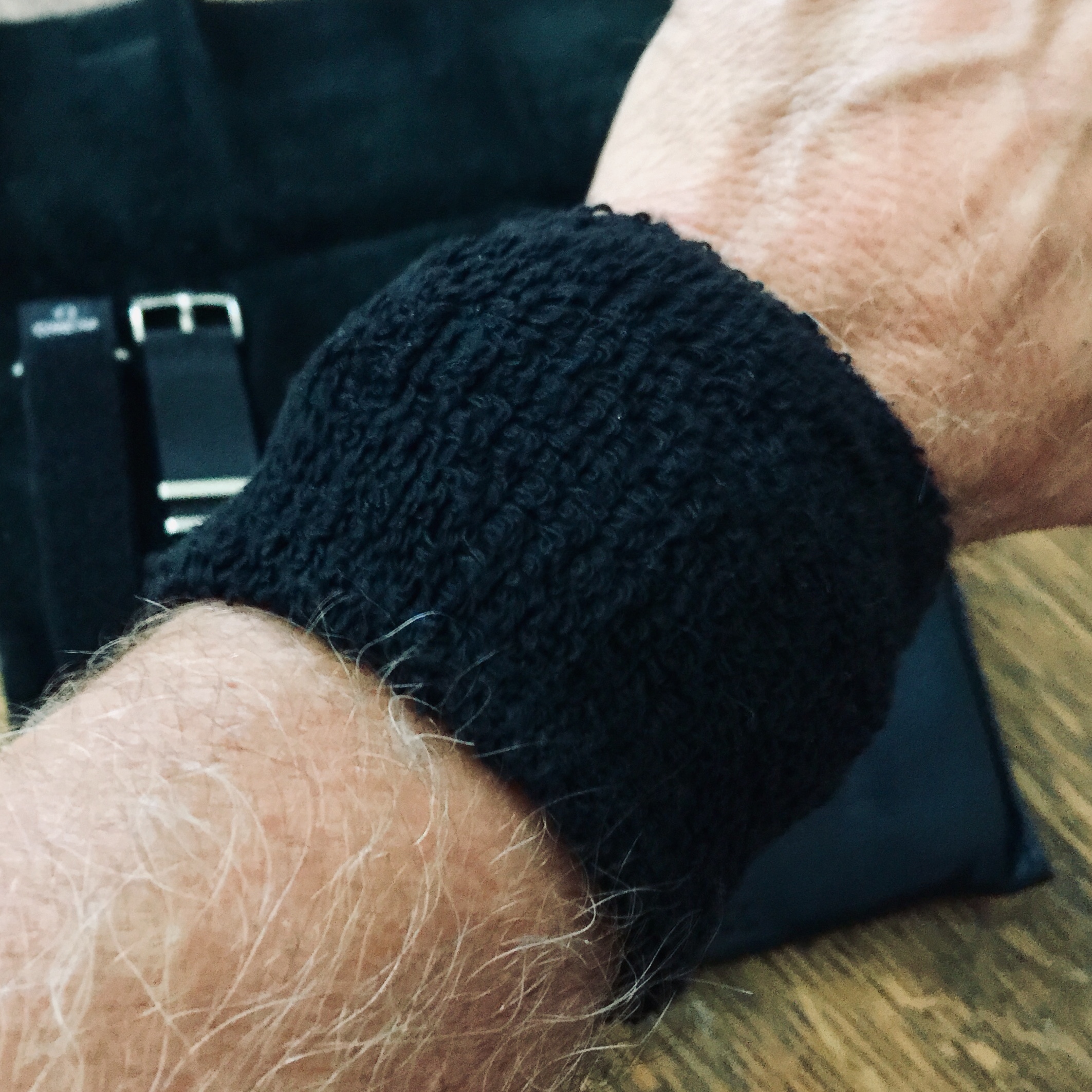 Posts 6,584 Likes 78,290 Mad Dog ·Jun 11, 2019 Speedy Tuesday! 👍 Doing the newly purchased Omega black Velcro strap on the modern Speedy Gonzales Moonwatch for today... ...and doing the old college try with a black sweat band to protect the whole ensemble while I head out on the ATB...