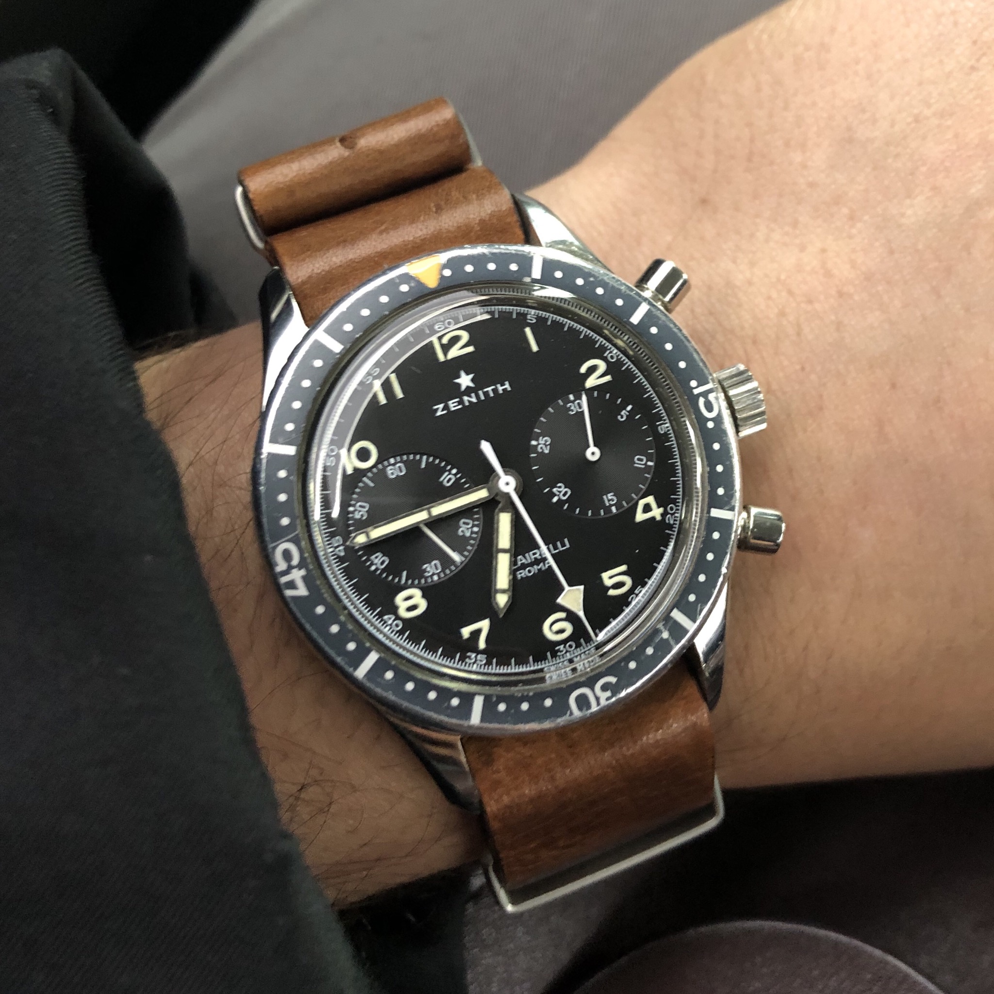 Posts 836 Likes 2,462 albertob 路Jun 19, 2019 OHS Started the day with the current favourite on a new 'sailcloth' strap... Then, thanks to @albertob, switched to this.. my first Zenith! It's a cool shape and a lovely size that's sits very nicely on the wrist - very cool indeed! 馃榾 Amazing! Looks great!!!