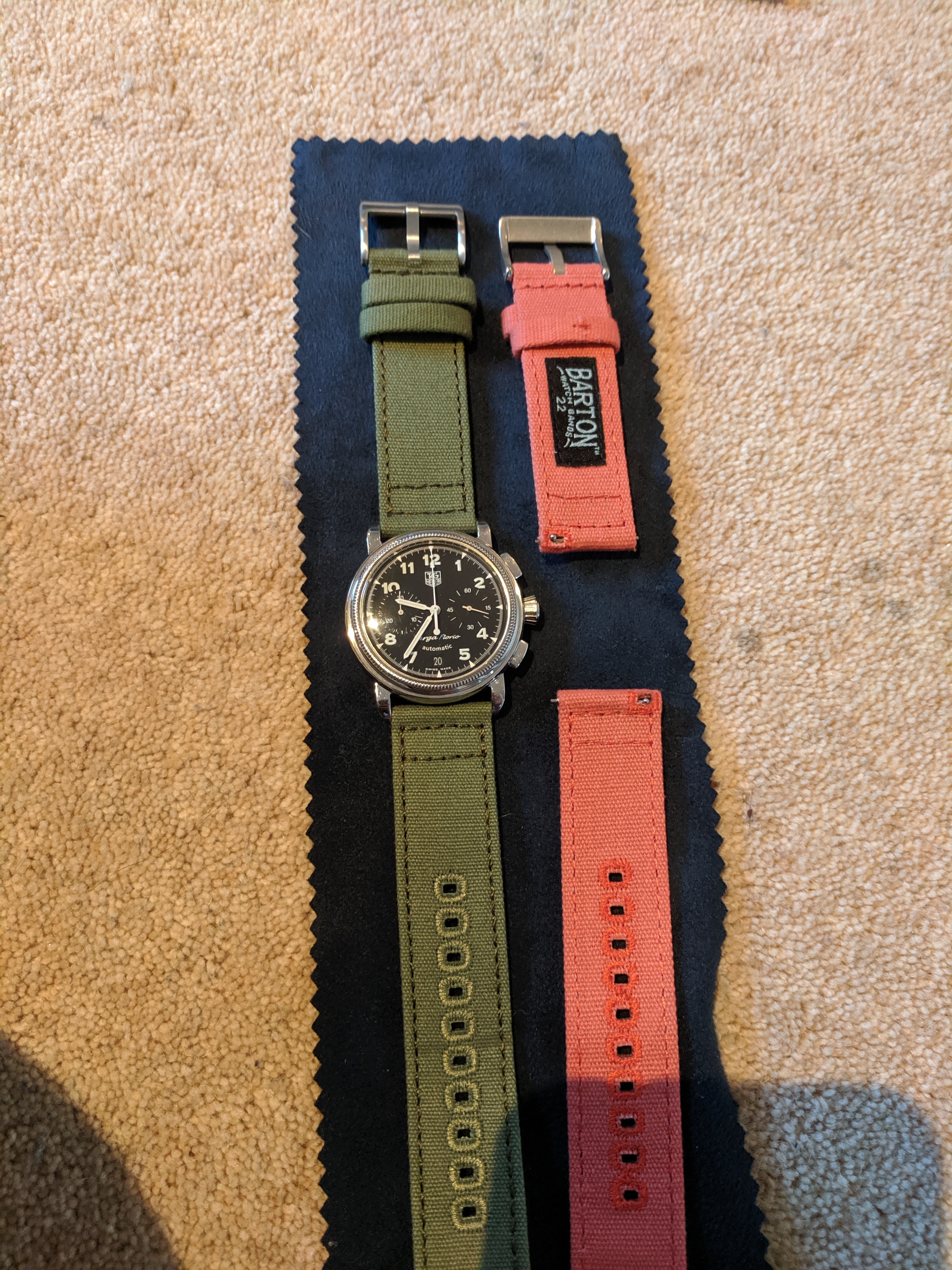 Posts 299 Likes 2,607 NickC ·Jun 20, 2019 Been trying the Barton Bands on this one tonight. The quick release spring bars are great. Makes changing your mind really easy!