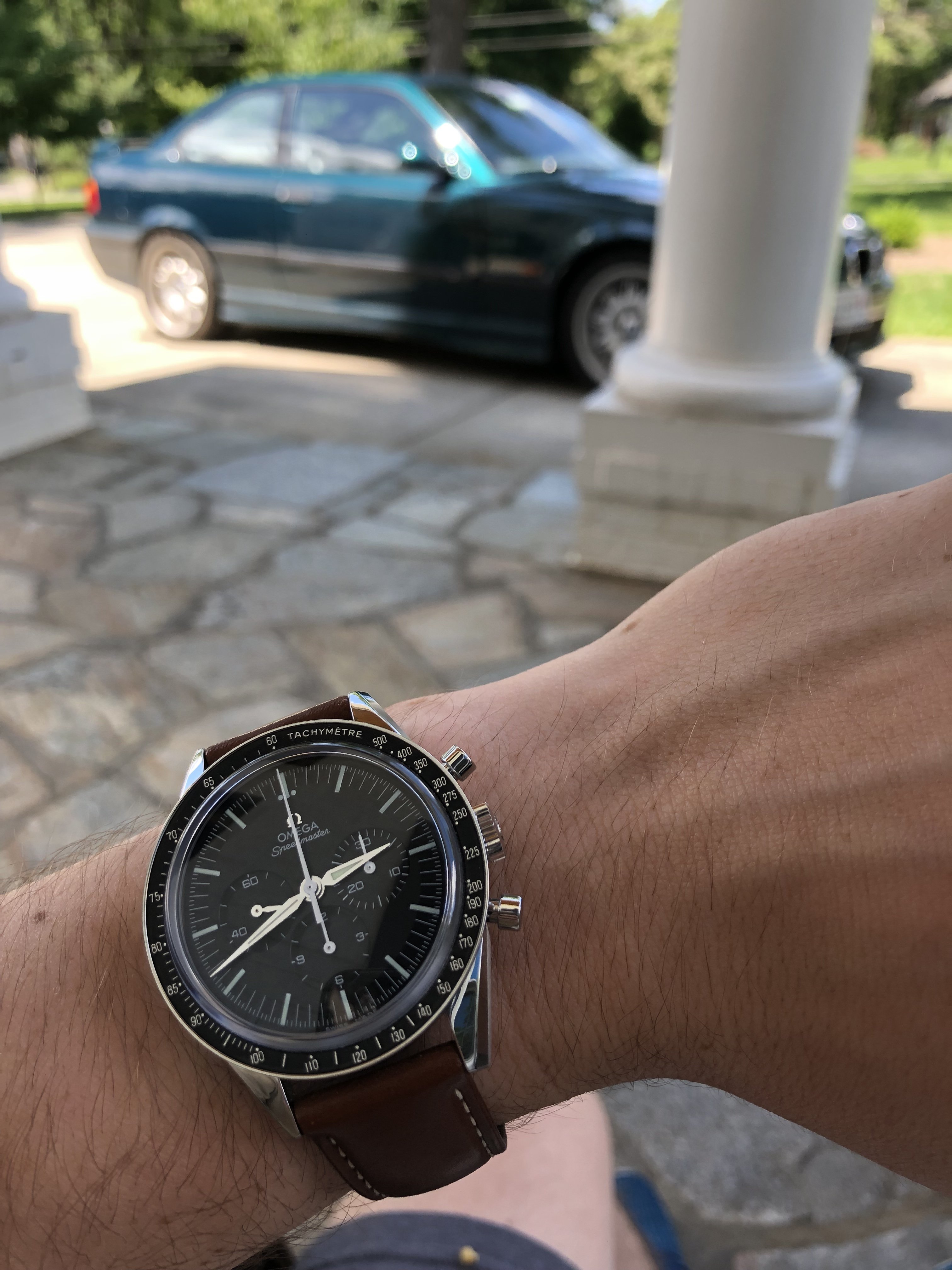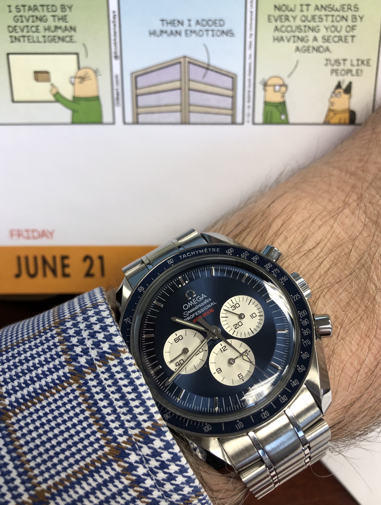 Been gone to Quebec for eight days so rigged the Speedmaster for summertime wear. Not really needed in Canada, but pretty handy back here in Texas where it was 102F yesterday on our first day back home.