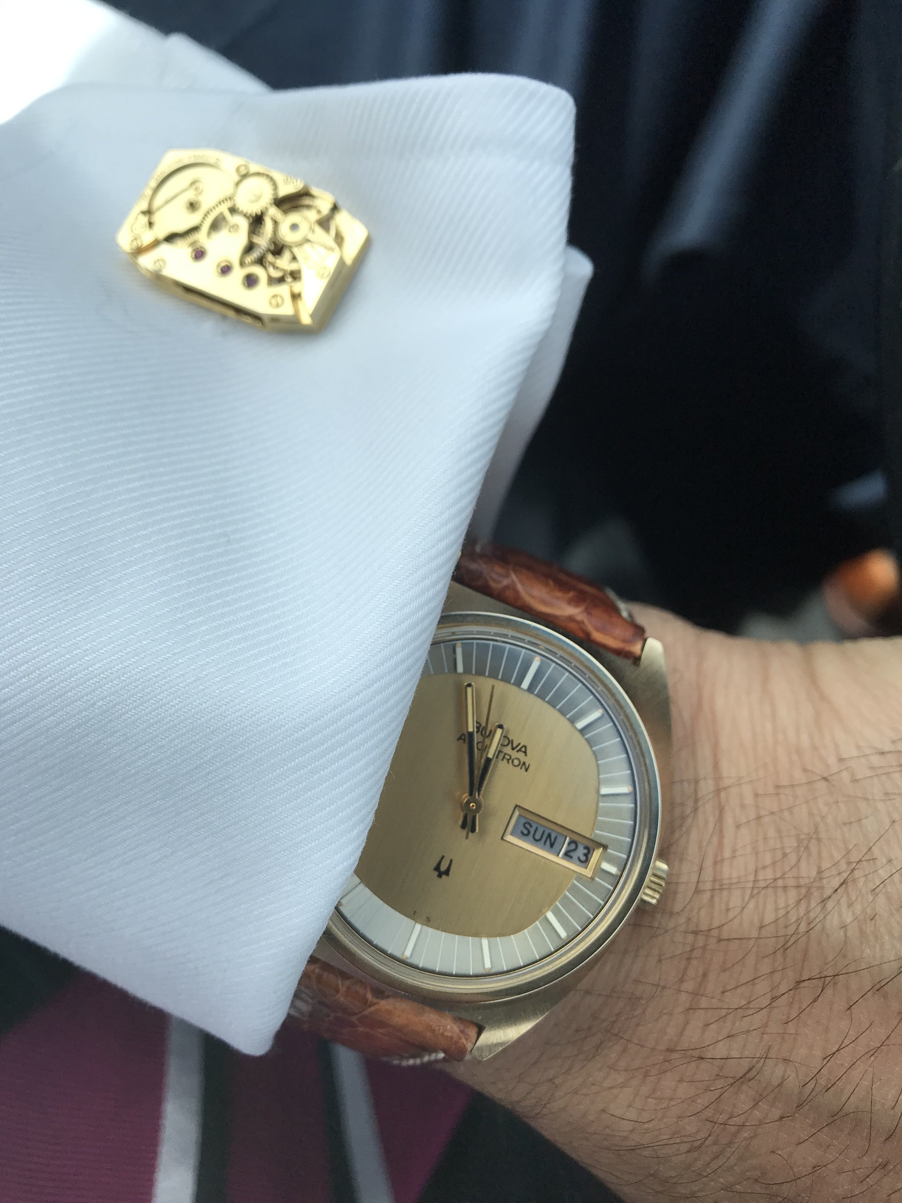 Posts 766 Likes 7,492 Flatfoot 路Jun 24, 2019 BillLundberg My 1974 Bulova Accutron Nice combination of your watch and cuff links.馃憤