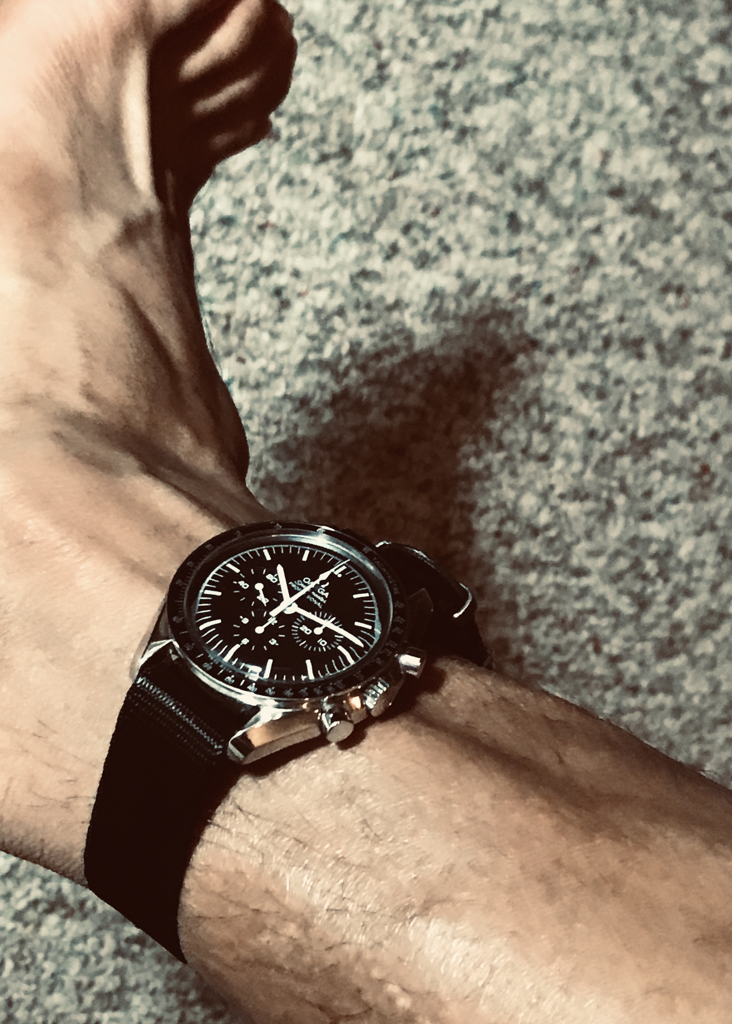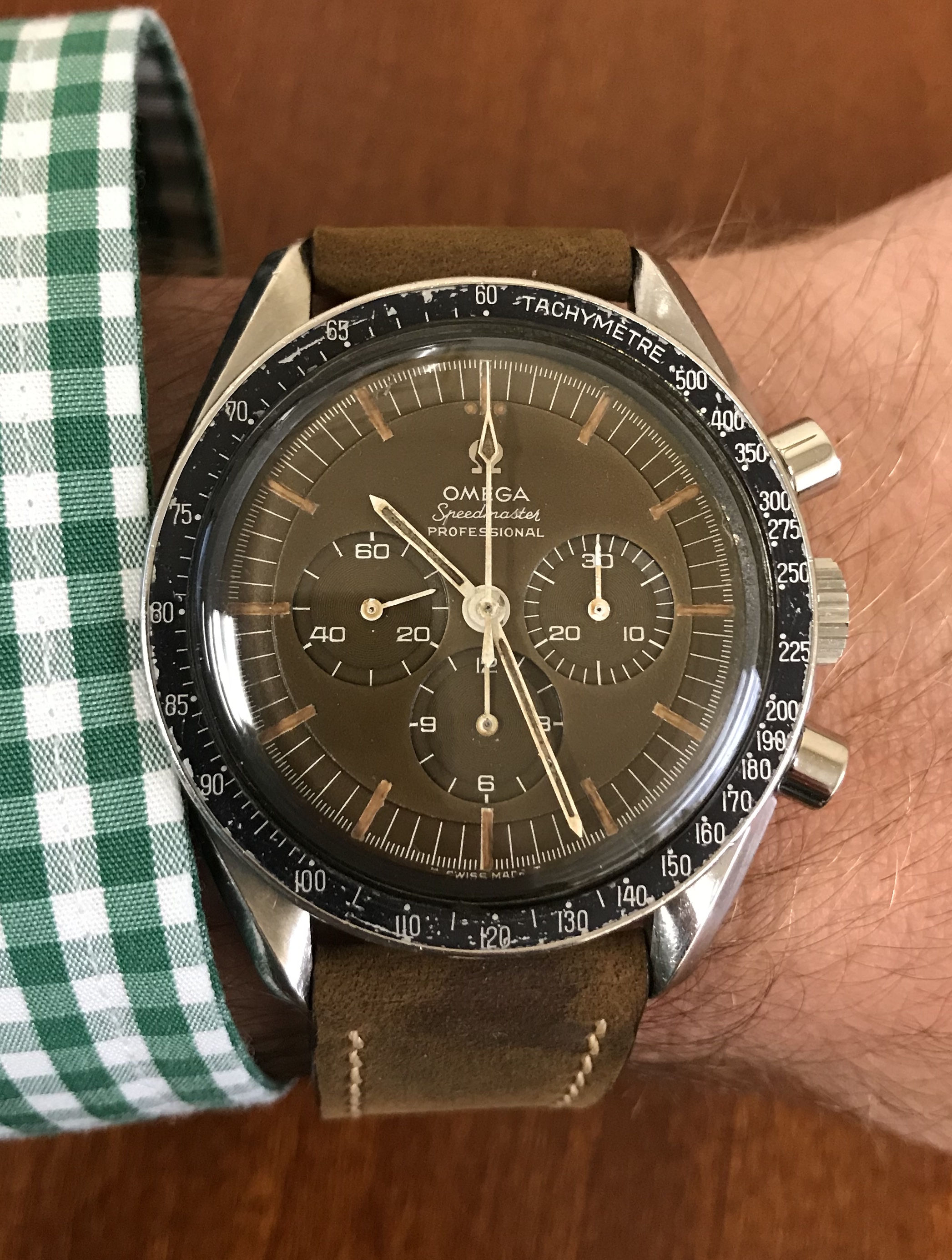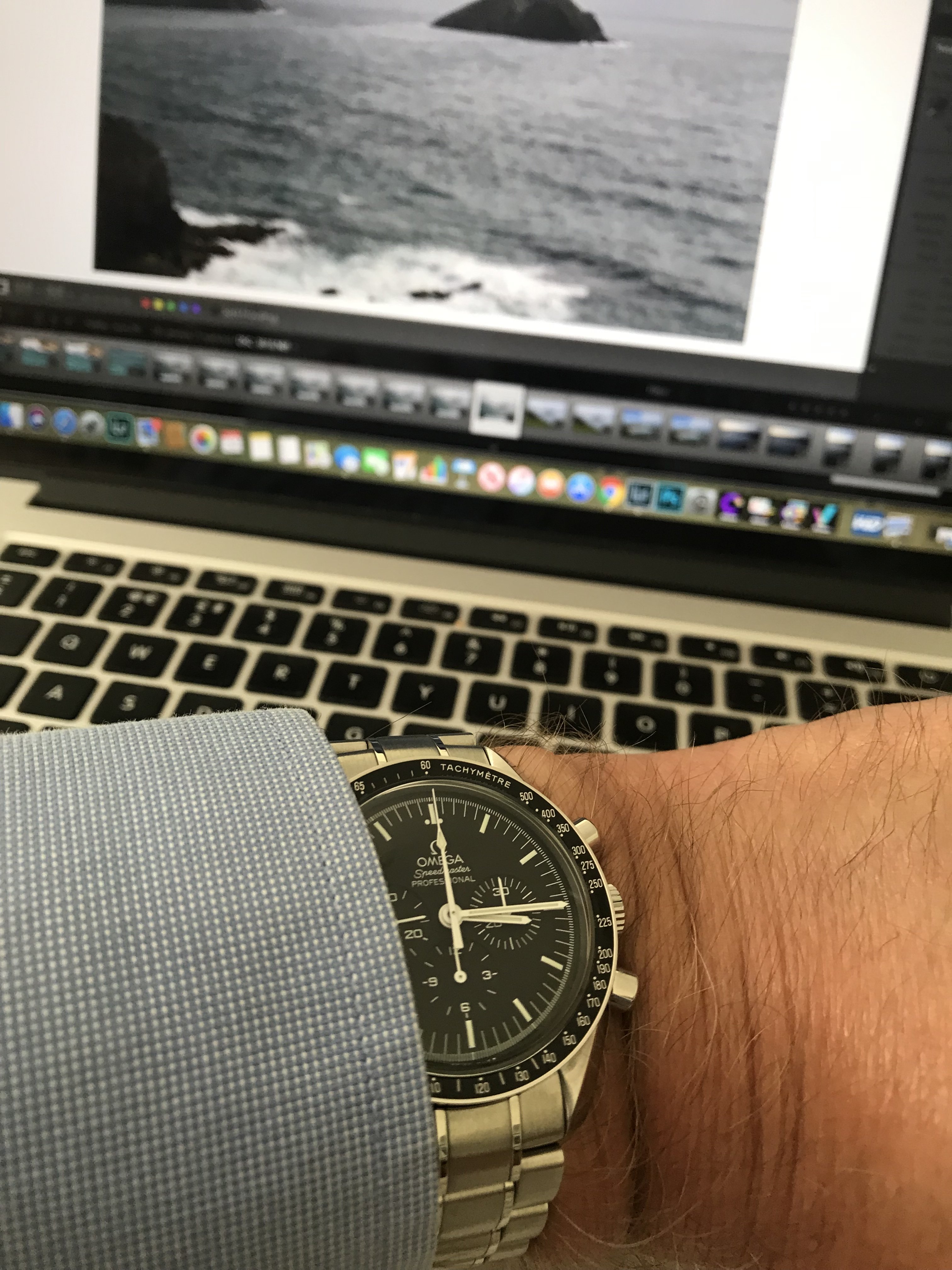 Gave the Speedmaster an outing this morning, it goes well under shirt cuffs and gives just the right impression at an interview