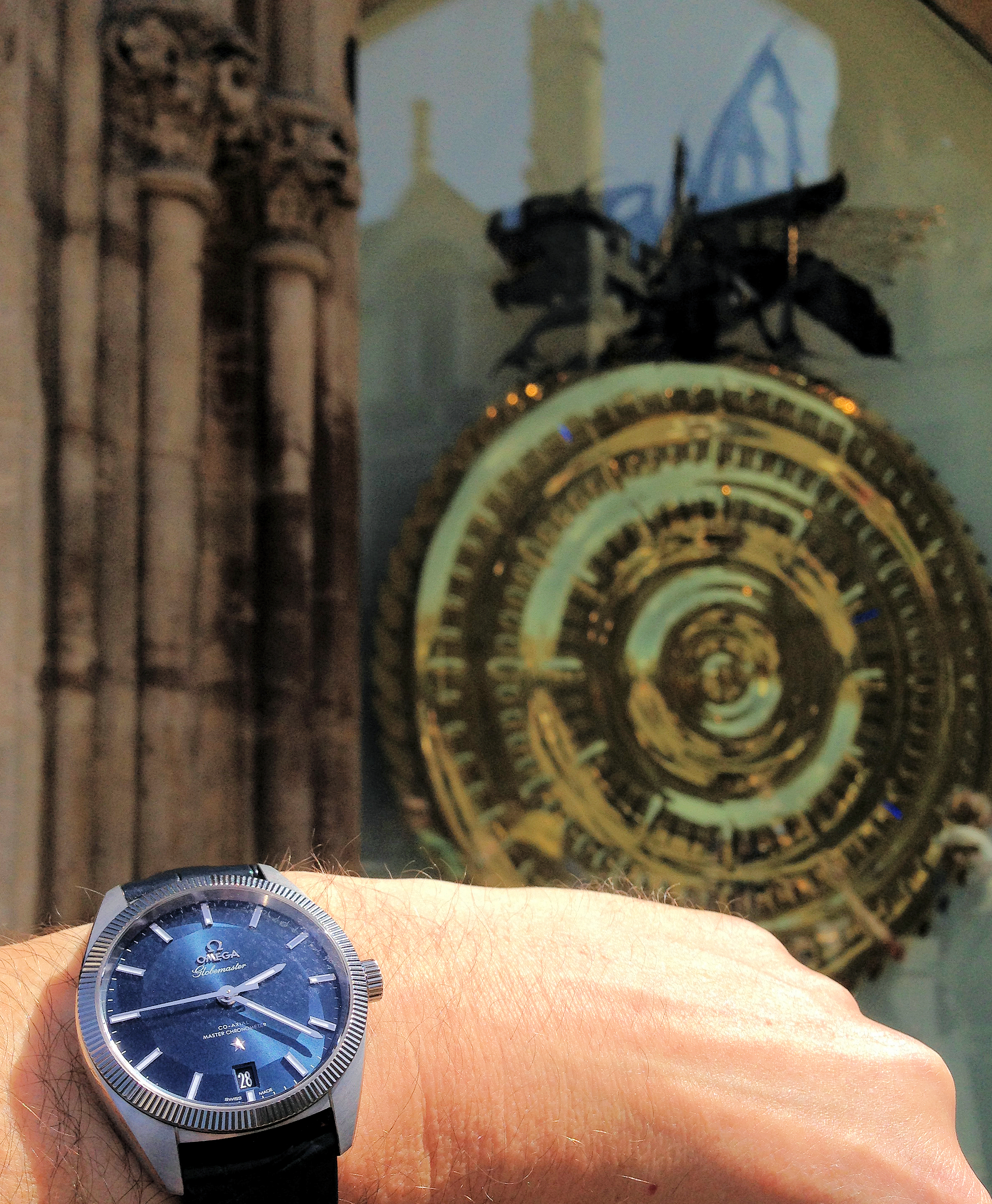 Posts 4,698 Likes 17,795 Omegafanman ·Jun 29, 2019 In Cambridge (UK) yesterday. I Thought it was time for the 'Master Chronometer' to meet the Chronophage…….. I have to say I have not given the Globemaster much wrist time but I was loving it, so I think it will be my daily for the summer now.