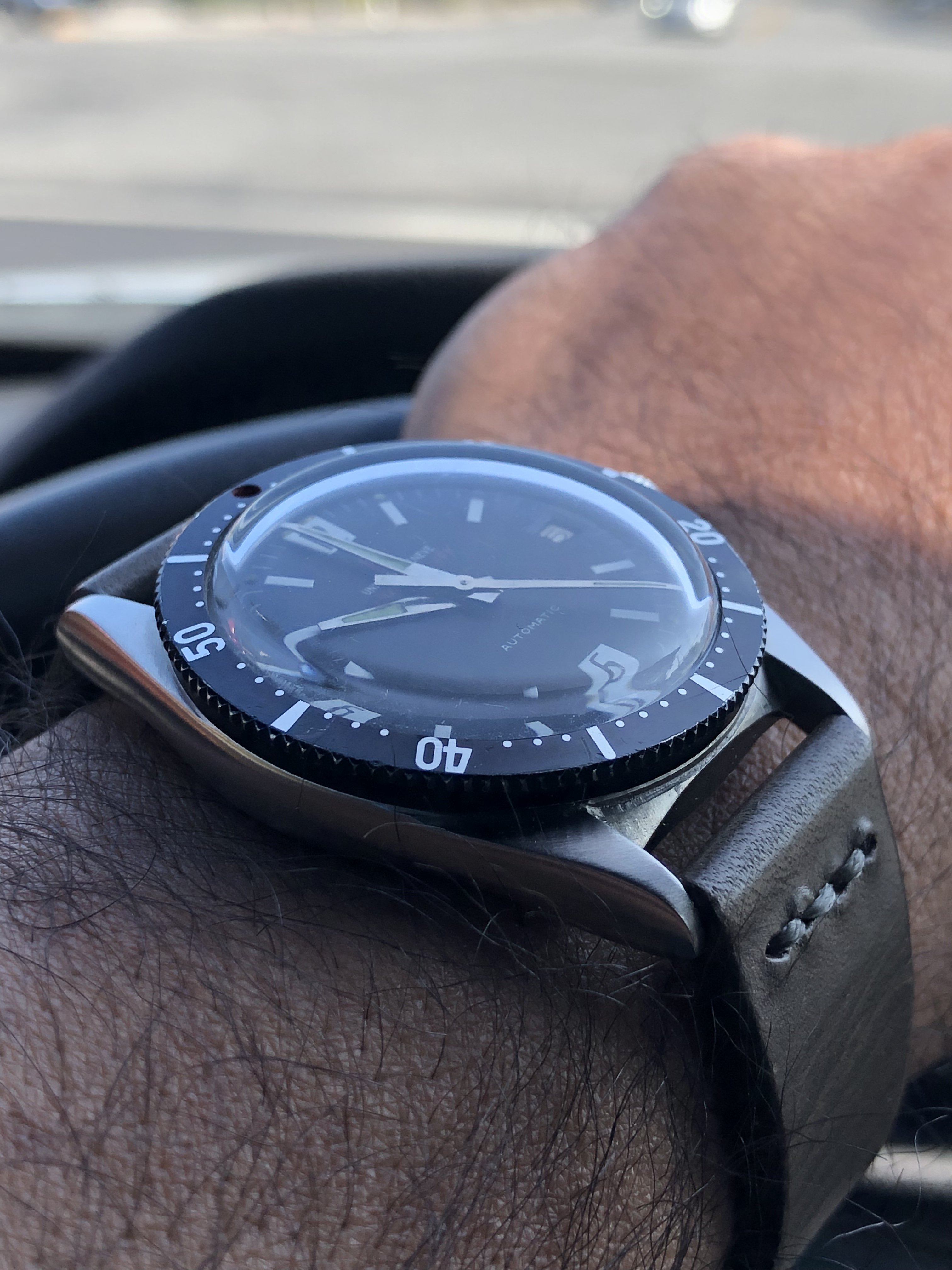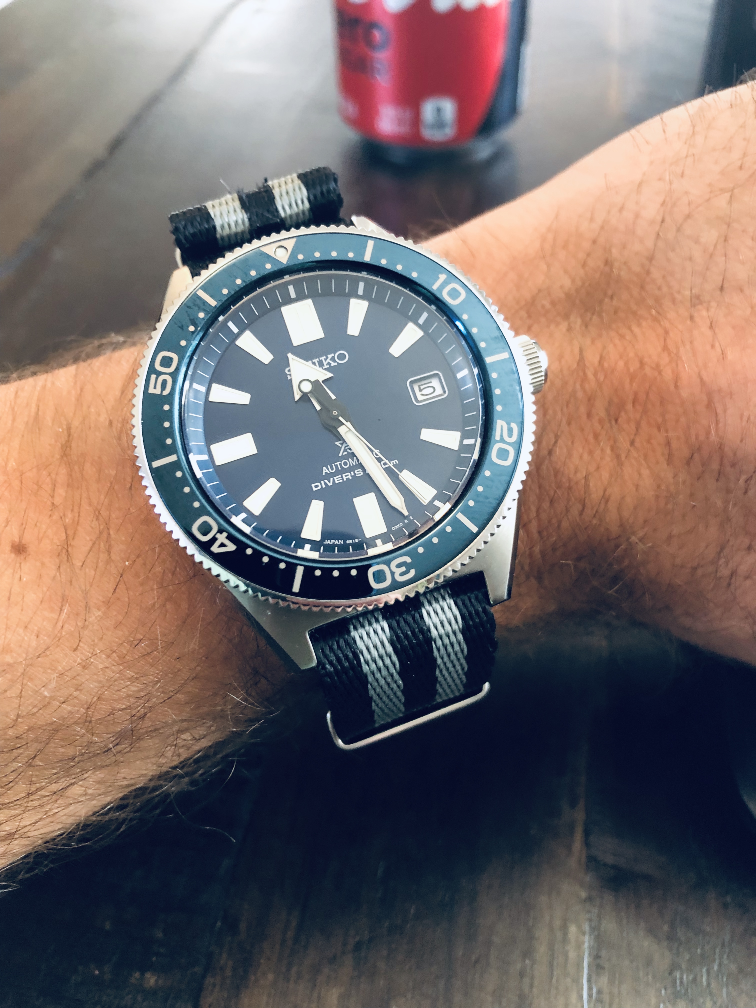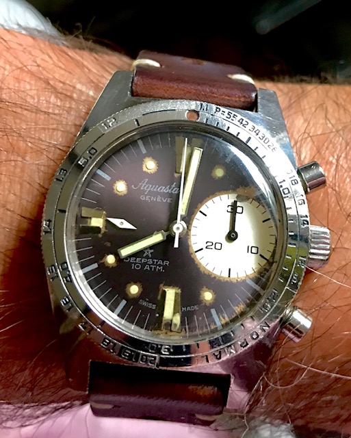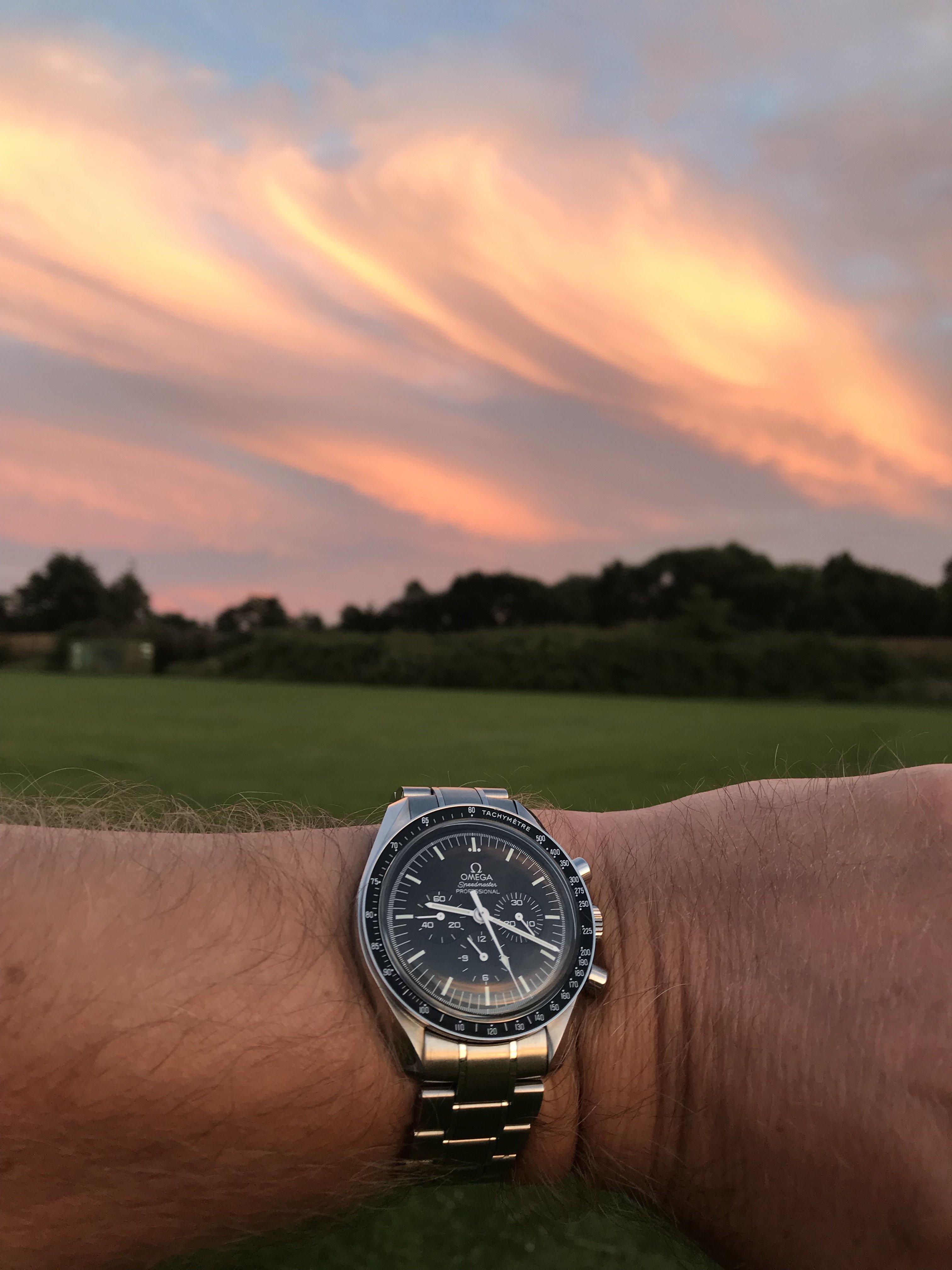 one modern recreation of a 57 Speedy, sporting faux patina is on the wrist while enjoying some fantastic views from the Eagle’s Nest...