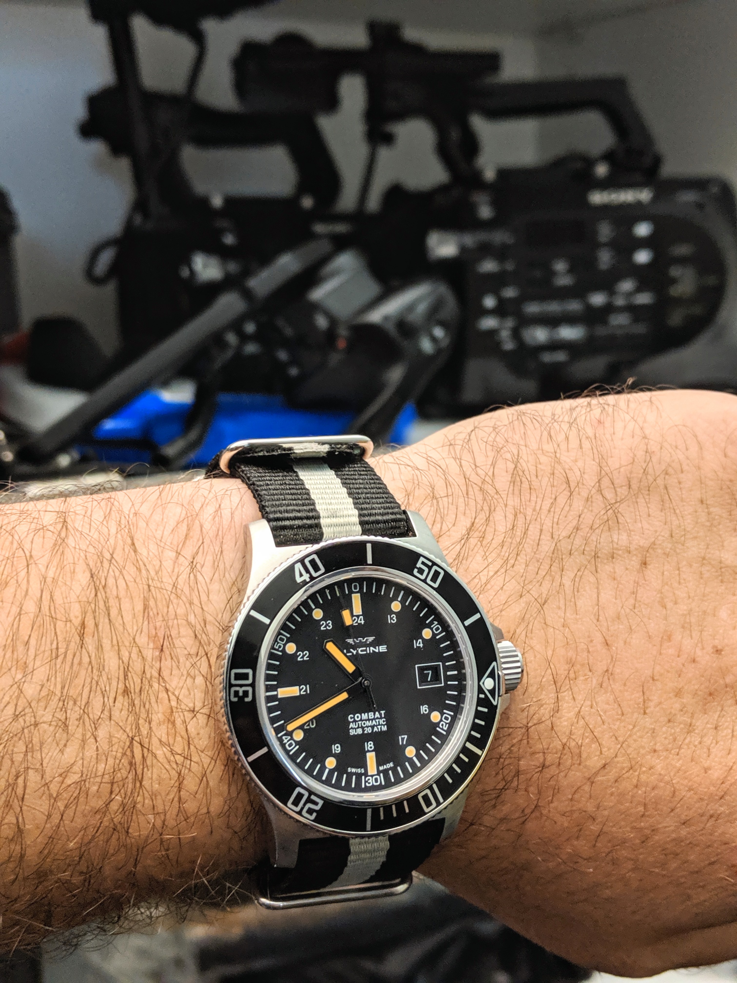 Put this on as a beater while I re-organize the camera equipment closet at work. Used to put on my Seiko 007 for this sort of thing, but the Glycine saves me the 3 minutes of shaking that it takes to get the Seiko going in the morning.